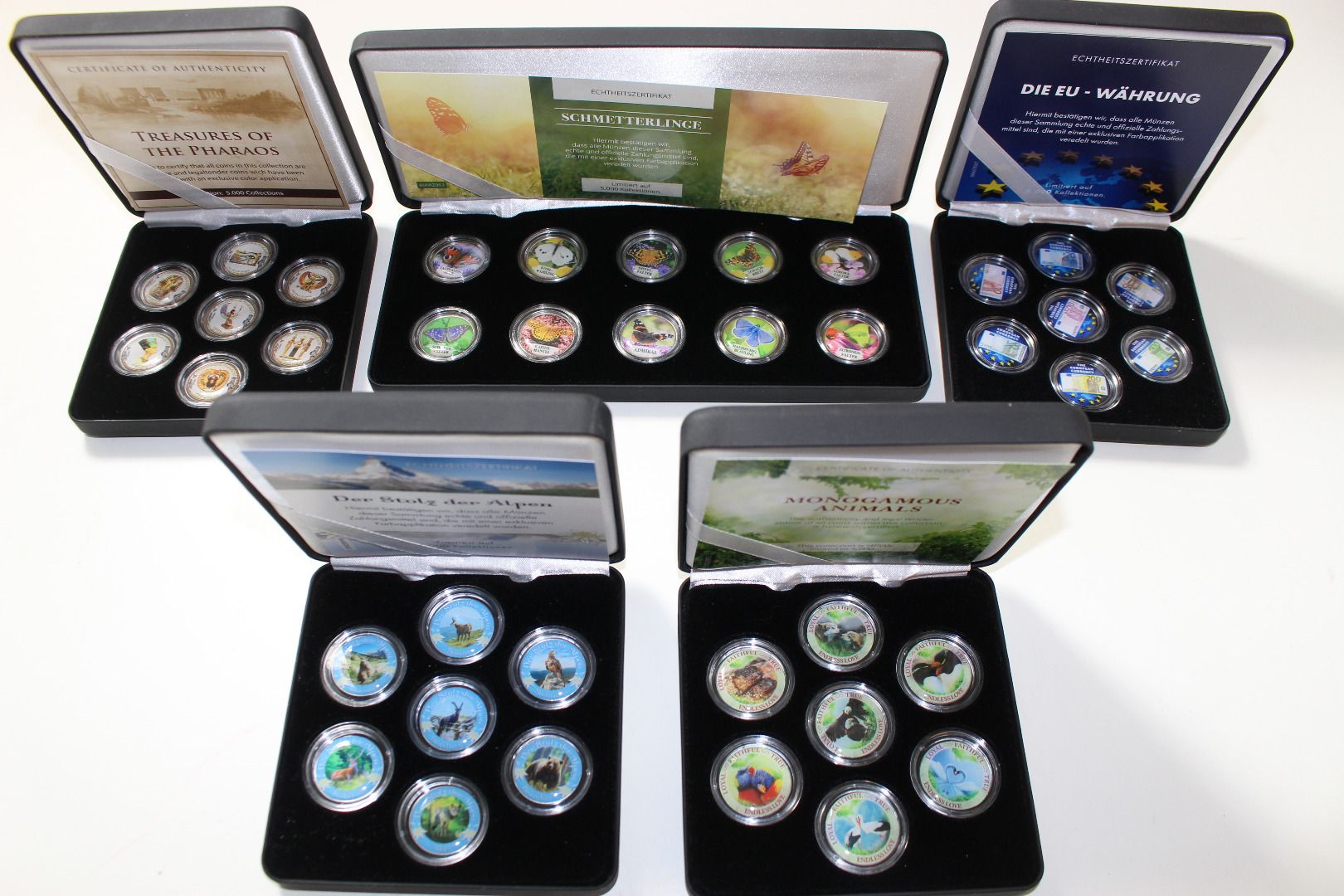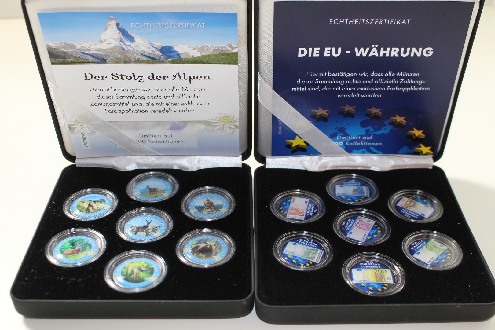 Folgende Motiv-Themen sind enthalten: Der Stolz der Alpen, Treasures of the Pharaos, Monogramous Animals, Die EU-Währung und Schmetterlinge.