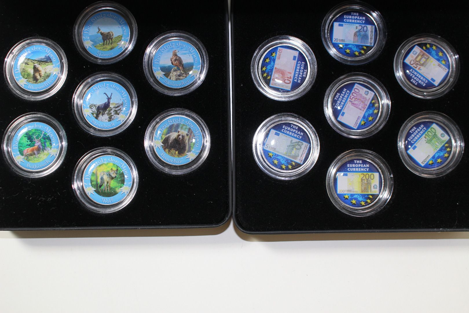 5 Kassetten Münzen mit Farb-Applikationen, tolle Motive