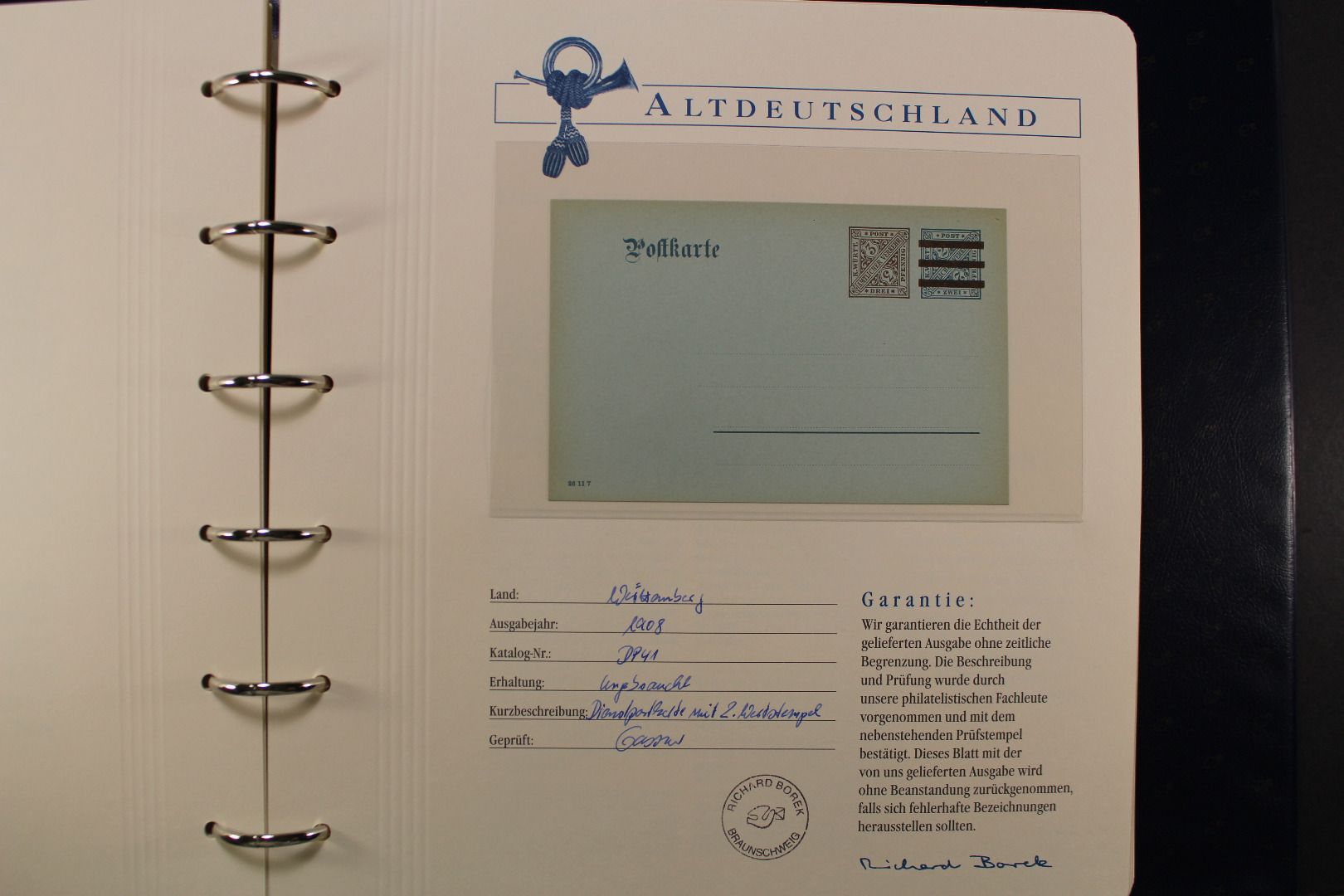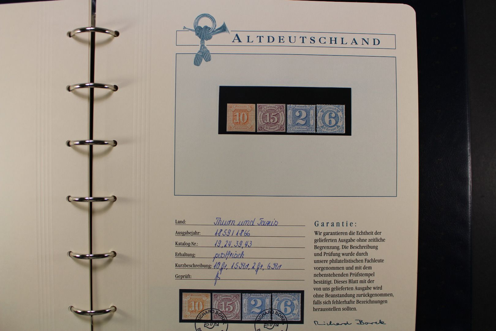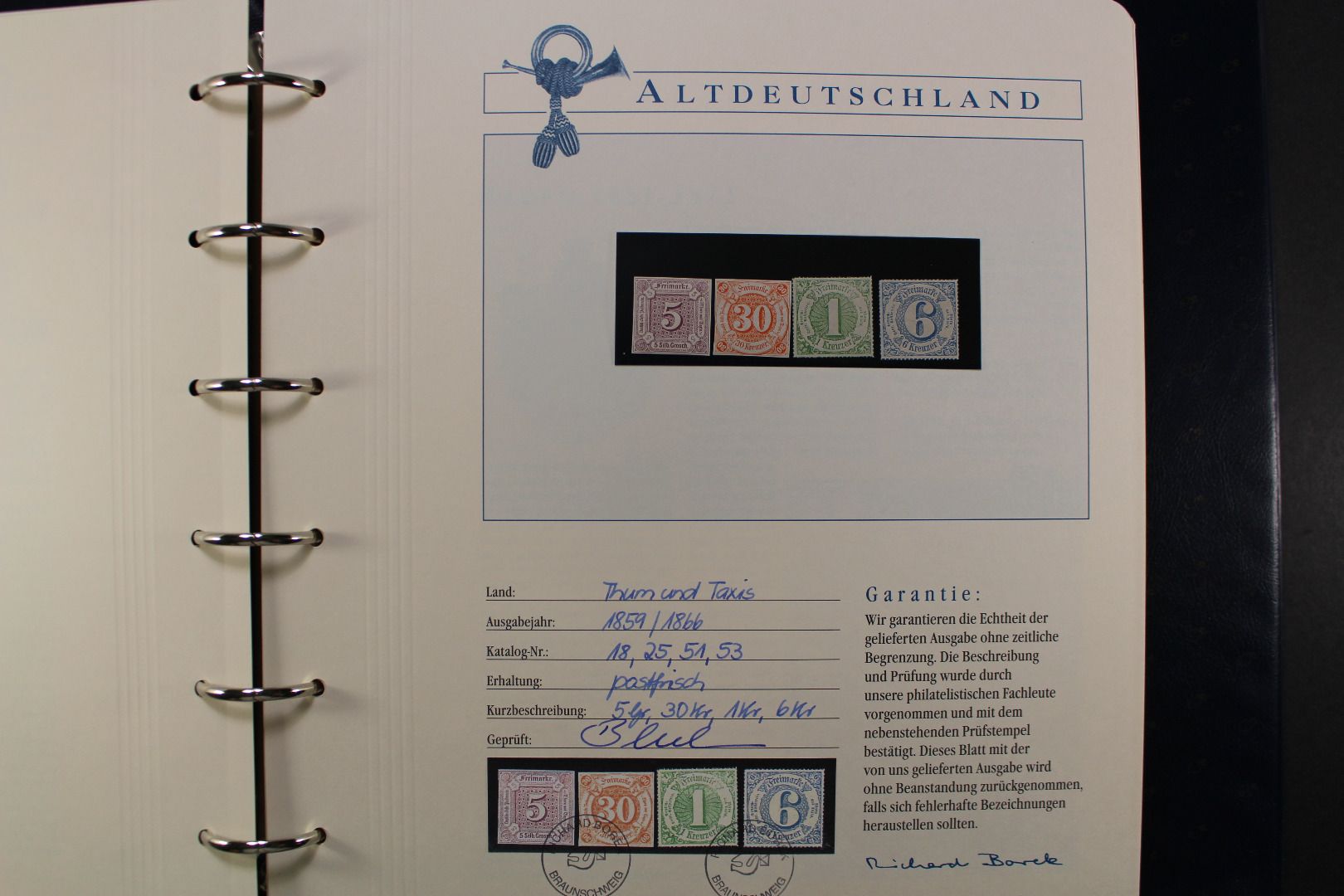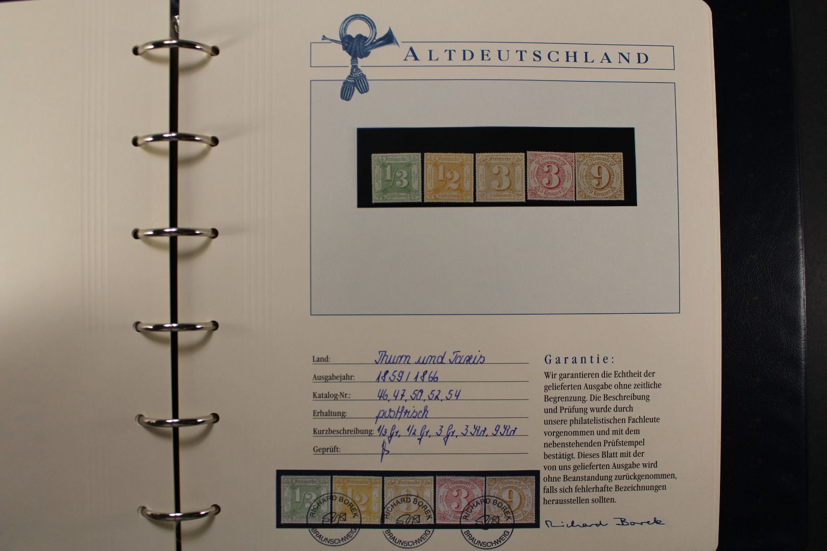 Insgesamt 37 Blätter mit Altdeutschen Ausgaben, teils auch Sätze mit Borek-Garantie. Enthalten sind auch etliche bessere Ausgaben die teuer bezahlt wurden.