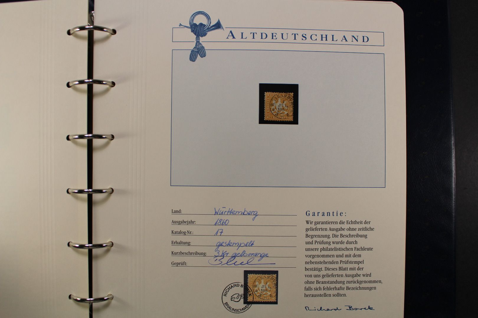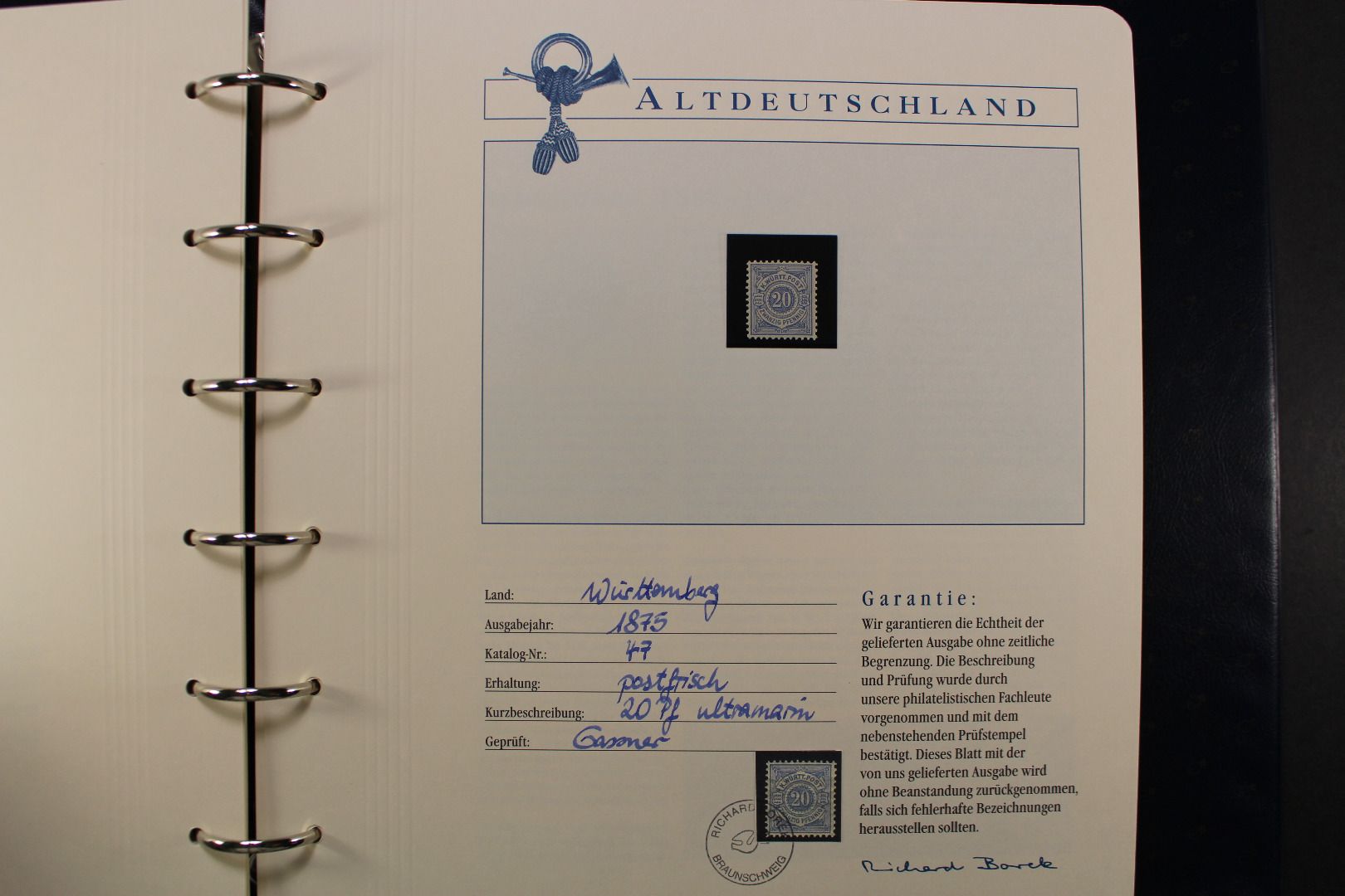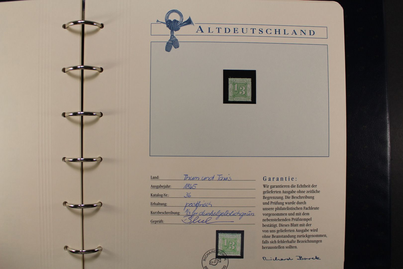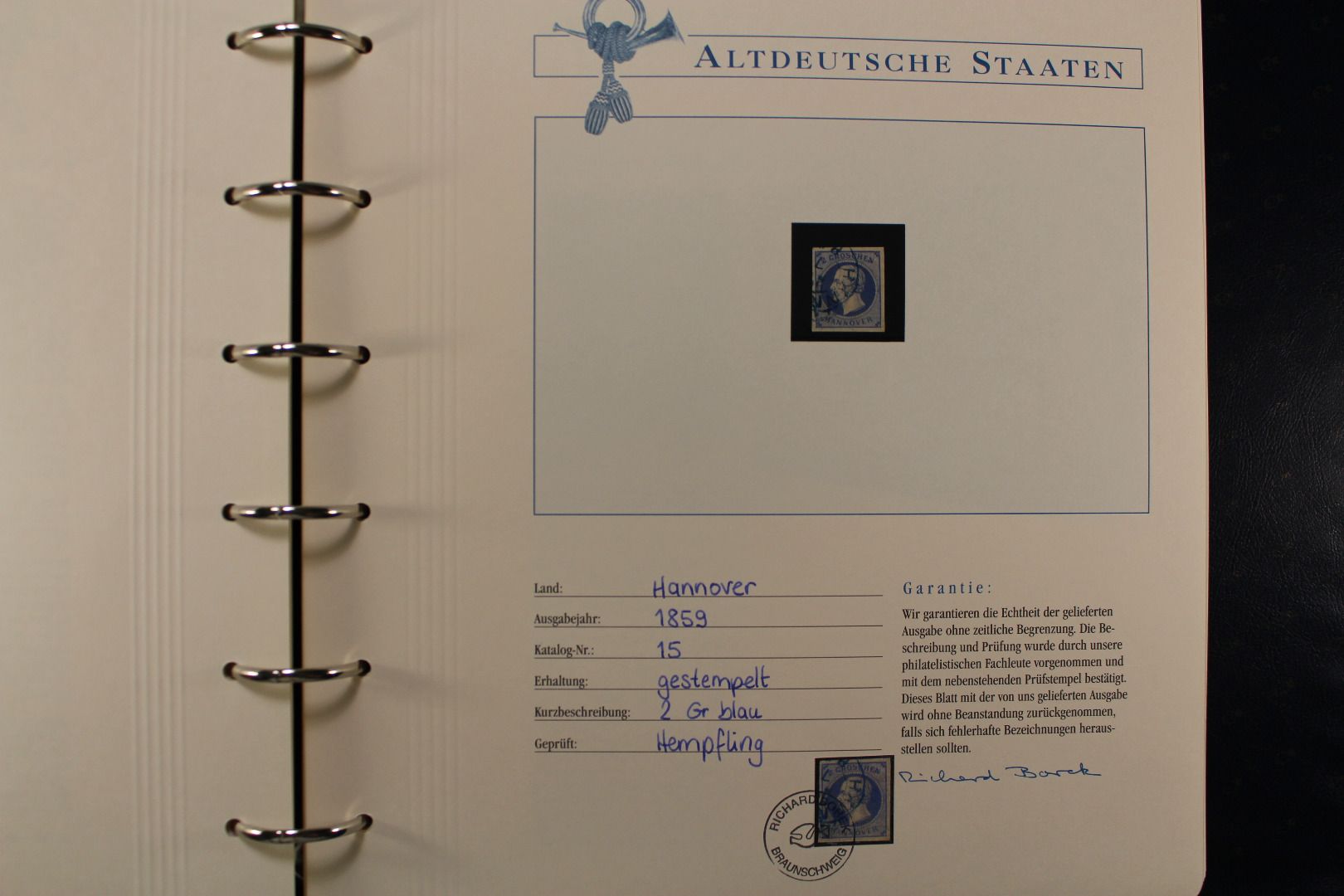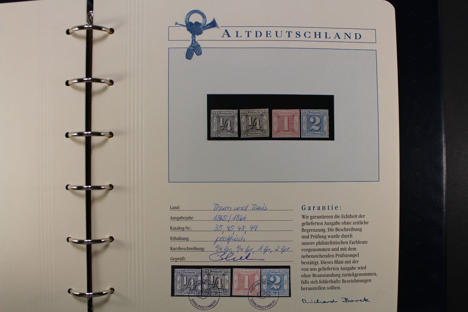 Insgesamt 37 Blätter mit Altdeutschen Ausgaben, teils auch Sätze mit Borek-Garantie. Enthalten sind auch etliche bessere Ausgaben die teuer bezahlt wurden.