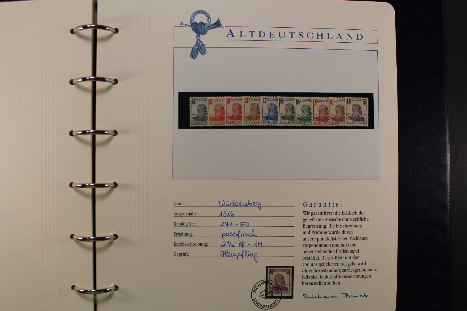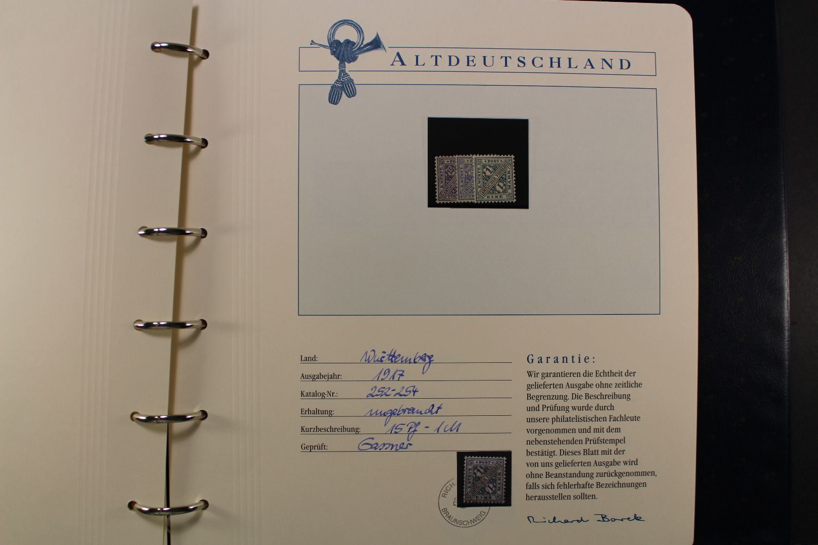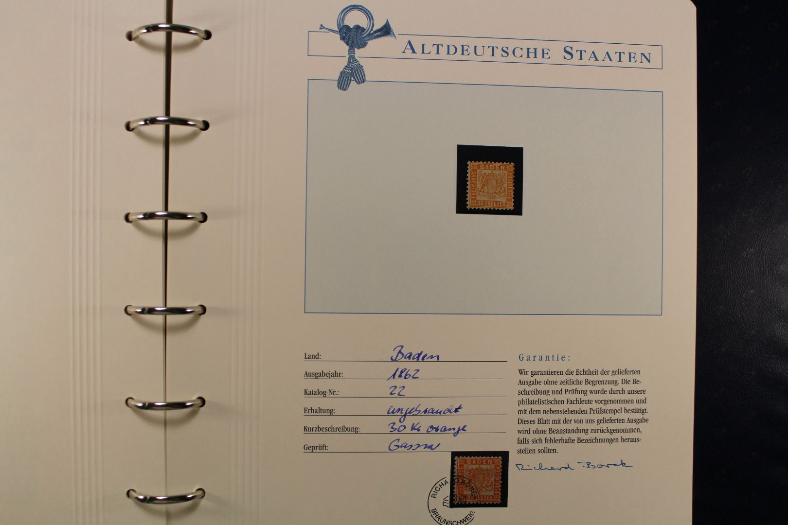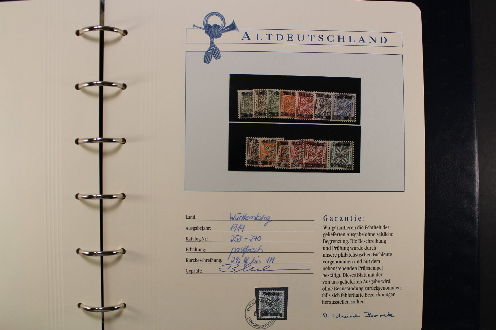 Insgesamt 37 Blätter mit Altdeutschen Ausgaben, teils auch Sätze mit Borek-Garantie. Enthalten sind auch etliche bessere Ausgaben die teuer bezahlt wurden.