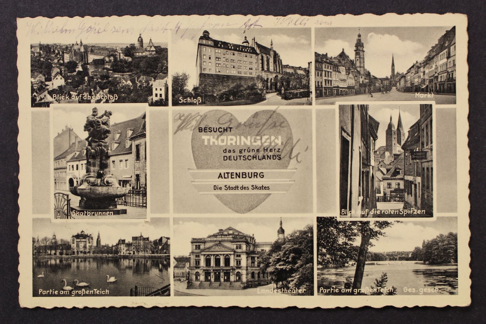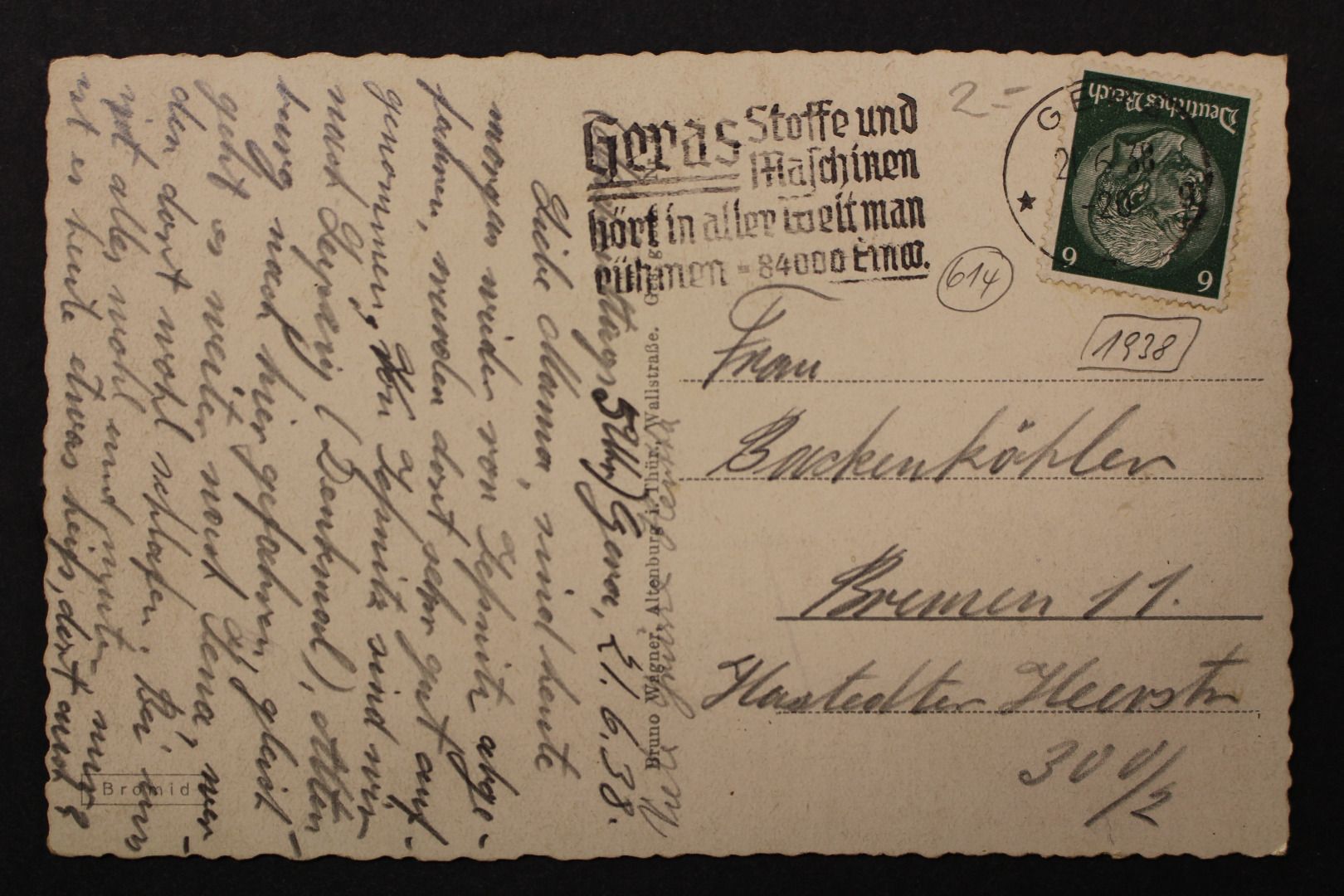 Karte gelaufen, etwas bestoßen, leicht fleckig