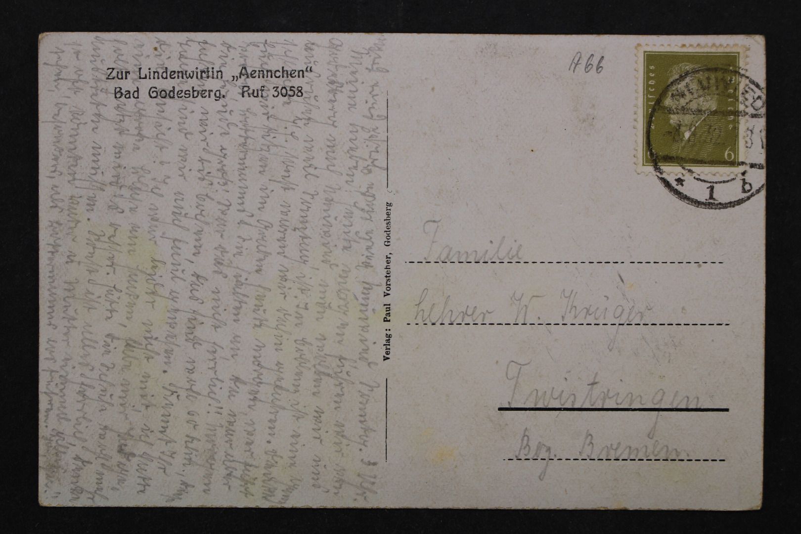 Karte gelaufen, etwas bestoßen, leicht fleckig