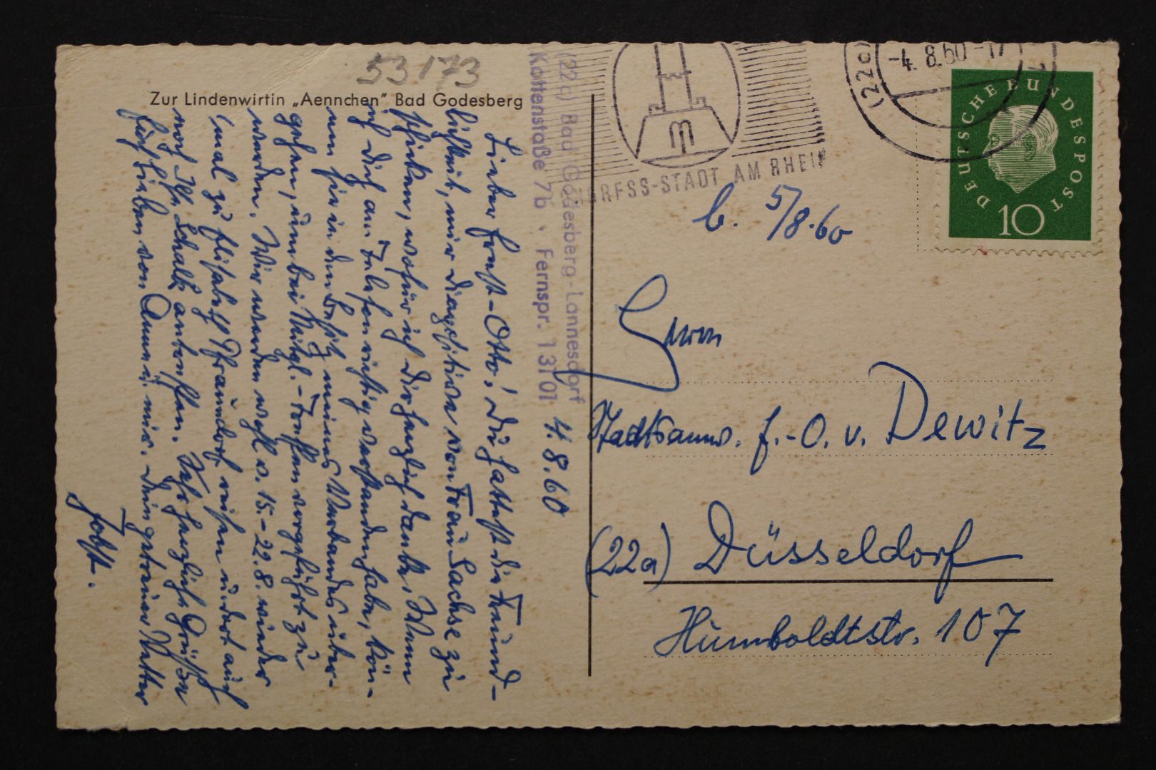 Gelaufen, leicht bestoßen, leicht fleckig, Ecke links oben leichte Knitter.