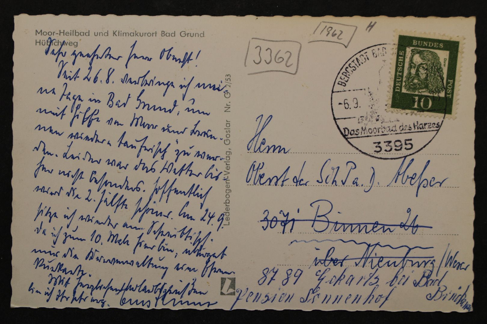 Karte gelaufen, etwas bestoßen, leicht fleckig