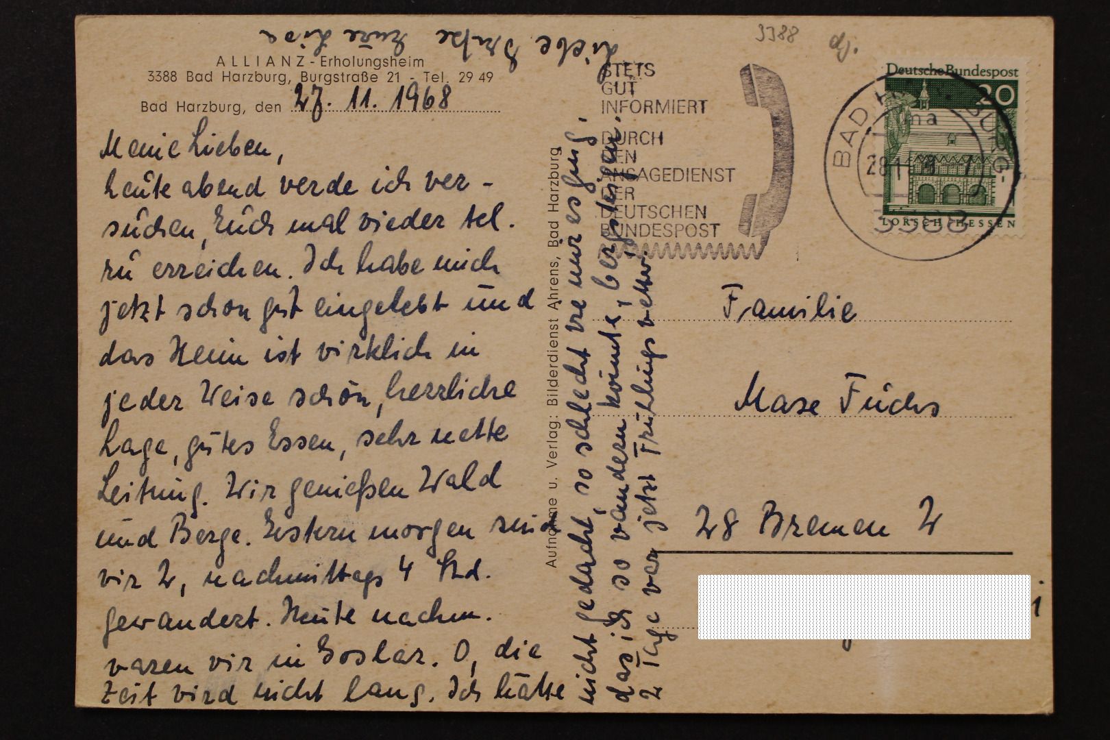 Karte gelaufen, etwas bestoßen, leicht fleckig