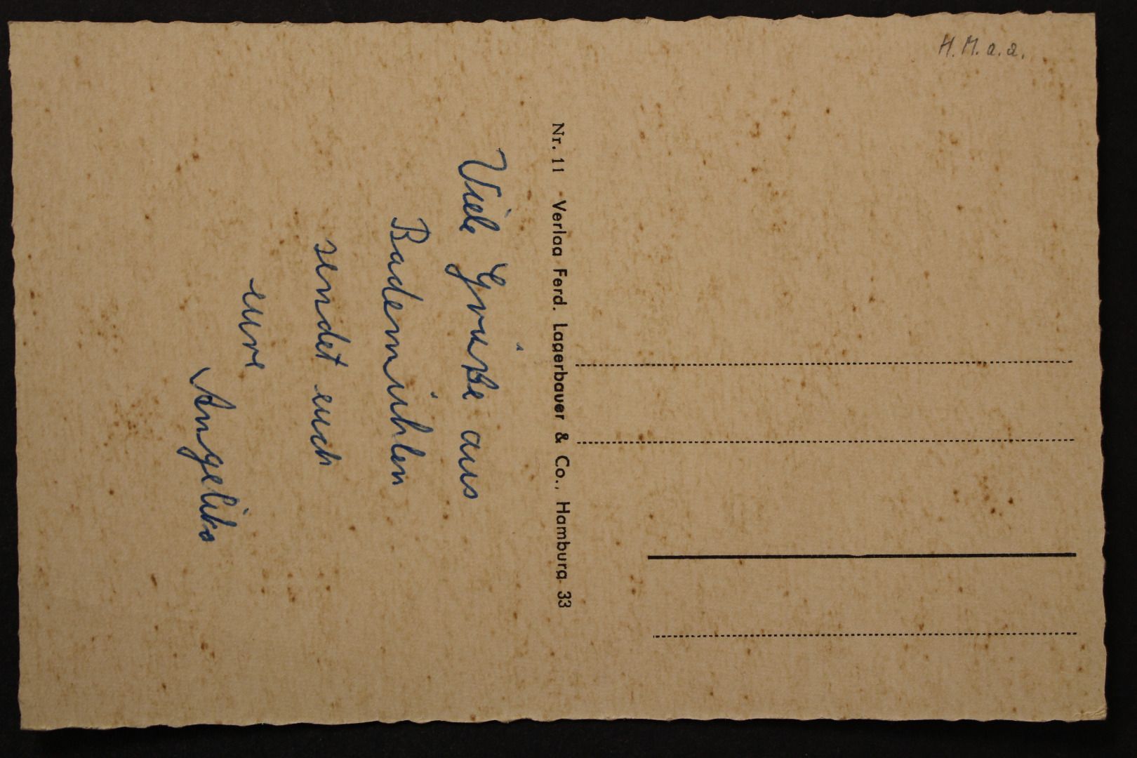 Karte nicht gelaufen, etwas bestoßen, leicht fleckig, unten einige Knitter