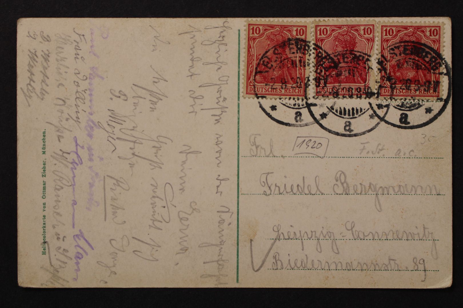 Karte gelaufen, etwas bestoßen, leicht fleckig