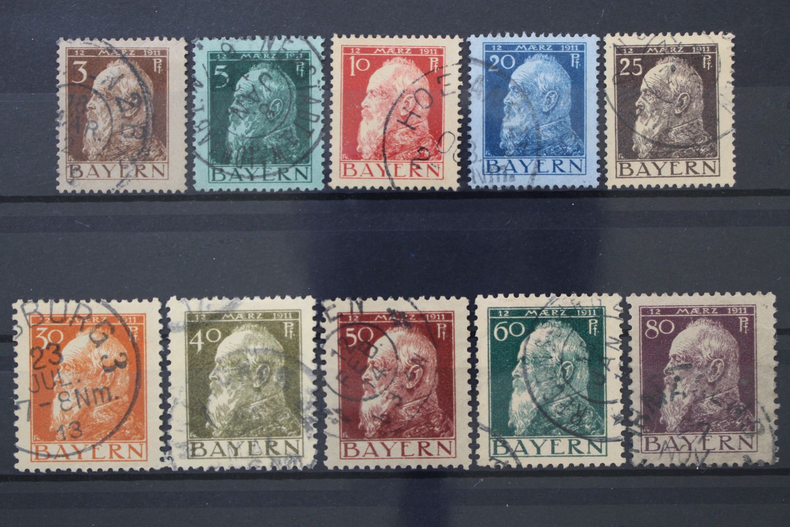 3 bis 80 Pf Prinzregent Luitpold, 10 Werte