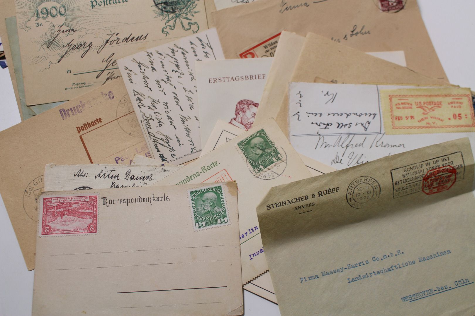 Belege, Karten, Ansichtskarten - großer Karton voll Material