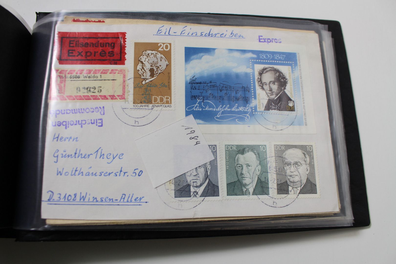 Der ganze Inhalt stammt aus einem Nachlaß. Wir haben nur kurz gesichtet und dann alles in einem Karton verpackt. 2 Alben wurden schlecht gelagert und riechen etwas stärker. Garantiert sehr preiswertes Angebot.