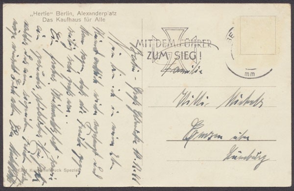 1941 gelaufen, Ecken bestoßen, leicht fleckig, Marke abgelöst