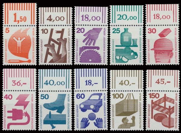 Freimarken: Unfallverhütung (I), Oberrandsatz.