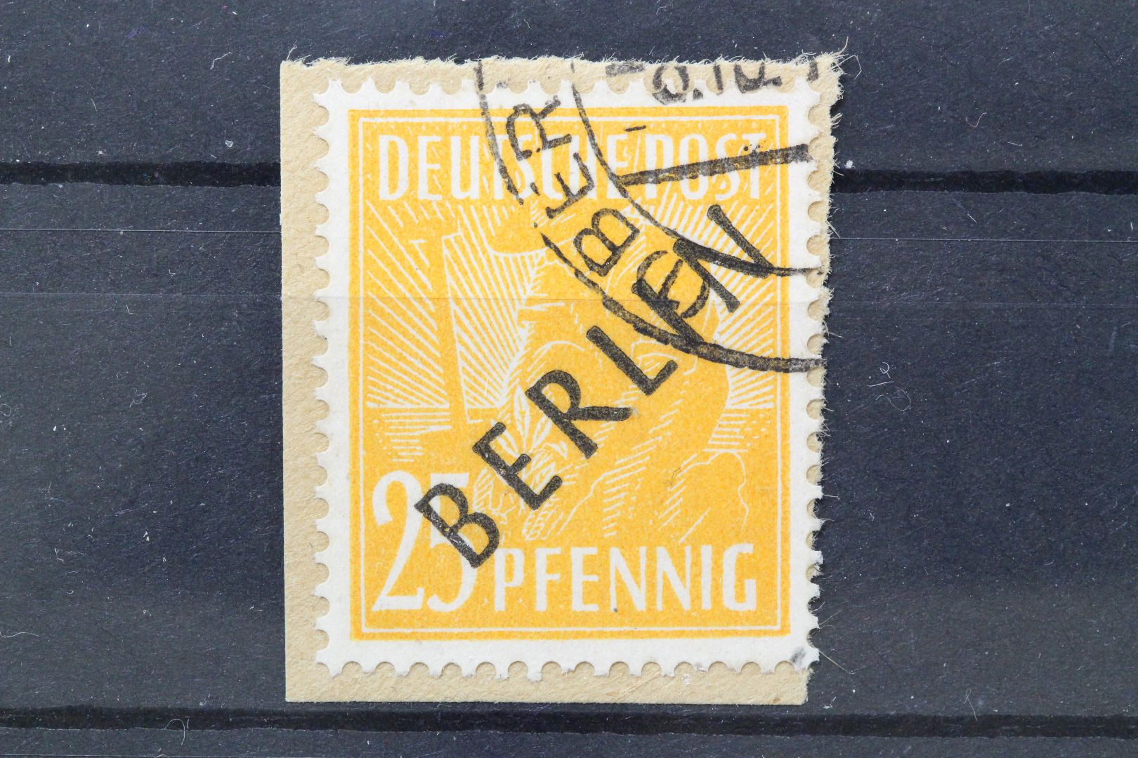 25 Pf. Schwarzaufdruck, kleines Briefstück, geprüft Schlegel