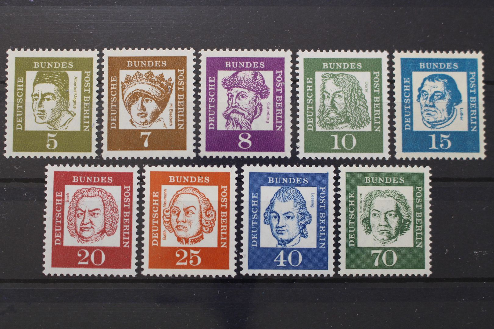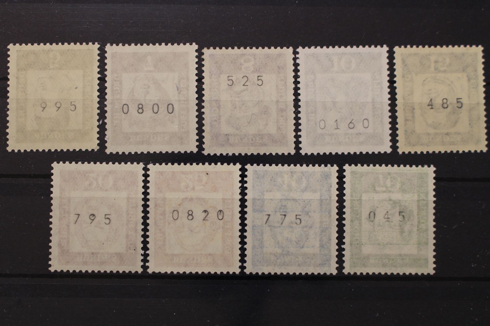 5, 7, 8, 10, 15, 20, 25, 40 und 70 Pf Freimarken, jeweils mit Zählnummer