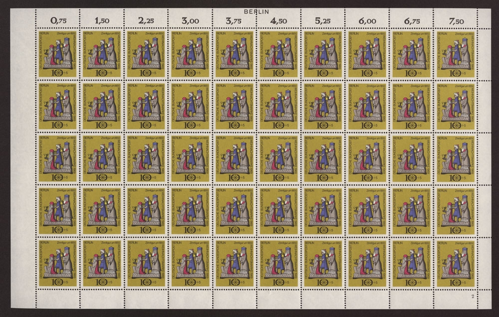 Berlin, MiNr. 352, 50er Bogen, FN 2, Zudruck Berlin, postfrisch