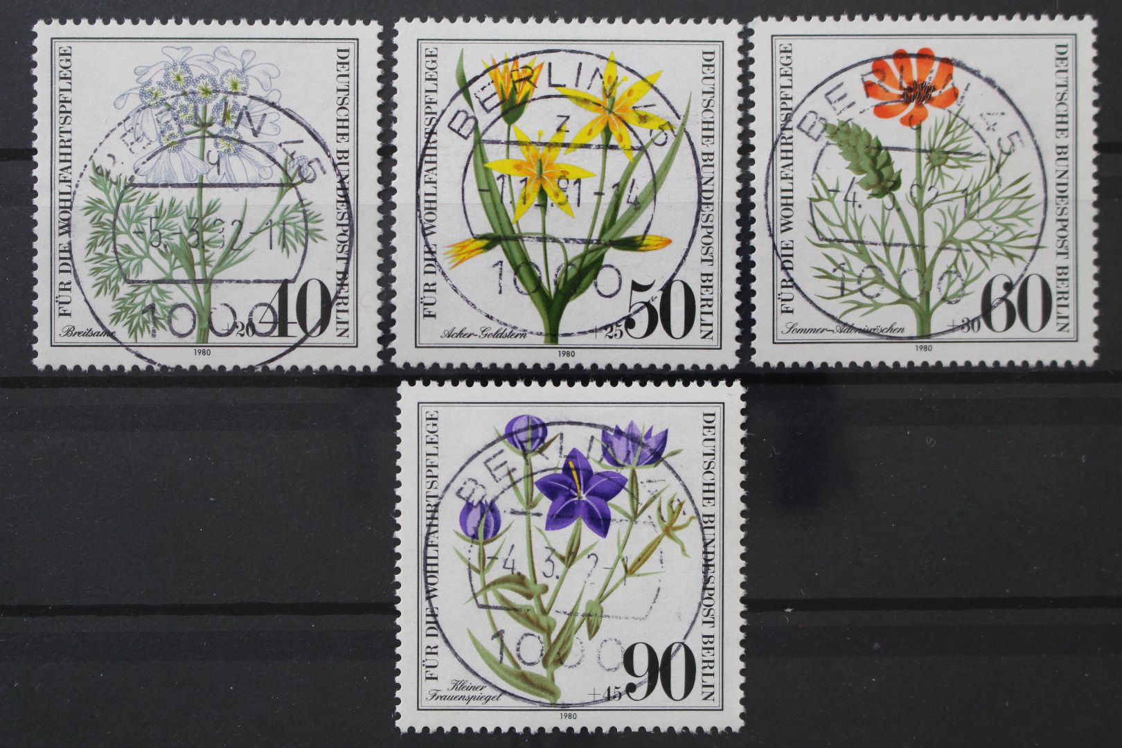 Berlin, MiNr. 629-632 zentrisch Berlin 45, gestempelt