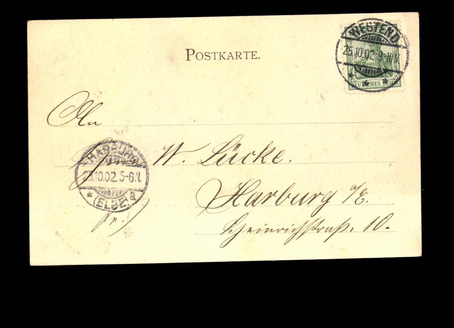 Karte gelaufen, Ecken bestoßen, leicht fleckig.