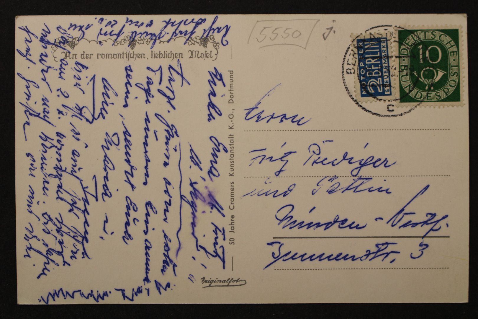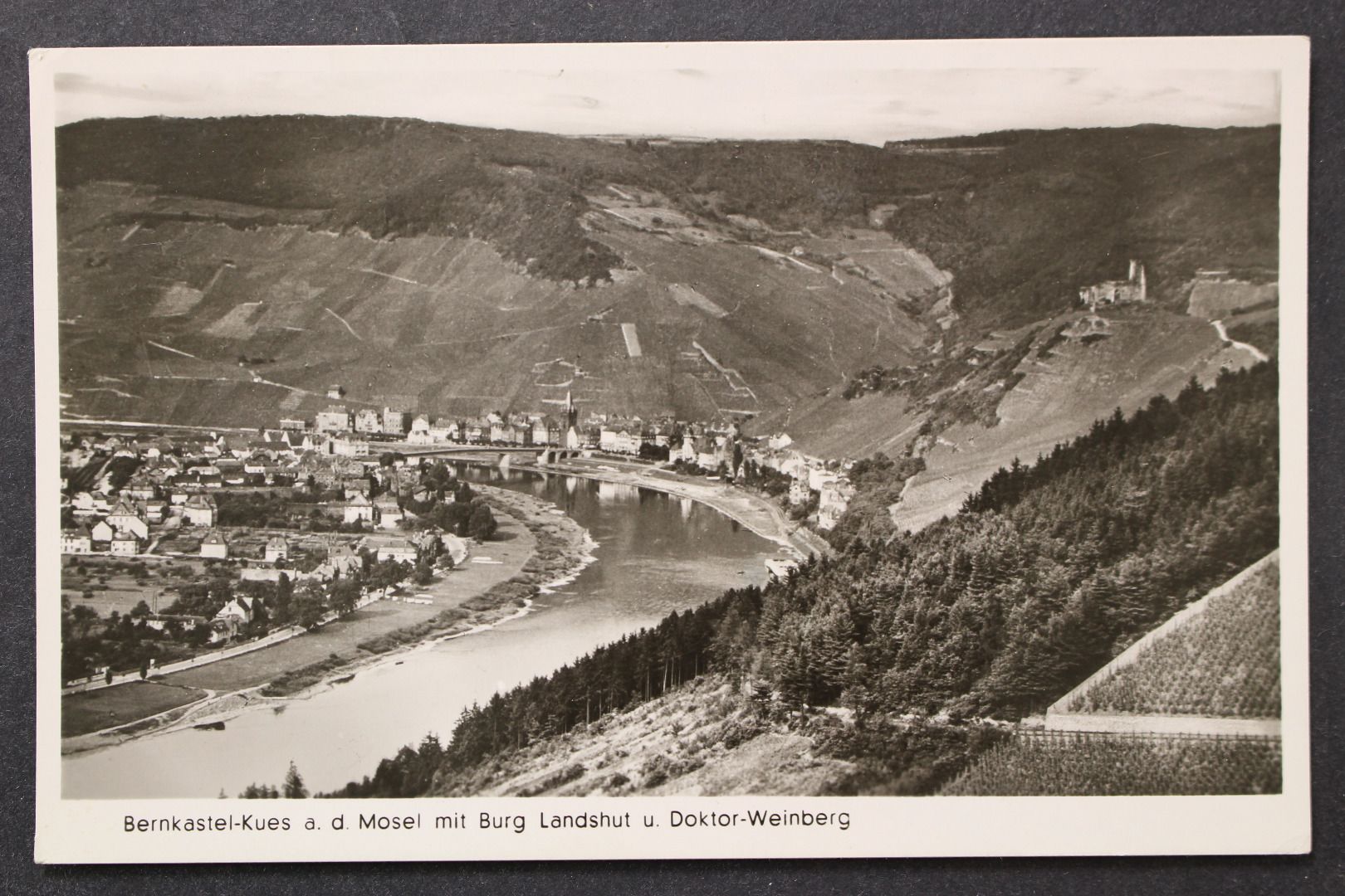 Karte gelaufen, etwas bestoßen, leicht fleckig