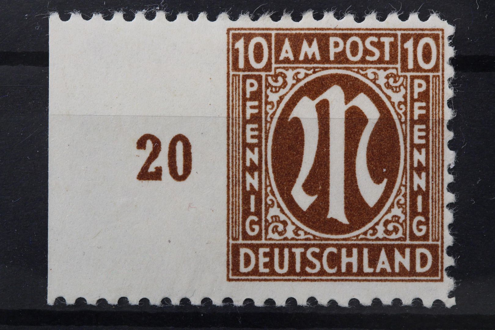 10 Pf. AM Post, Anhaftungen und Falzrest