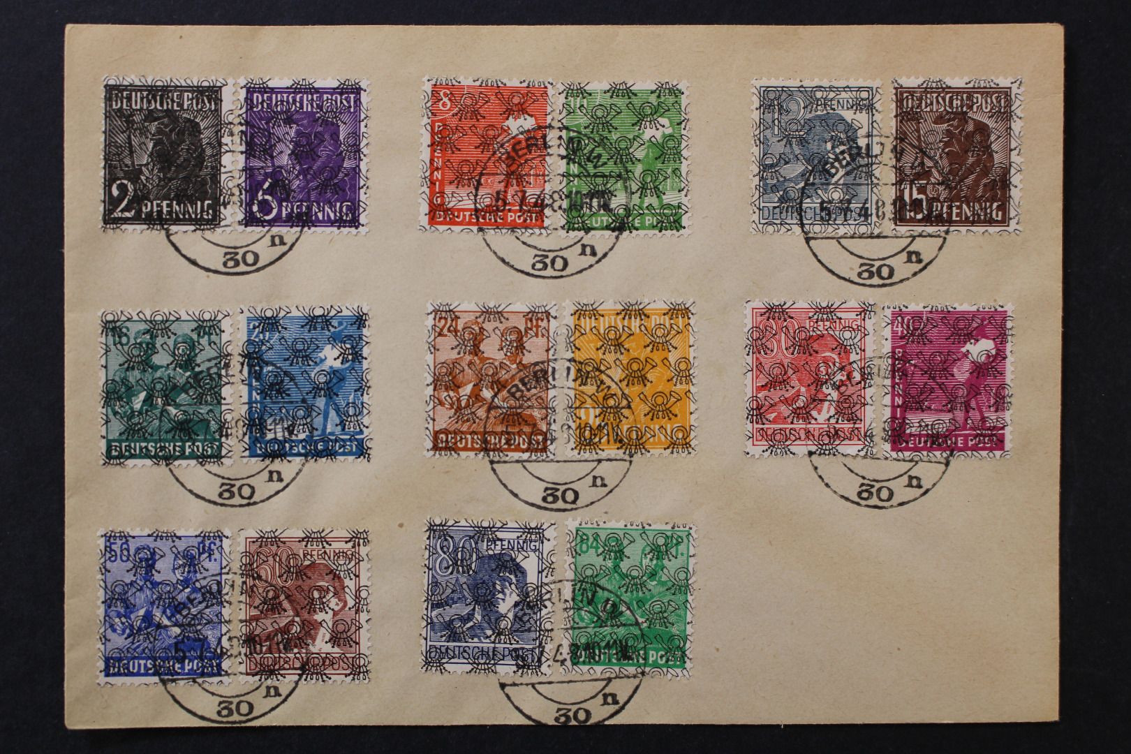 Netzaufdruck, 16 Werte, ohne 49 II auf Blankoumschlag mit Berlinstempel vom 5.7.48