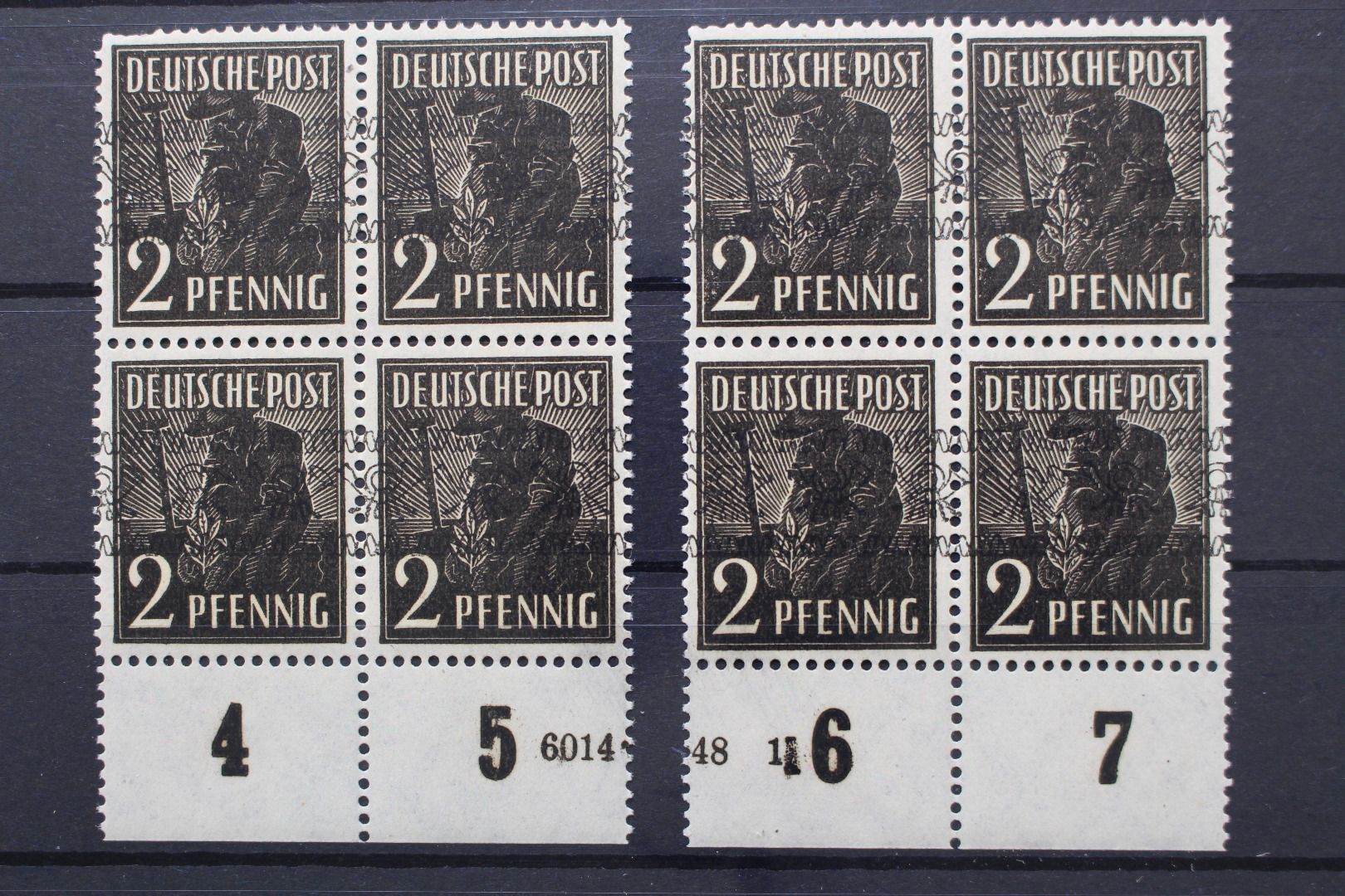 2 Pf. Bandaufdruck, HAN 601448.1 auf zwei Viererblöcke aufgeteilt, Zähnung teilweise etwas fleckig.