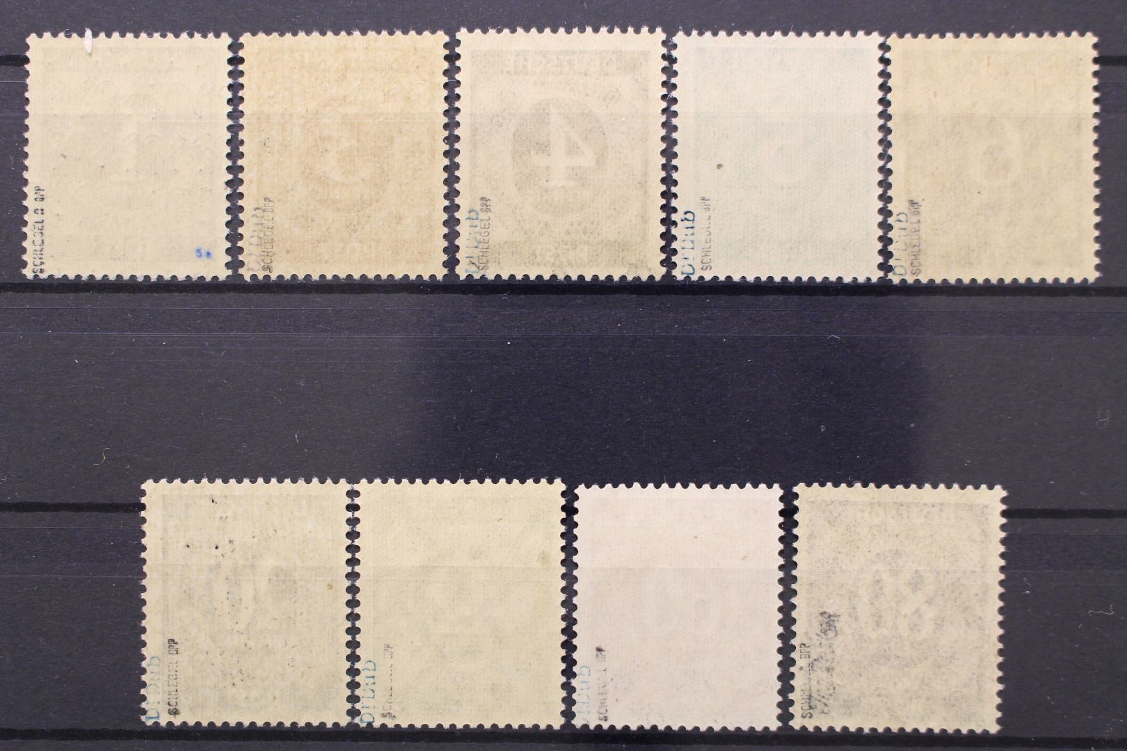 1 - 80 Pf. Netzaufdruck, 9 Werte, geprüft Schlegel.