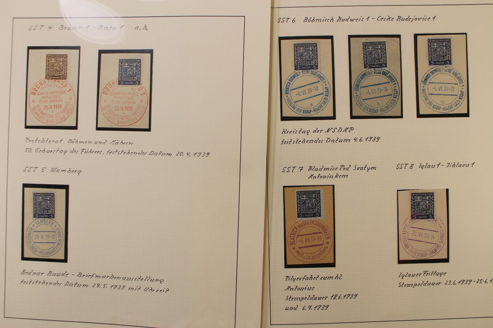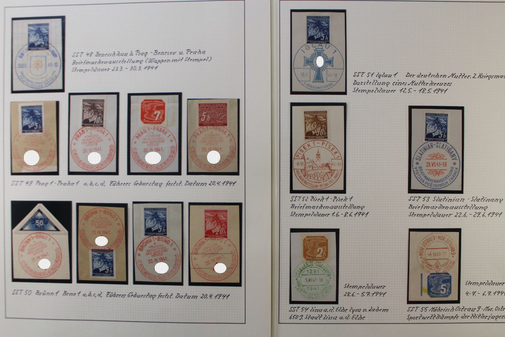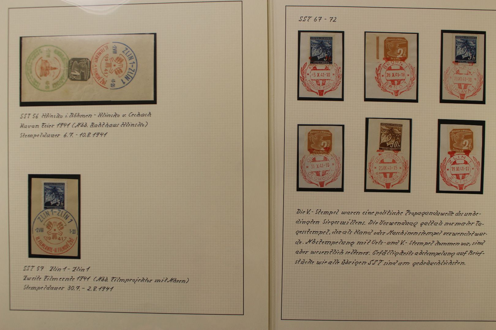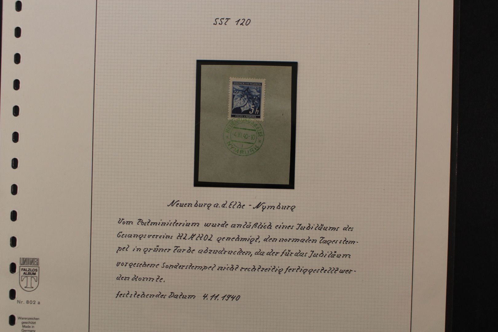 Gesammelt wurden Briefstücke mit Sonderstempeln, insgesamt sind ca. 200 Stück enthalten. Eine so umfangreiche Sammlung, auch mit seltenen Stempeln, wird kaum einmal angeboten. Untergebracht in einem Lindner-Kassettenbinder mit Kunststoffhüllen und selbstgestalteten Blankoblättern.