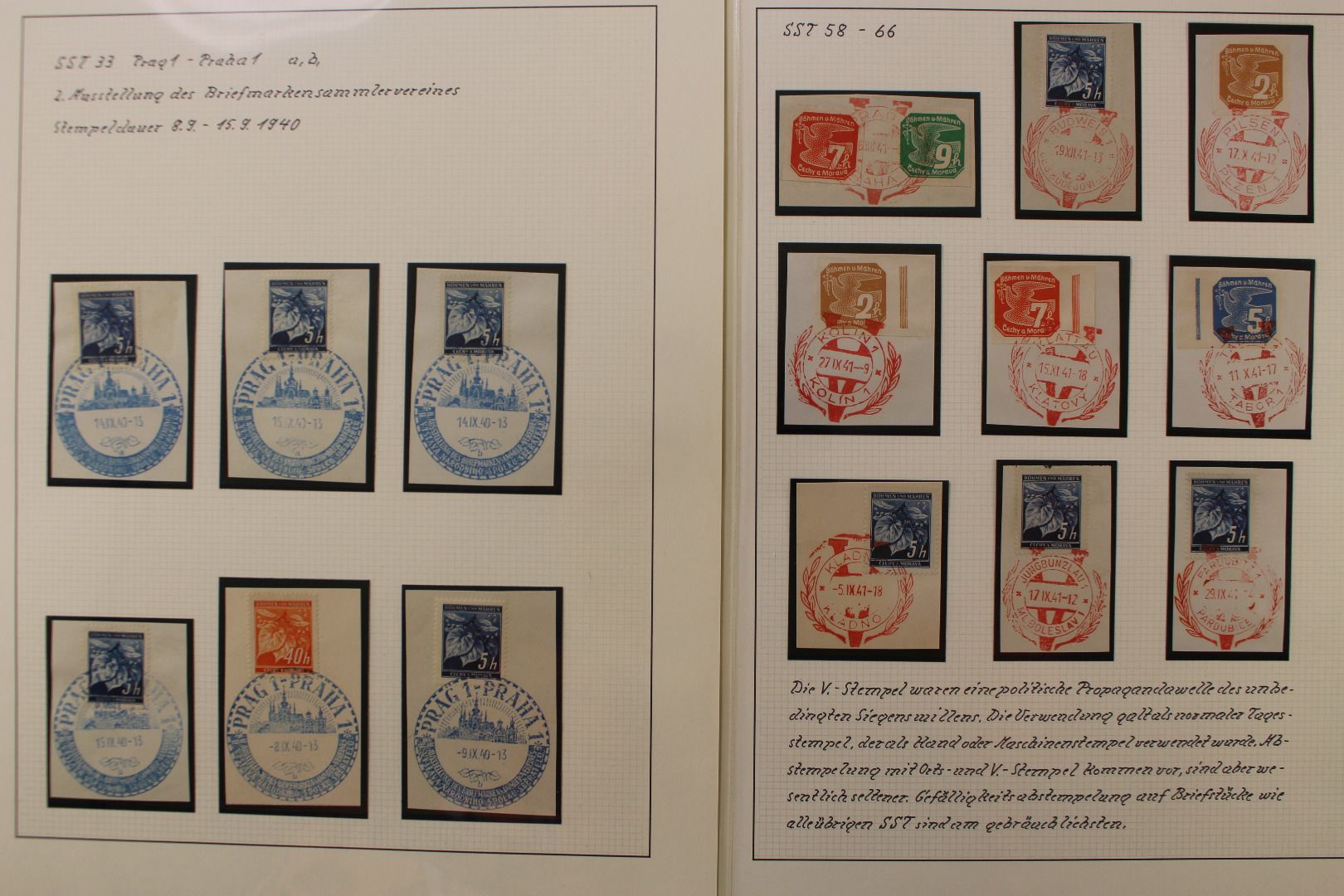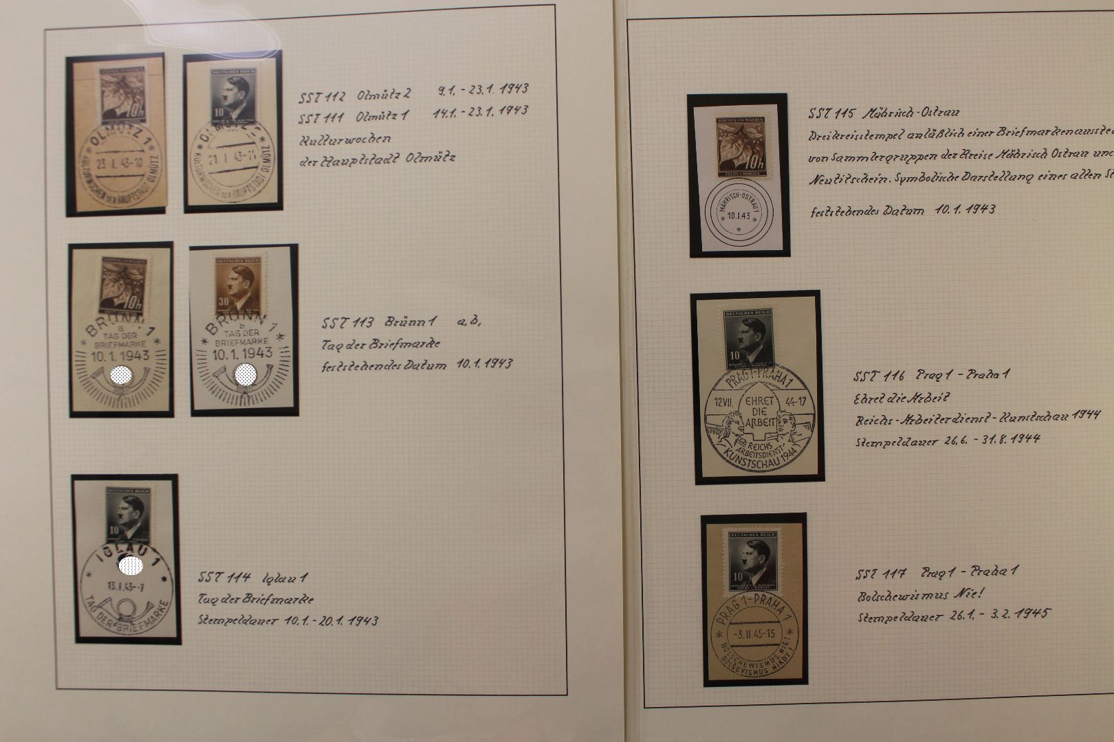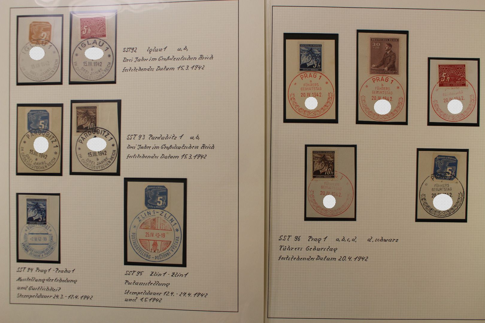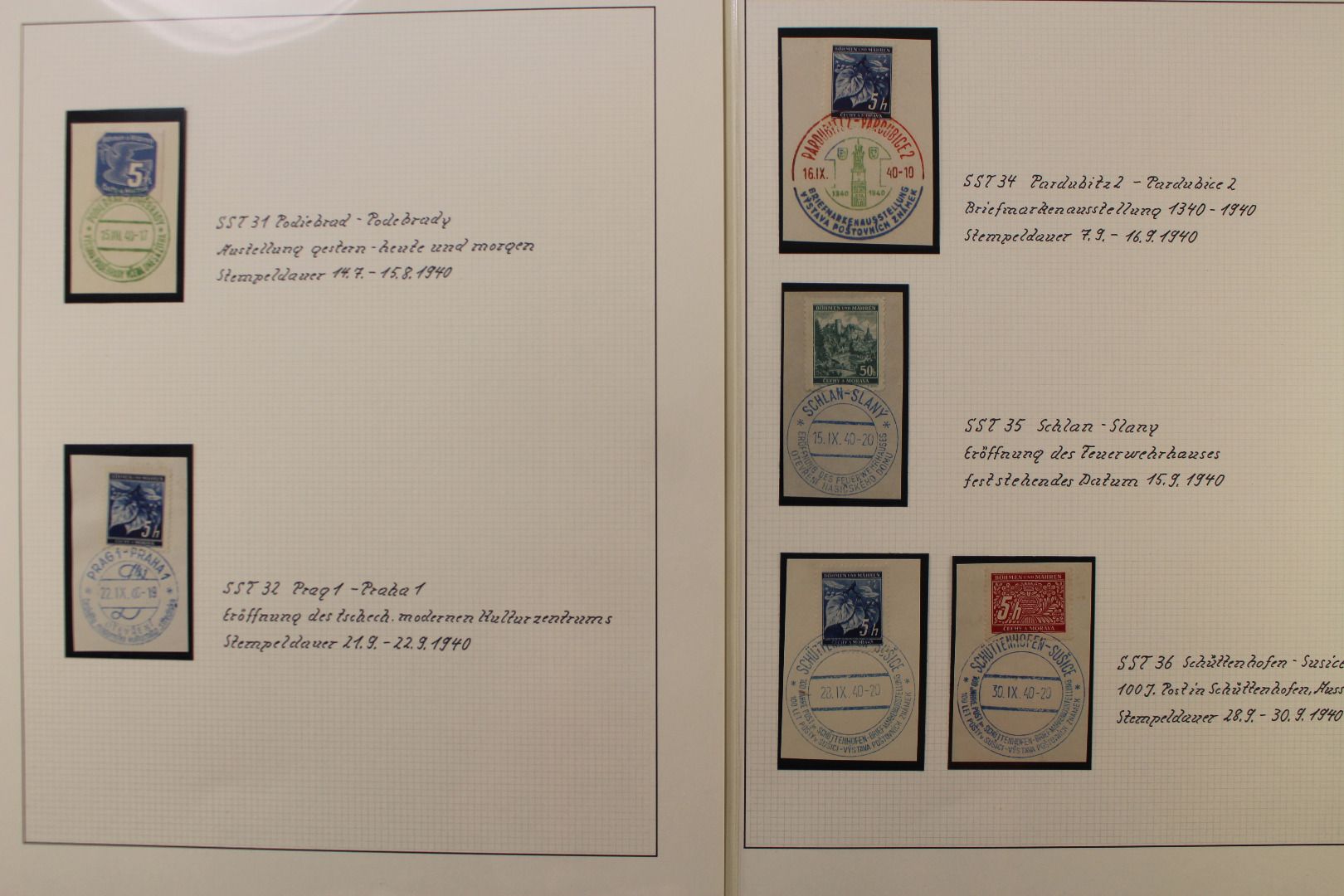 Gesammelt wurden Briefstücke mit Sonderstempeln, insgesamt sind ca. 200 Stück enthalten. Eine so umfangreiche Sammlung, auch mit seltenen Stempeln, wird kaum einmal angeboten. Untergebracht in einem Lindner-Kassettenbinder mit Kunststoffhüllen und selbstgestalteten Blankoblättern.