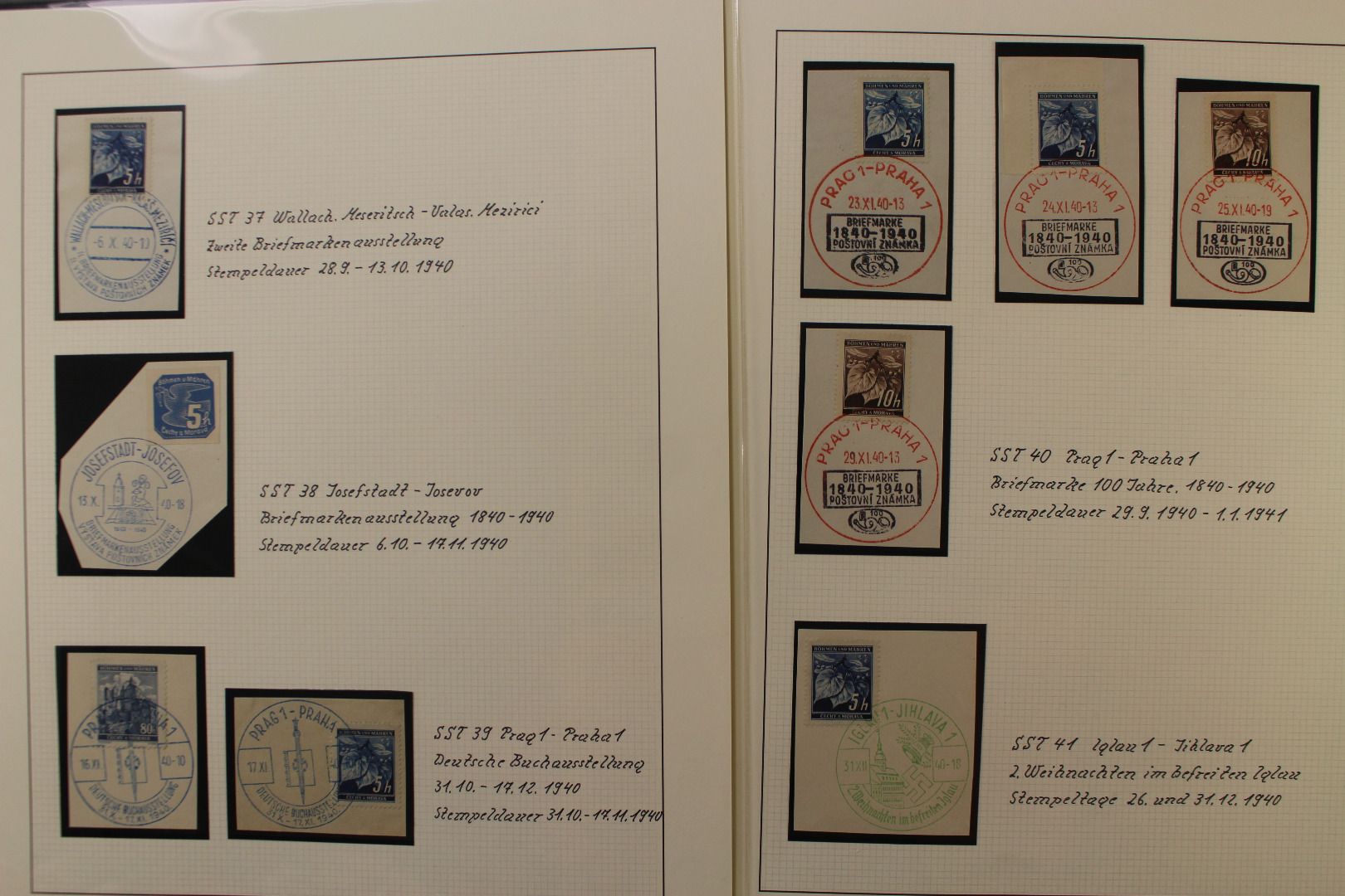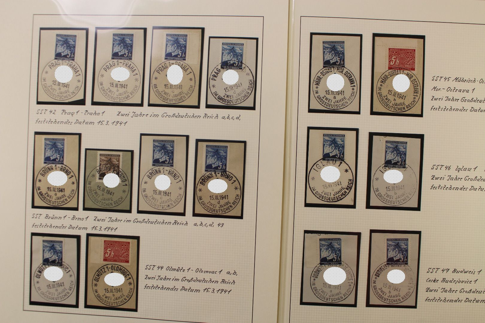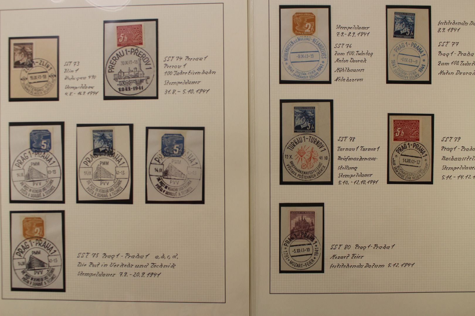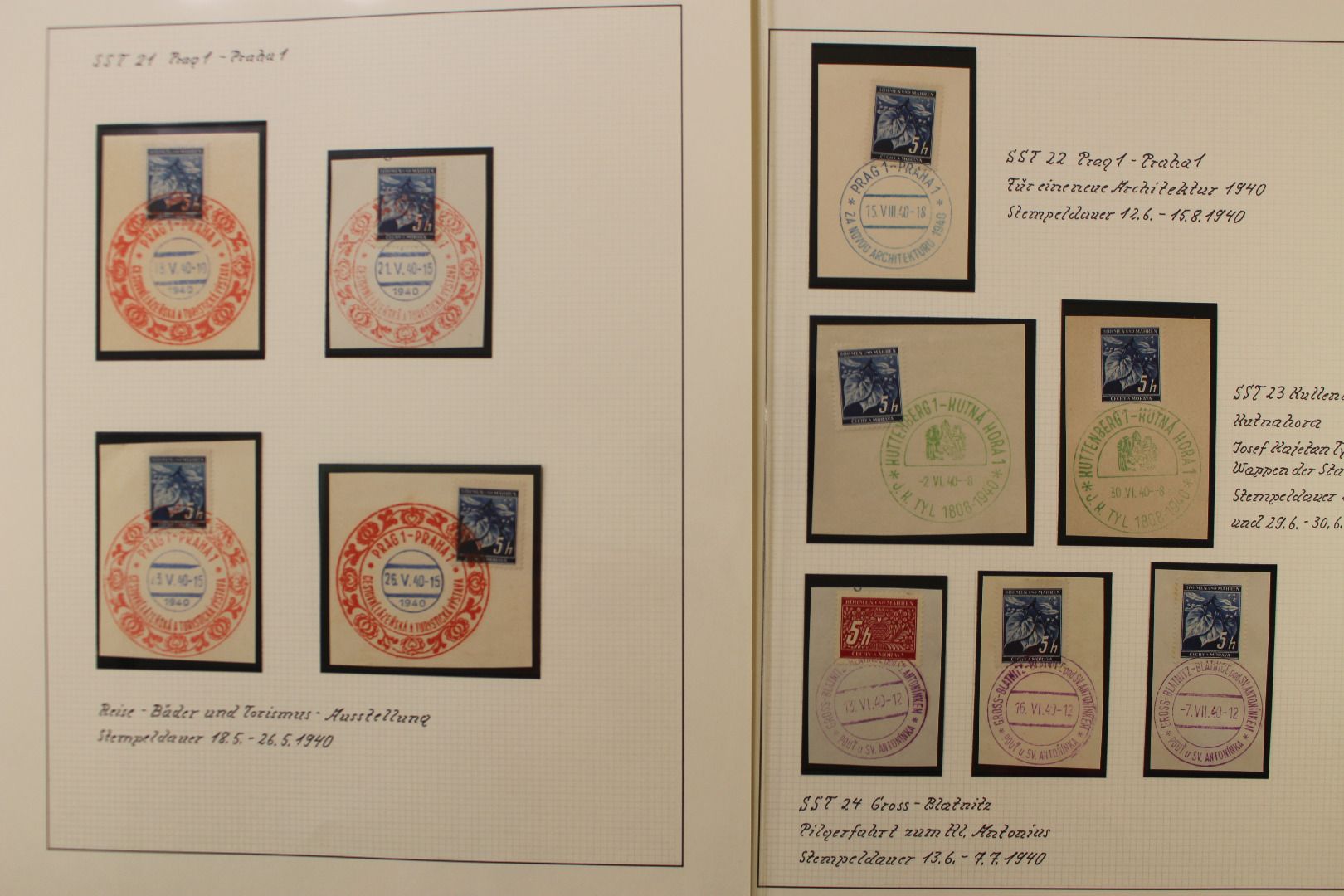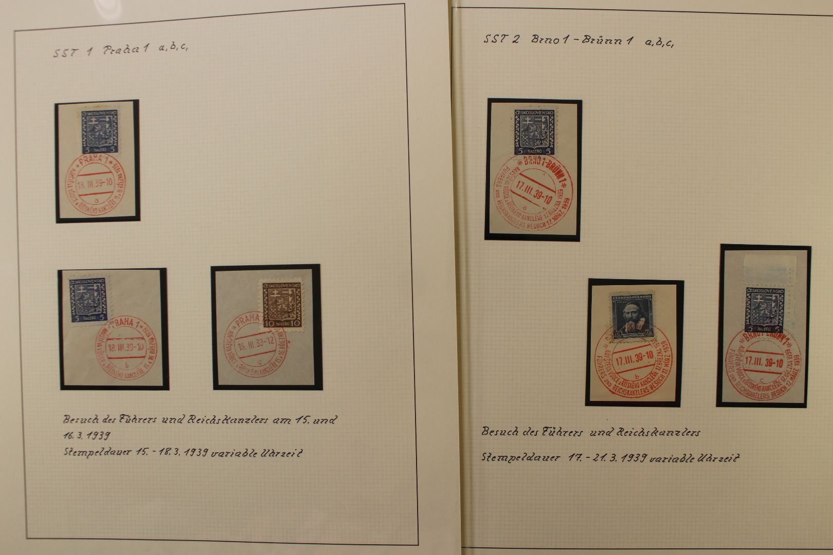 Gesammelt wurden Briefstücke mit Sonderstempeln, insgesamt sind ca. 200 Stück enthalten. Eine so umfangreiche Sammlung, auch mit seltenen Stempeln, wird kaum einmal angeboten. Untergebracht in einem Lindner-Kassettenbinder mit Kunststoffhüllen und selbstgestalteten Blankoblättern.
