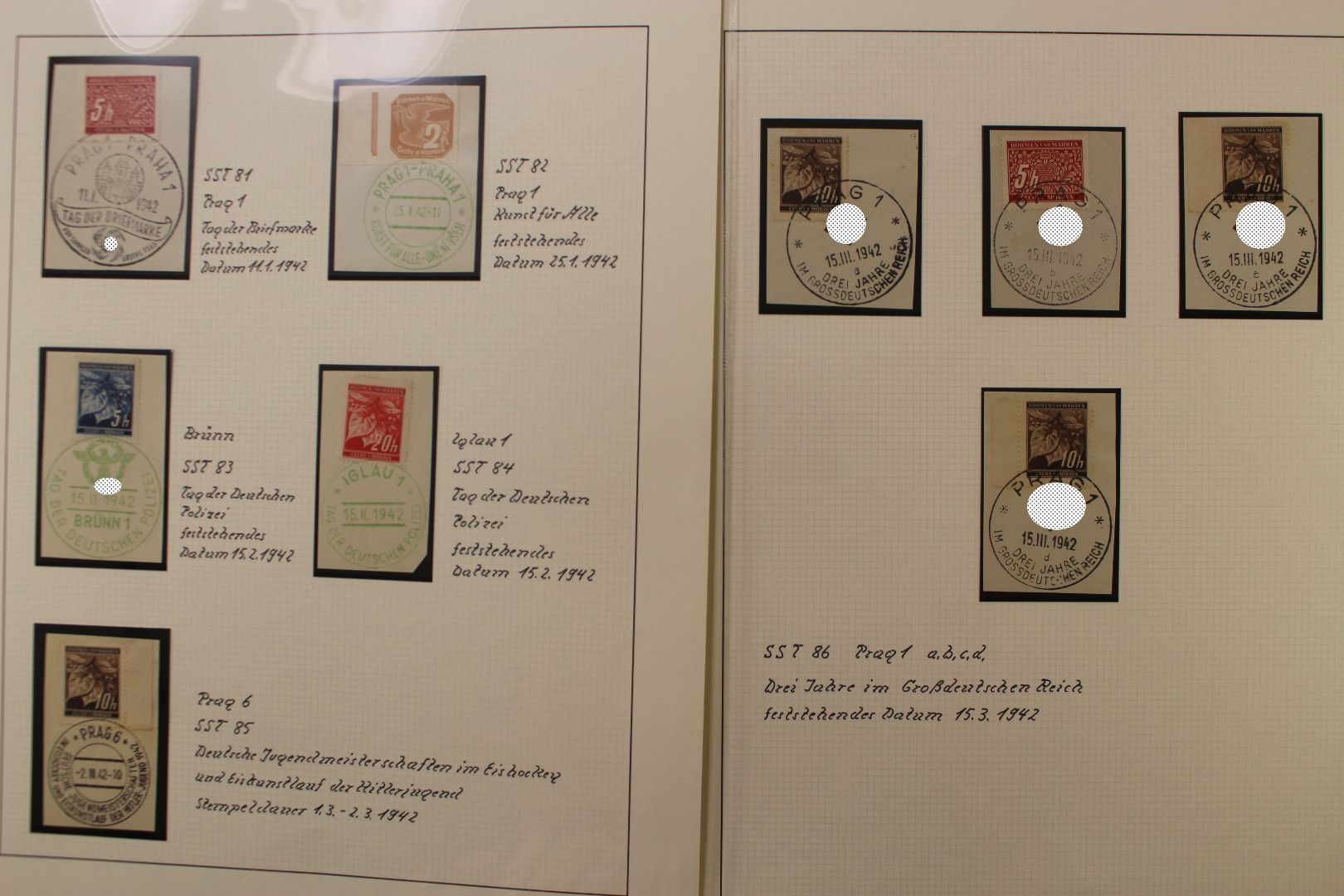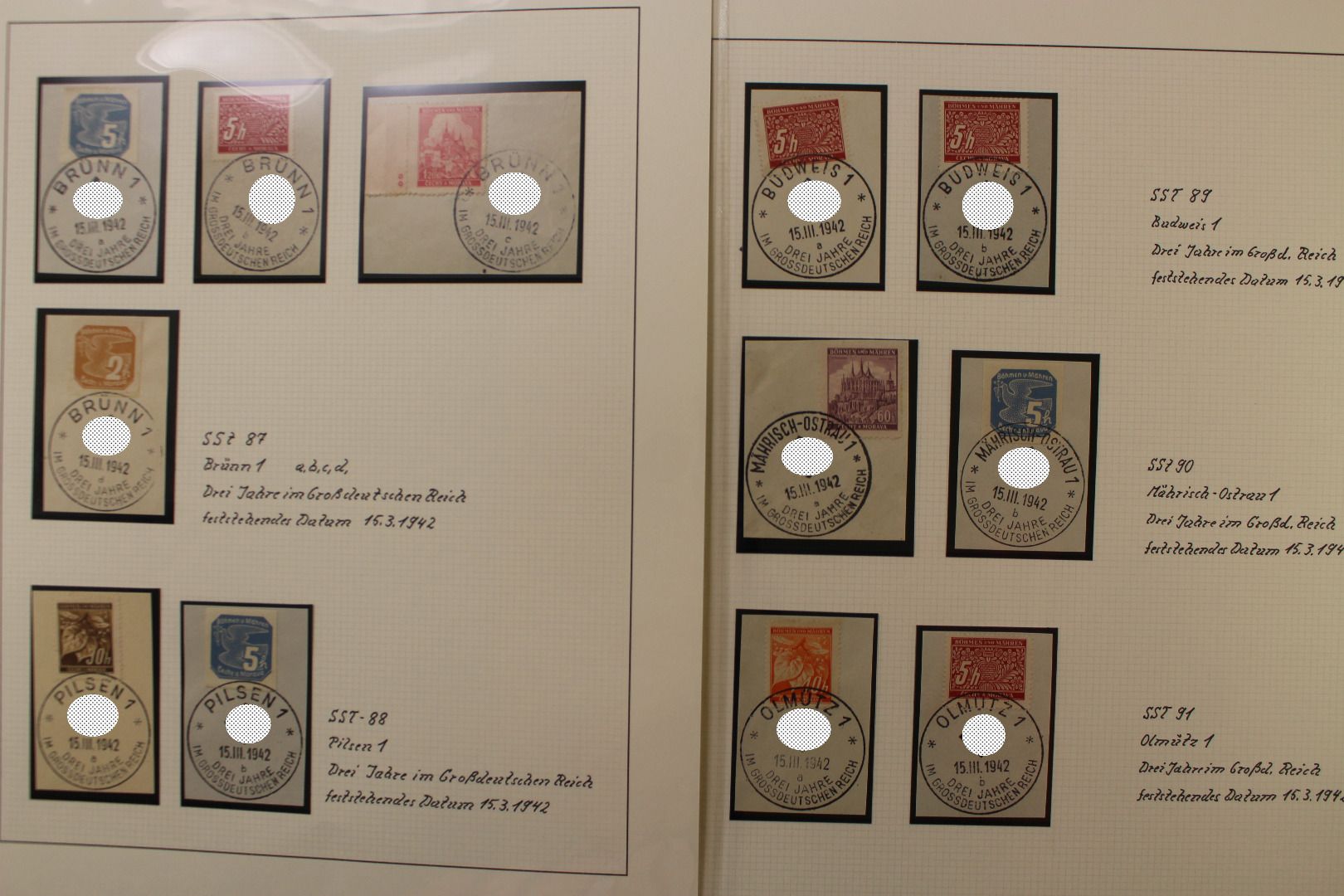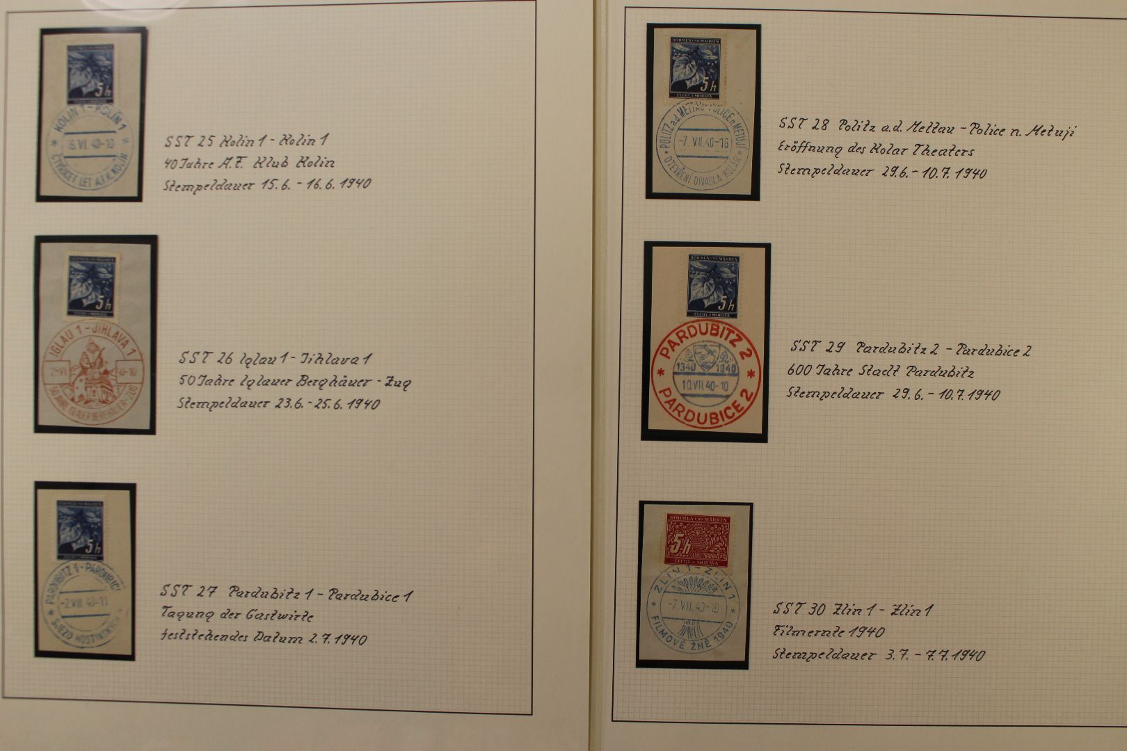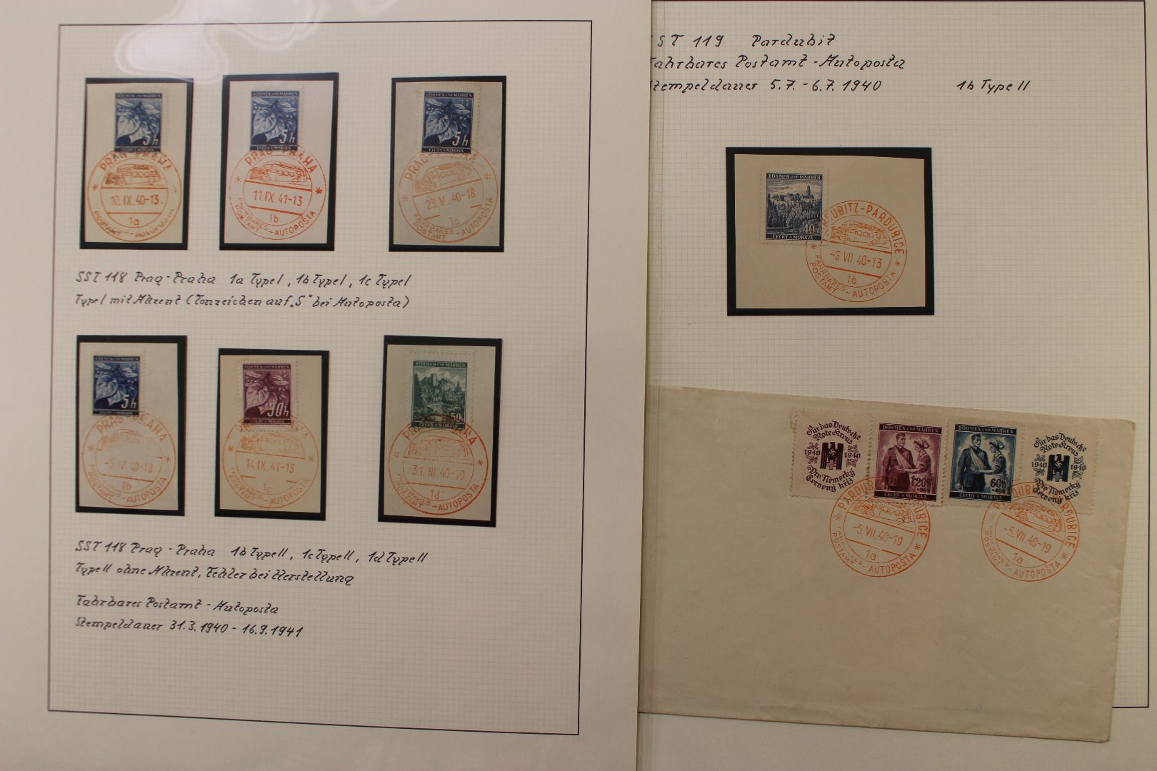 Gesammelt wurden Briefstücke mit Sonderstempeln, insgesamt sind ca. 200 Stück enthalten. Eine so umfangreiche Sammlung, auch mit seltenen Stempeln, wird kaum einmal angeboten. Untergebracht in einem Lindner-Kassettenbinder mit Kunststoffhüllen und selbstgestalteten Blankoblättern.