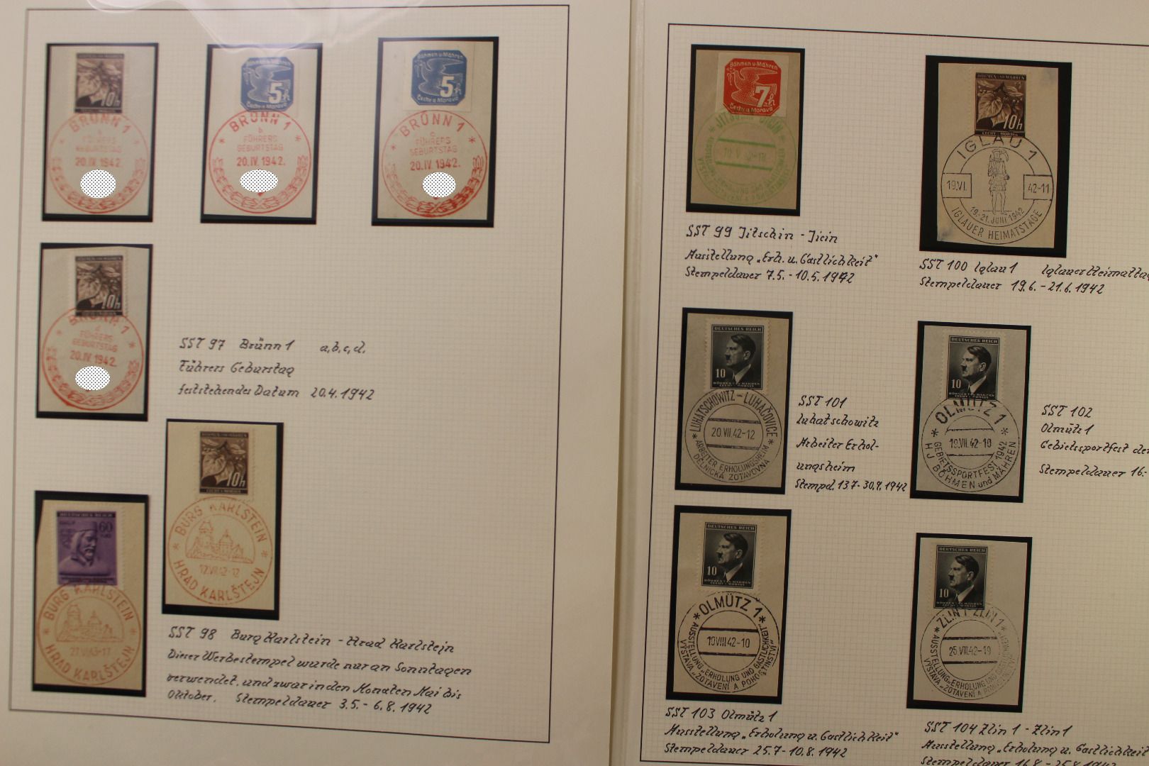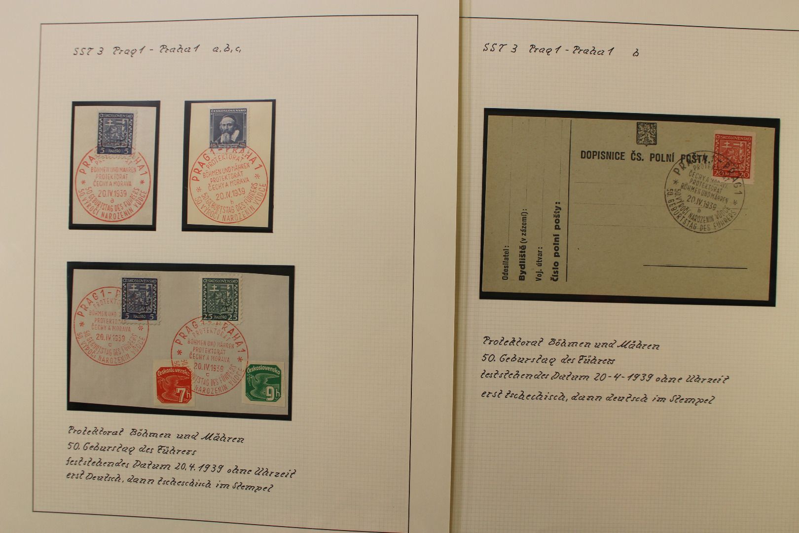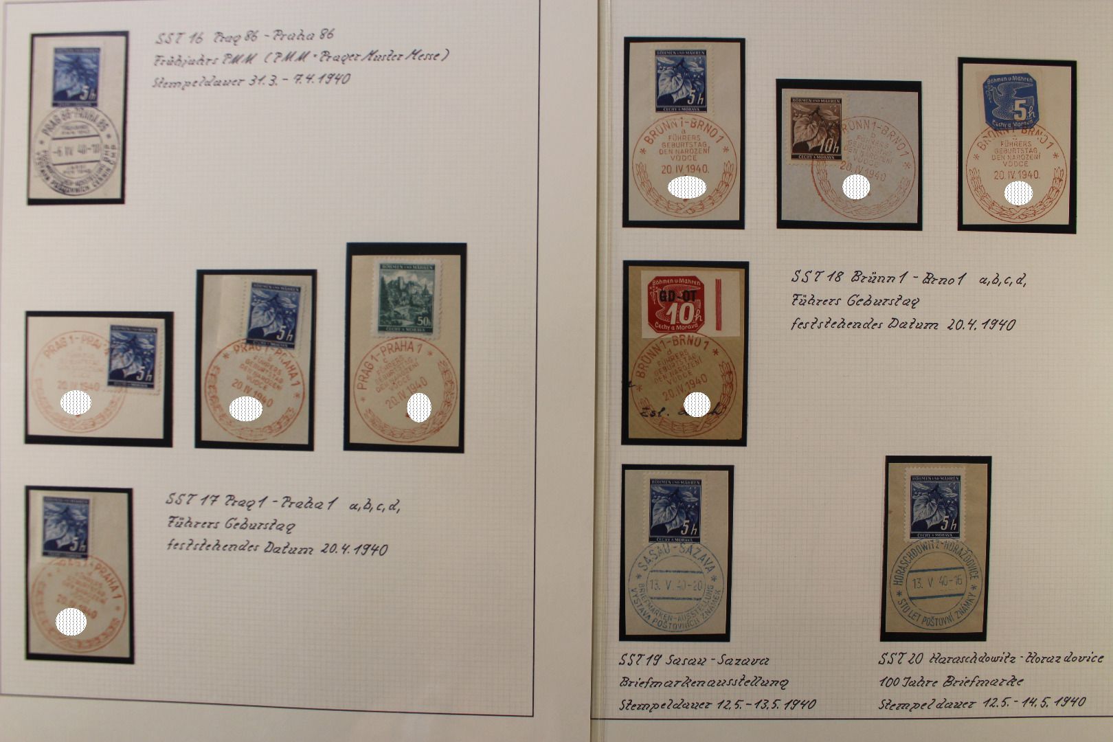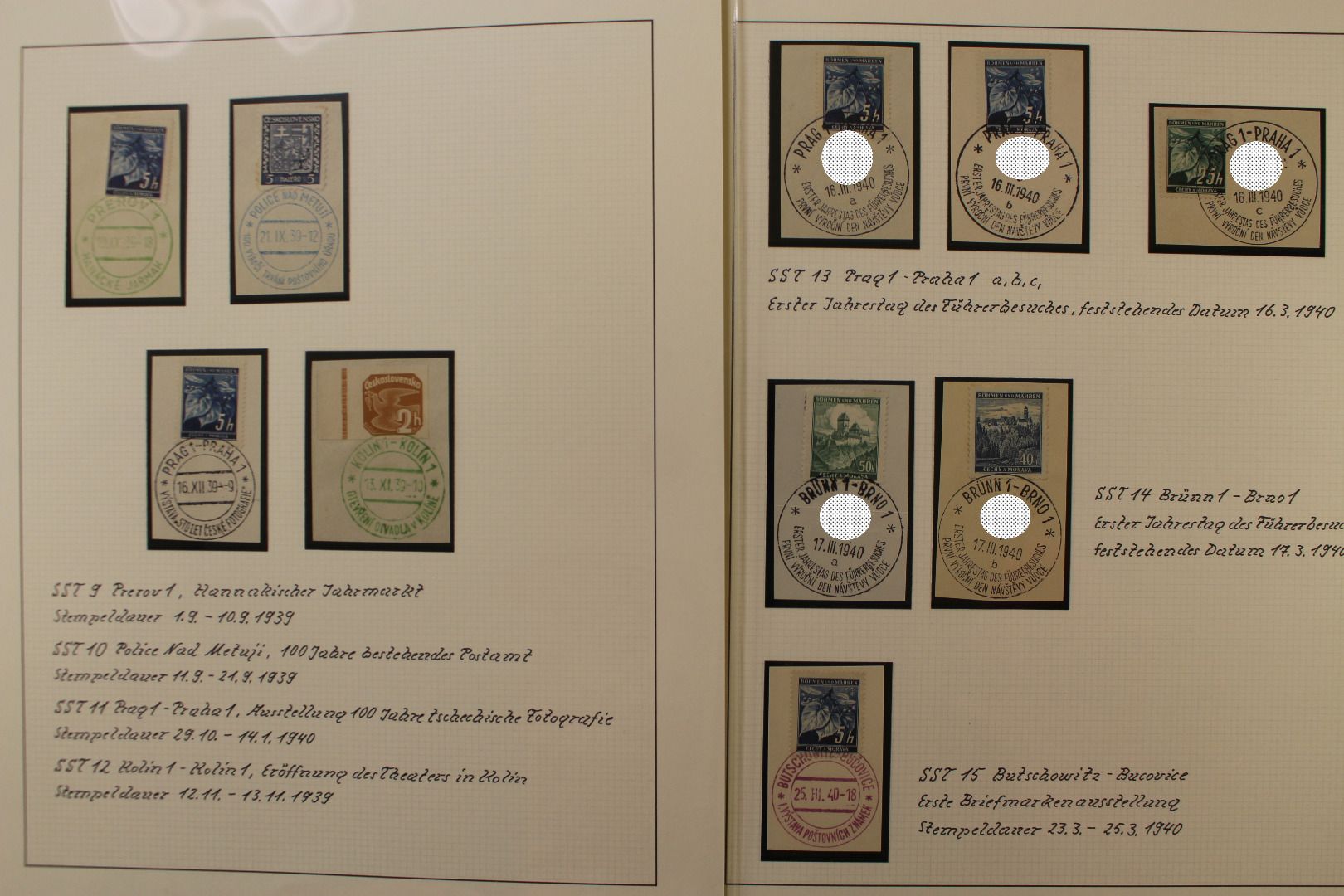 Gesammelt wurden Briefstücke mit Sonderstempeln, insgesamt sind ca. 200 Stück enthalten. Eine so umfangreiche Sammlung, auch mit seltenen Stempeln, wird kaum einmal angeboten. Untergebracht in einem Lindner-Kassettenbinder mit Kunststoffhüllen und selbstgestalteten Blankoblättern.
