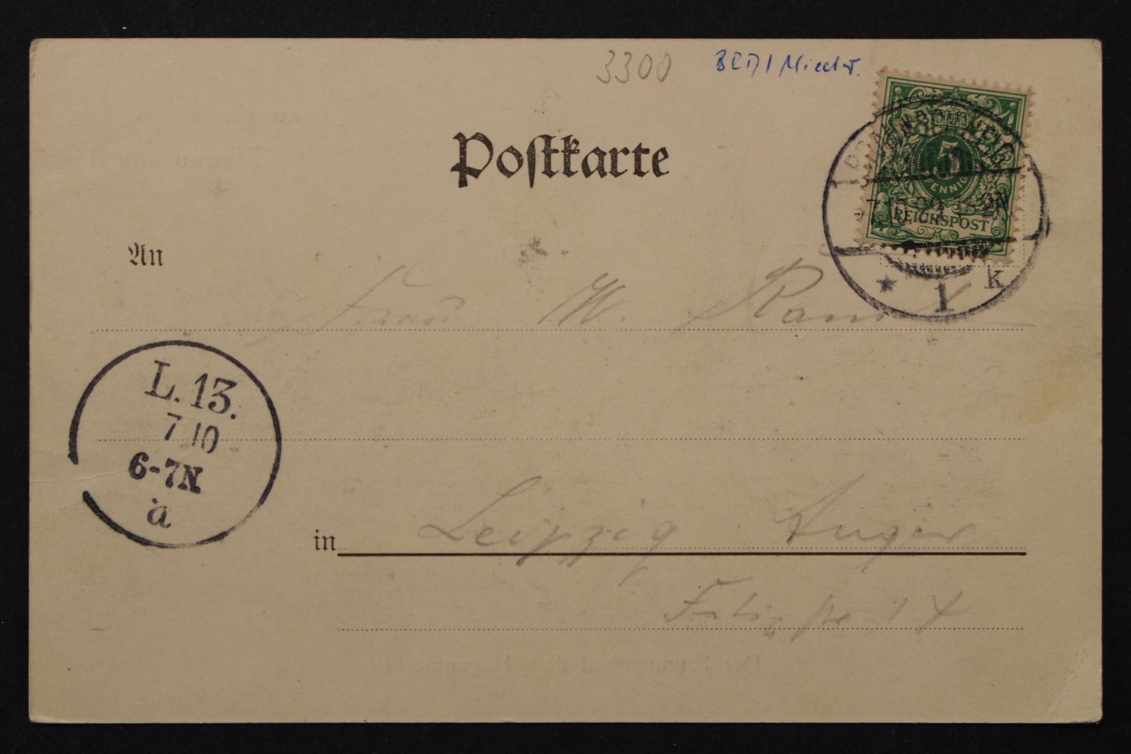 Karte gelaufen, Ecken leicht bestoßen, etwas fleckig