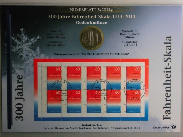 BRD, Numisblatt 5/2014, 300 Jahre Fahrenheit-Skala