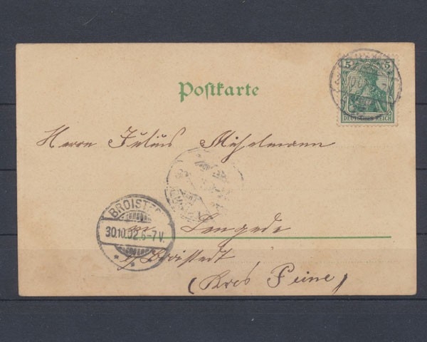 Karte 1902 gelaufen, gute Erhaltung PLZ 28195