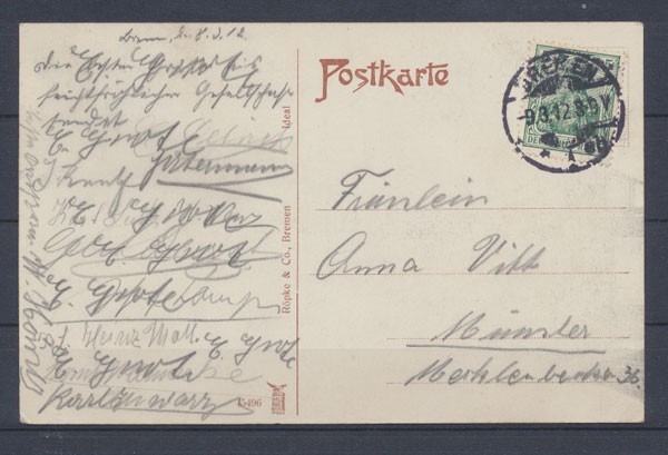 Karte 1912 gelaufen, gute Erhaltung PLZ 28309