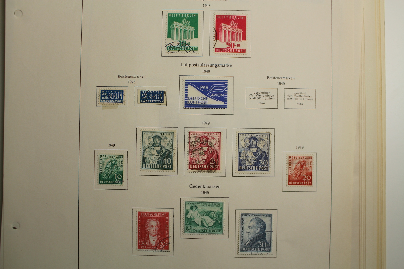 Partie auf losen alten Vordruckblättern und in weiteren 4 Einsteckalben (1 Album ist defekt). Enthalten sind Sammlungsteile ab Altdeutschland Württemberg, Deutsche Kolonien, Besetzung 1 WK, Deutschland 1945-1949, DDR sowie BRD und etwas Finnland. Die Qualität ist unterschiedlich. Wir haben nichts genauer bewertet.