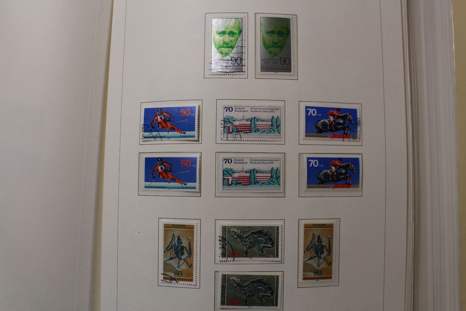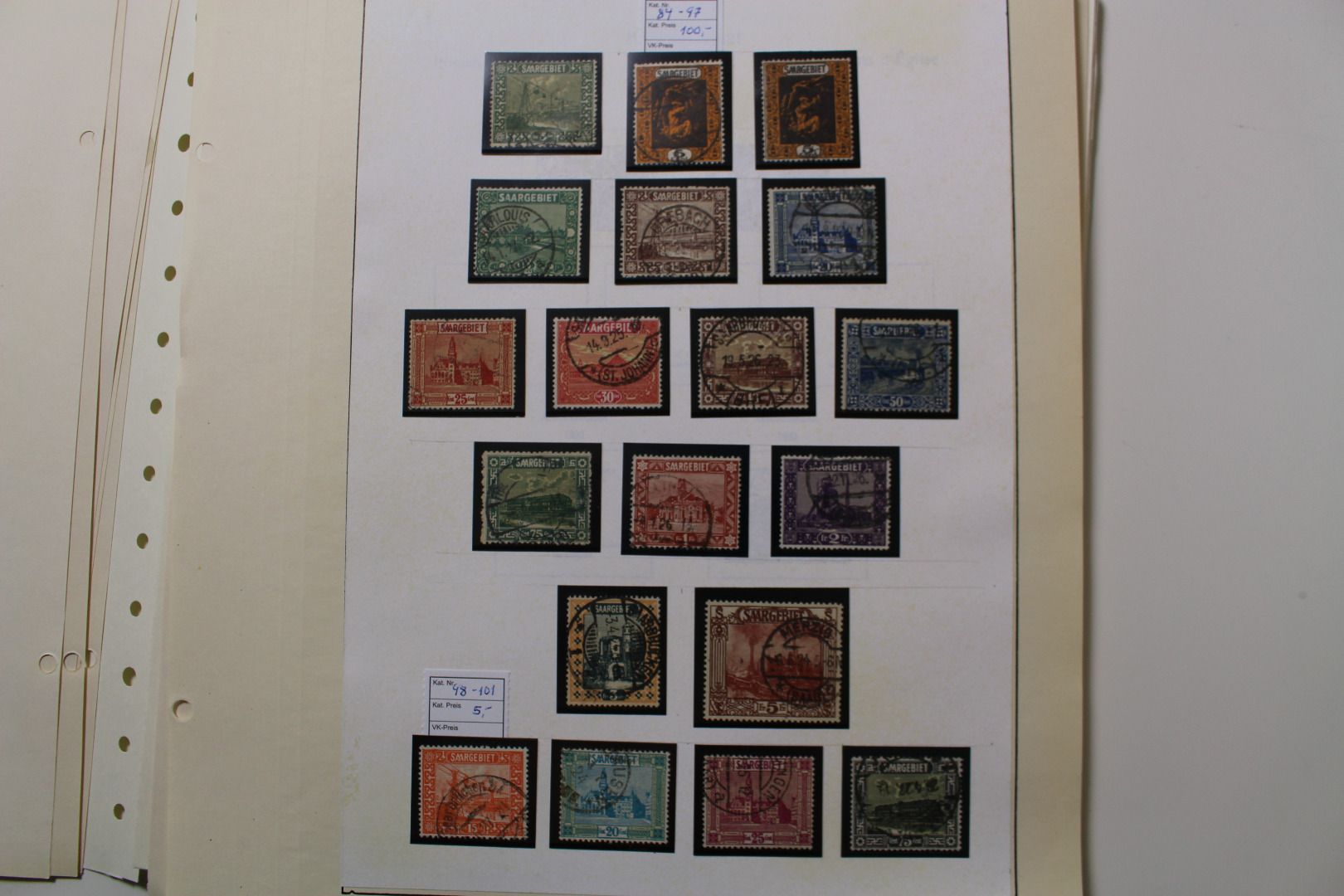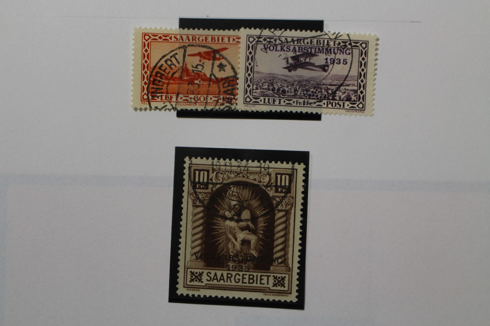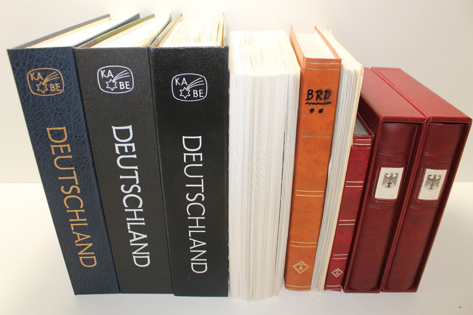 Enthalten ist eine BRD Sammlung ab 1949 bis ca. 2000 in 3 KABE Vordruckalben. Dazu gibt es eine Saarsammlung auf selbstgestalteten Blättern mit einigen besseren Werten, eine Deutschland Plus Sammlung 2003-2009 mit vielen gestempelten Ausgaben, etwas Altdeutschland und 2 Alben ETB´s.