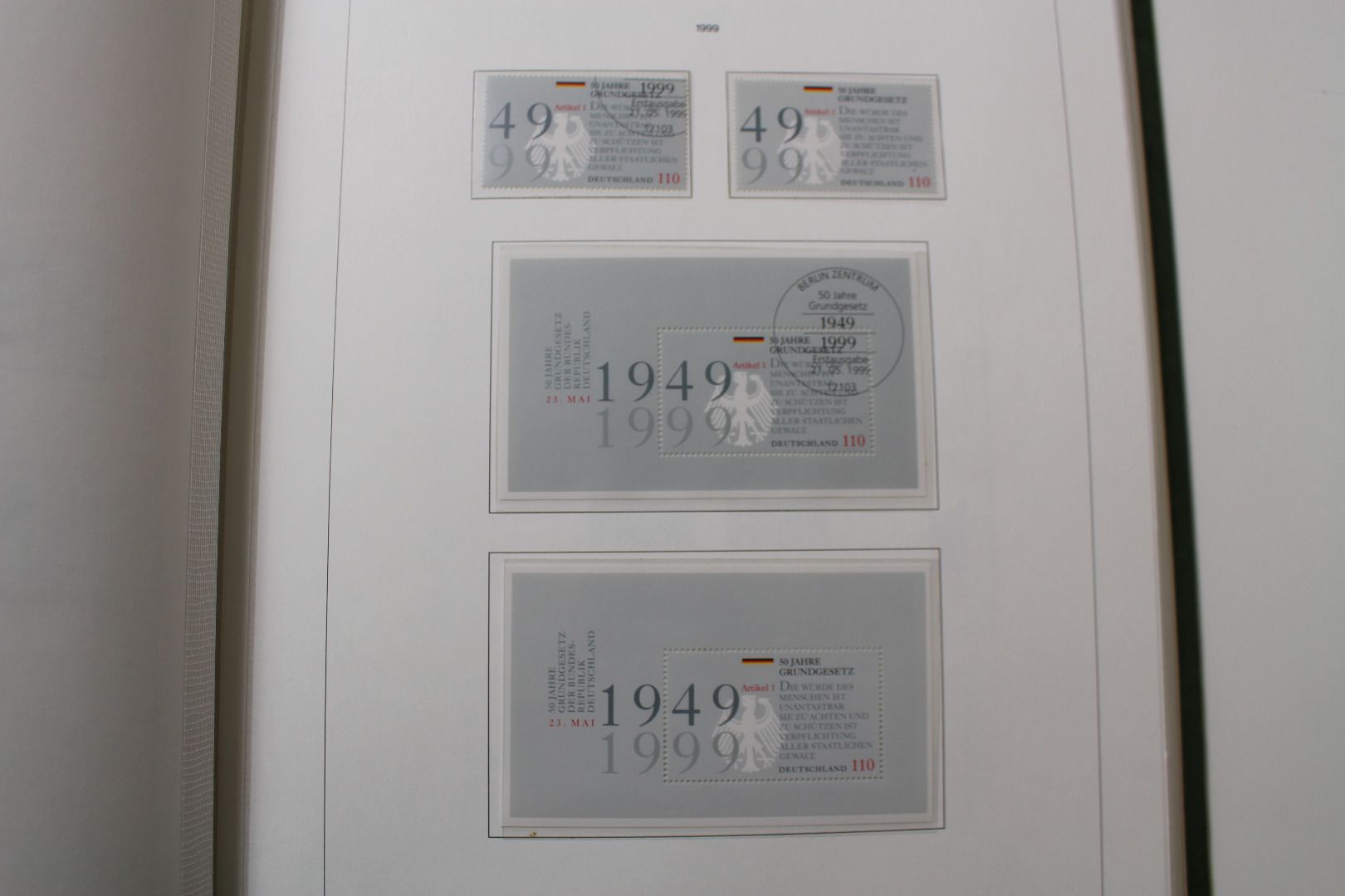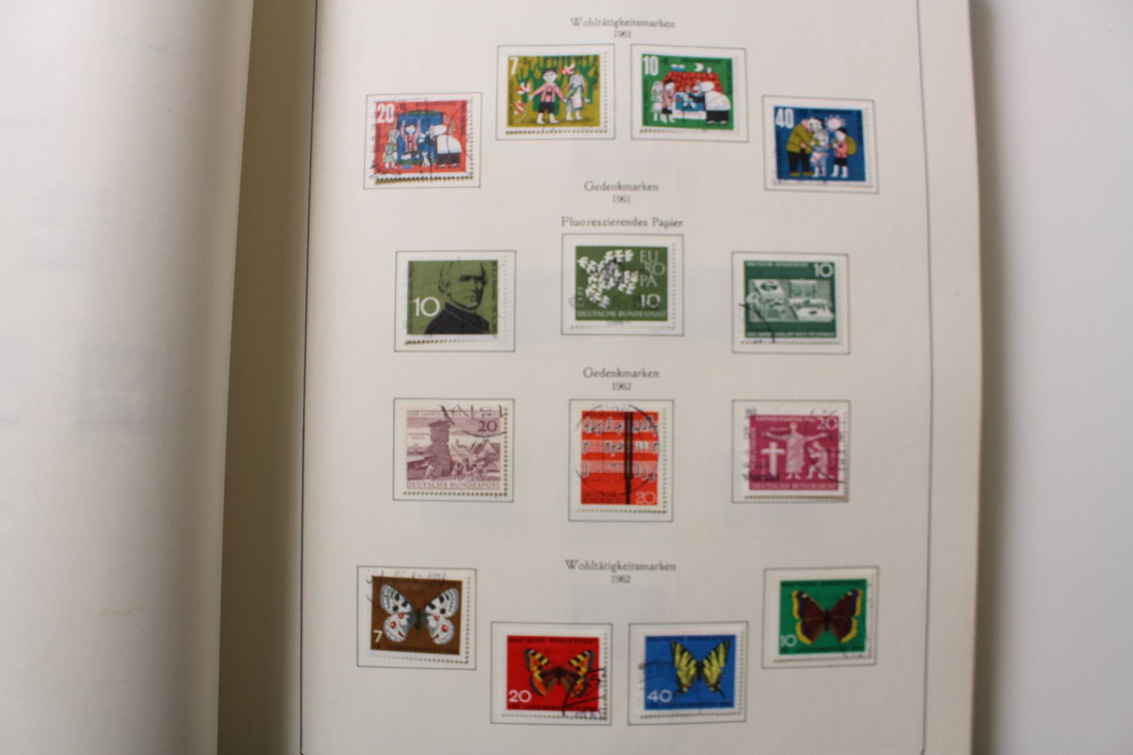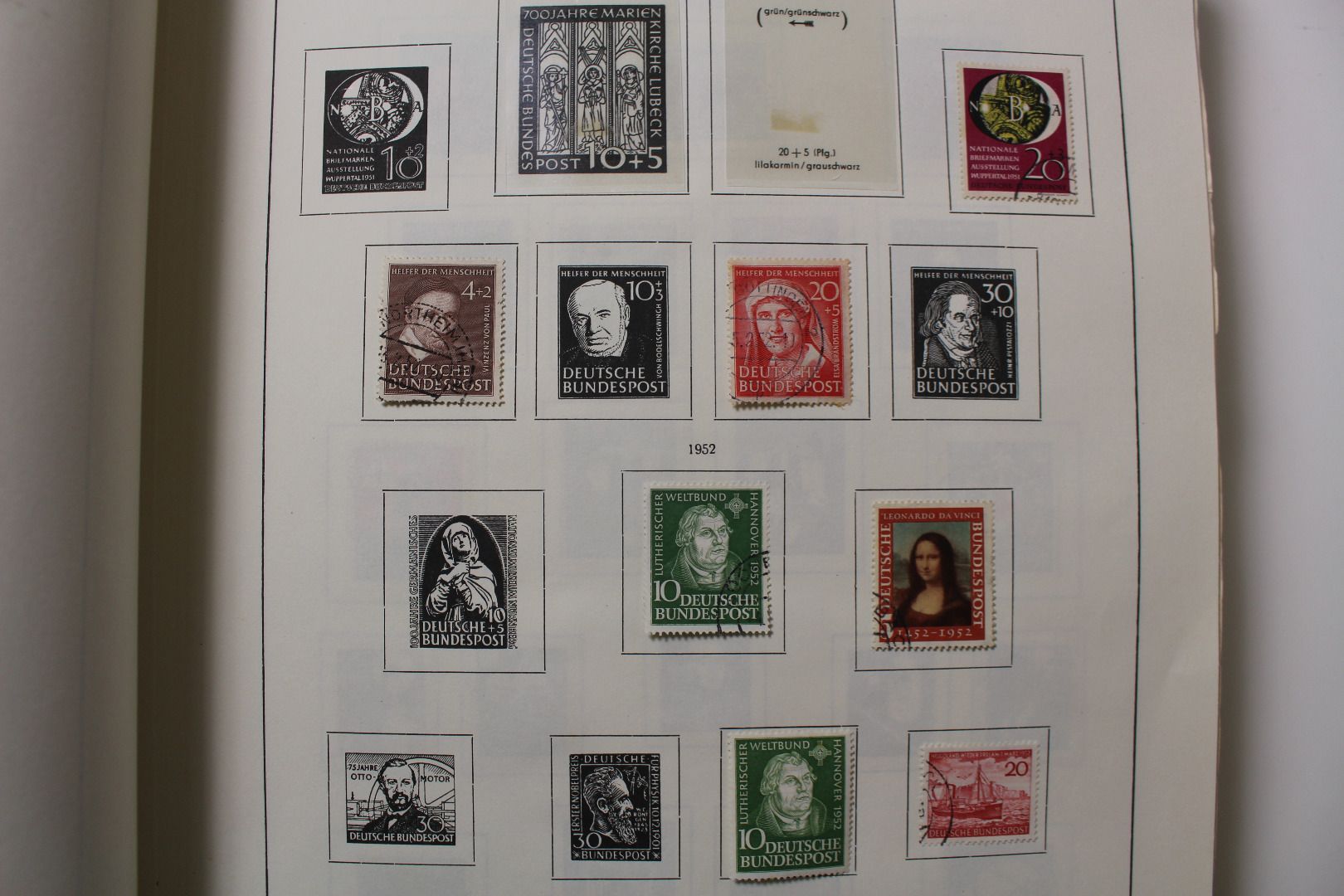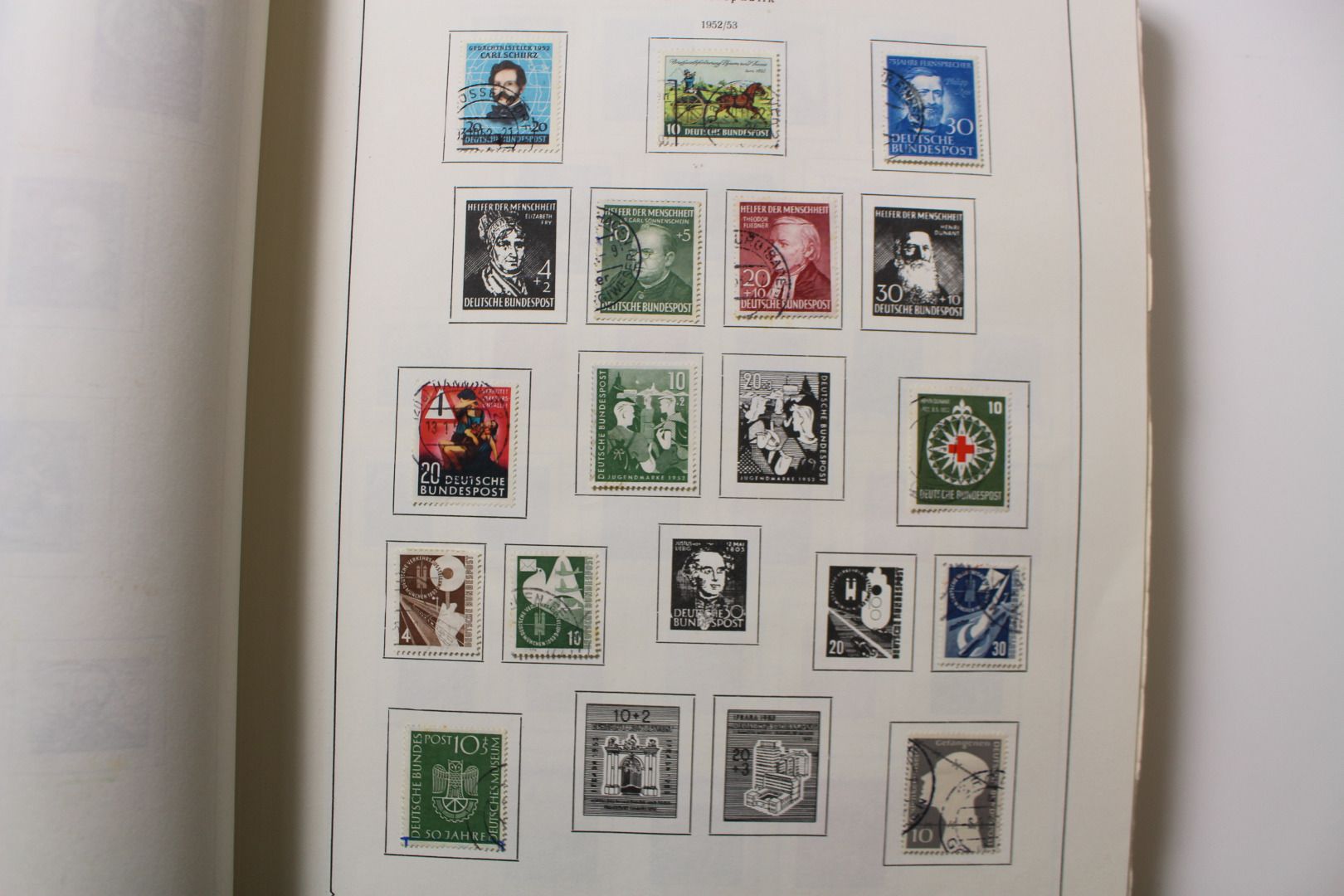 Enthalten ist eine BRD Sammlung ab 1949 bis ca. 2000 in 3 KABE Vordruckalben. Dazu gibt es eine Saarsammlung auf selbstgestalteten Blättern mit einigen besseren Werten, eine Deutschland Plus Sammlung 2003-2009 mit vielen gestempelten Ausgaben, etwas Altdeutschland und 2 Alben ETB´s.