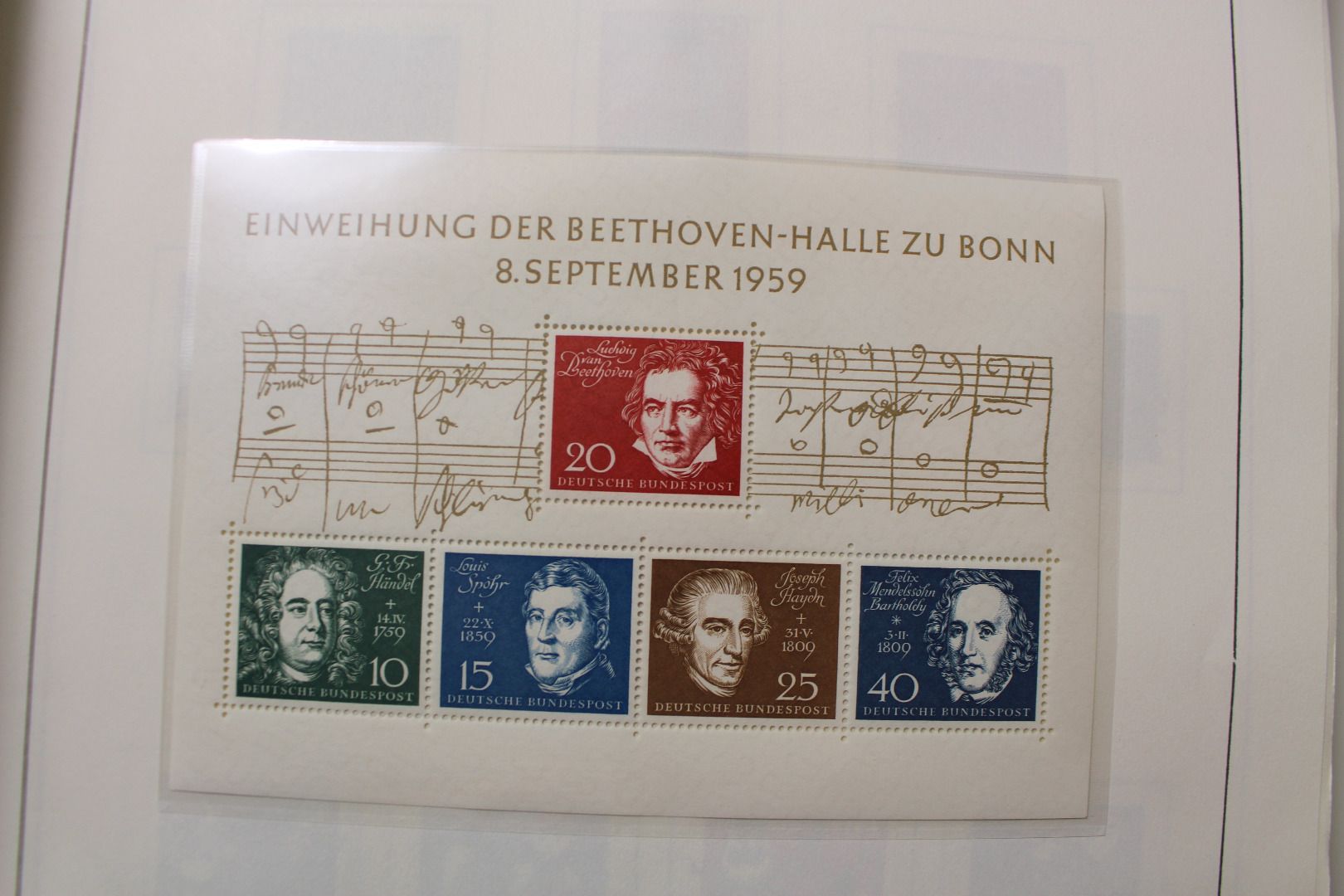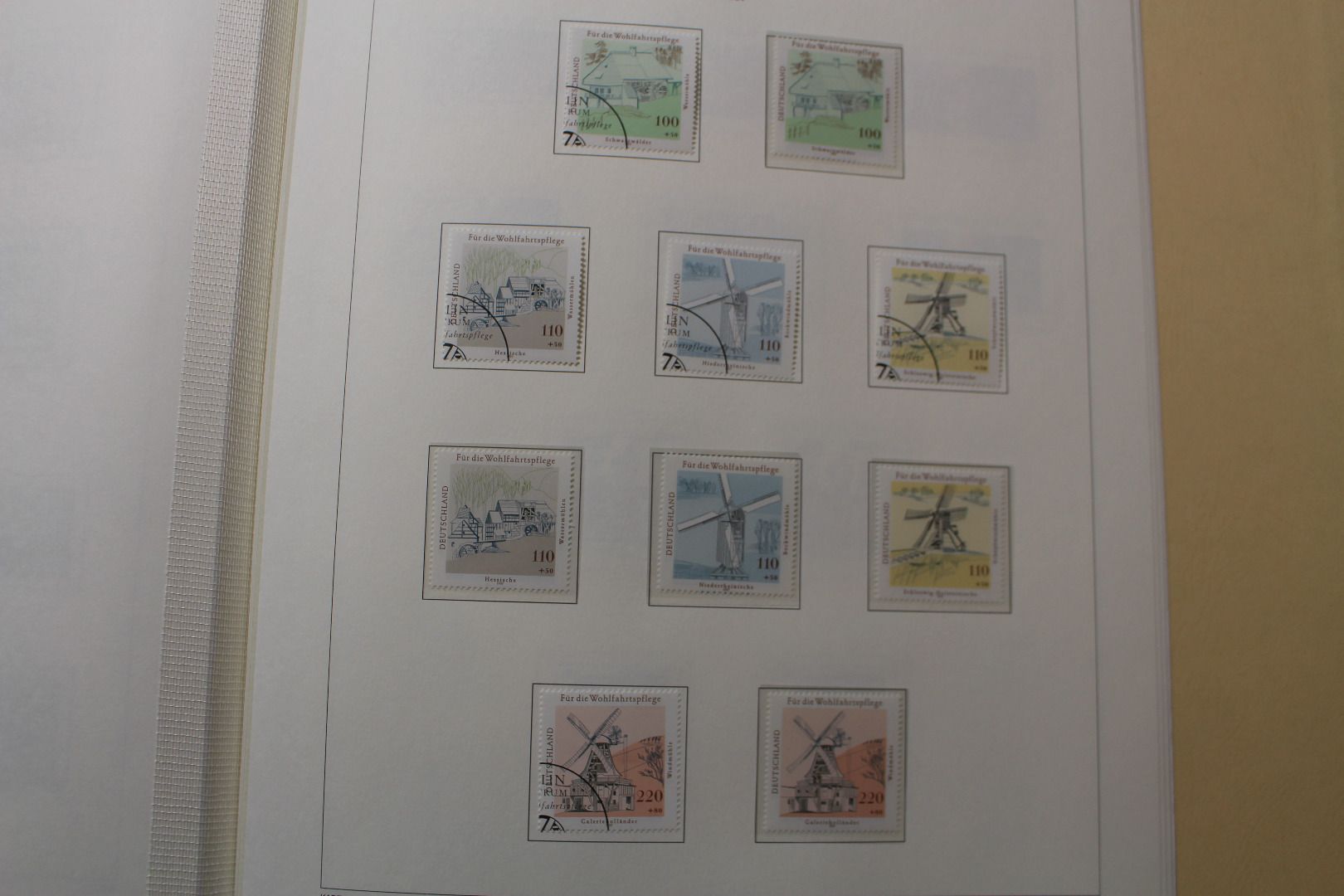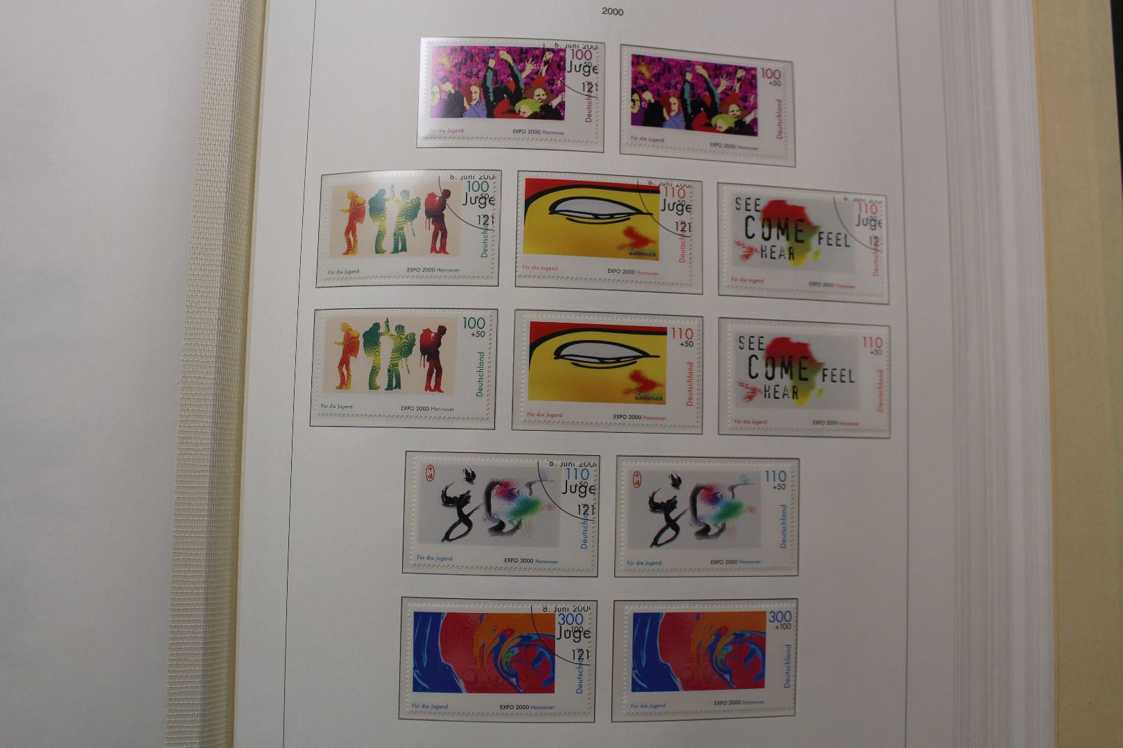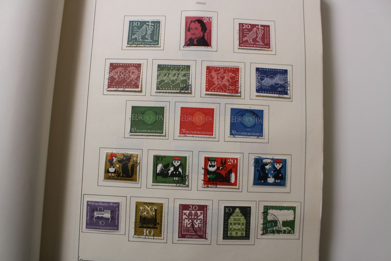 Enthalten ist eine BRD Sammlung ab 1949 bis ca. 2000 in 3 KABE Vordruckalben. Dazu gibt es eine Saarsammlung auf selbstgestalteten Blättern mit einigen besseren Werten, eine Deutschland Plus Sammlung 2003-2009 mit vielen gestempelten Ausgaben, etwas Altdeutschland und 2 Alben ETB´s.