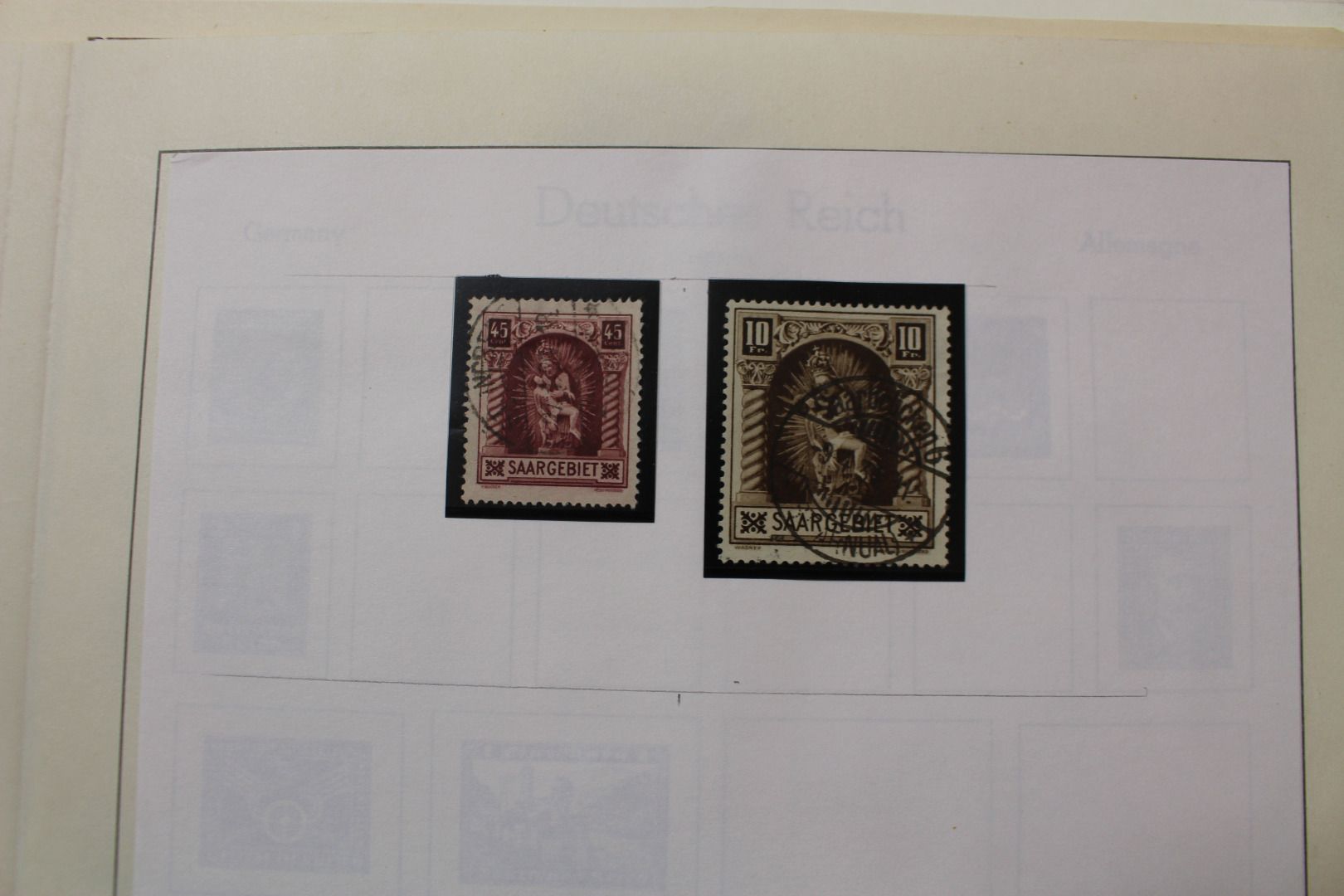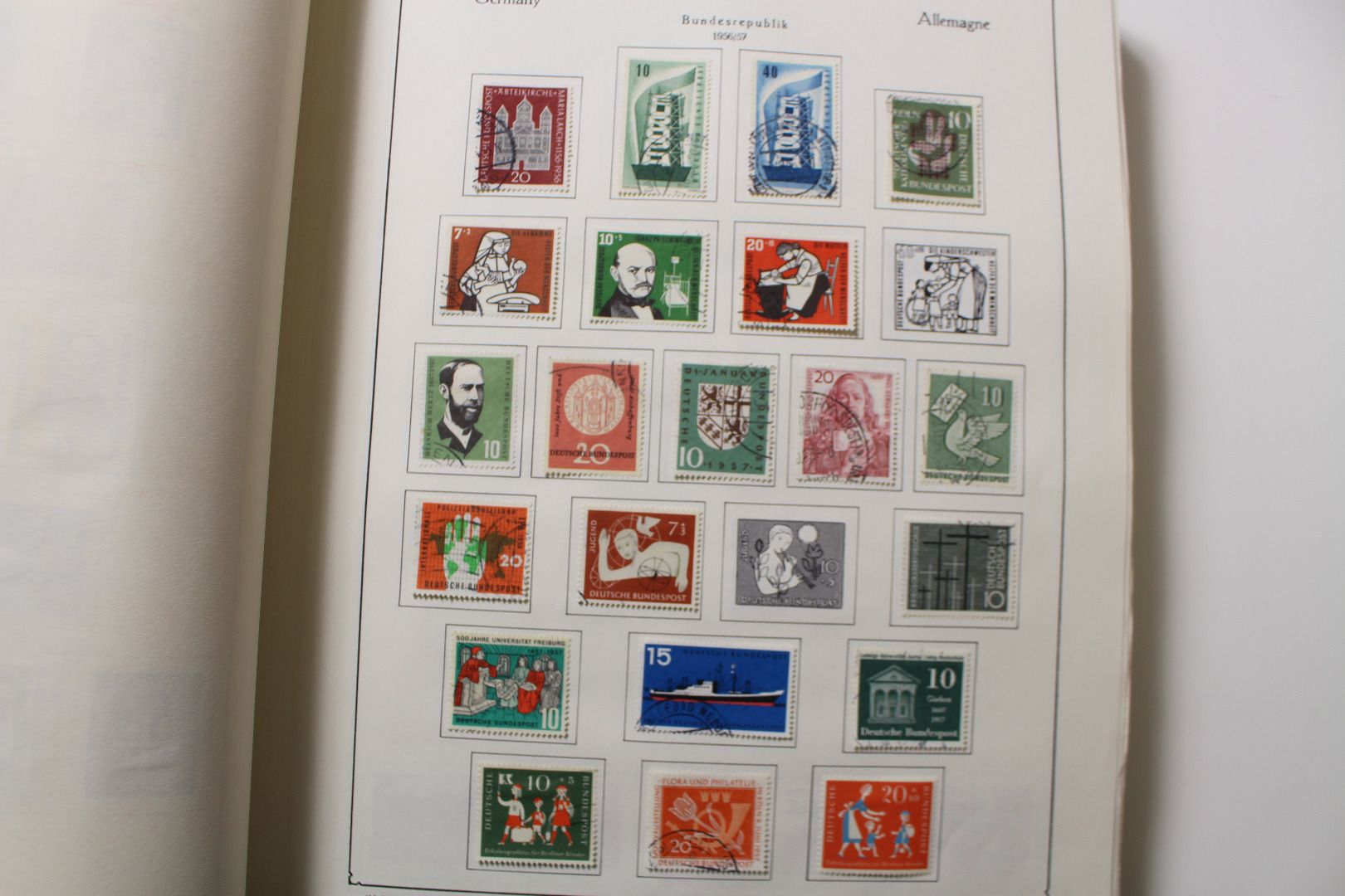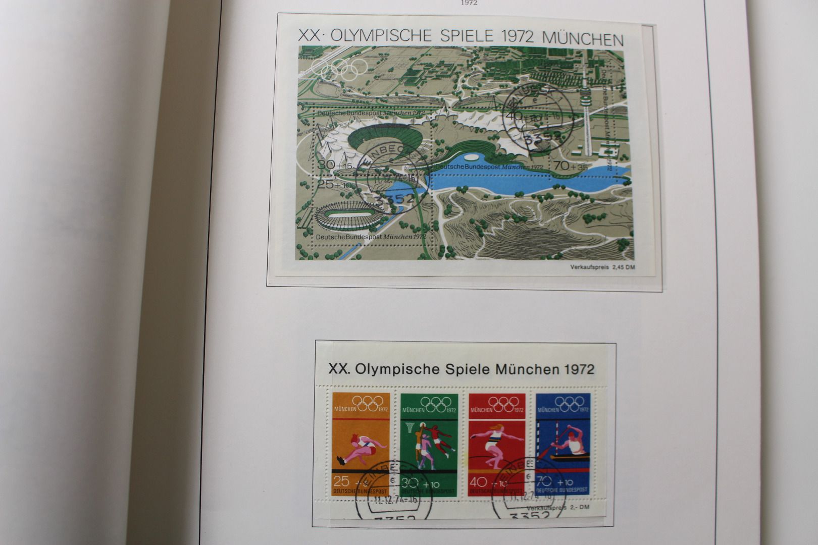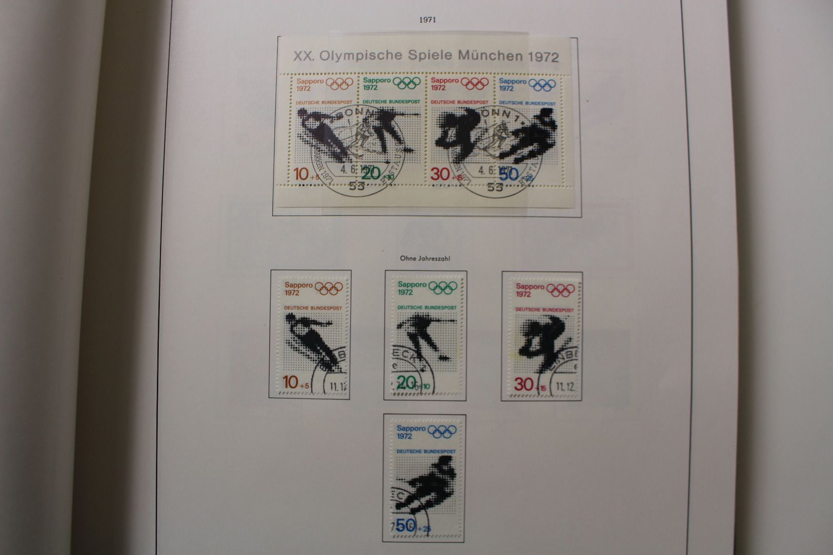 Enthalten ist eine BRD Sammlung ab 1949 bis ca. 2000 in 3 KABE Vordruckalben. Dazu gibt es eine Saarsammlung auf selbstgestalteten Blättern mit einigen besseren Werten, eine Deutschland Plus Sammlung 2003-2009 mit vielen gestempelten Ausgaben, etwas Altdeutschland und 2 Alben ETB´s.