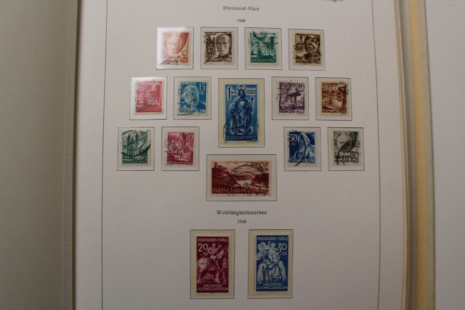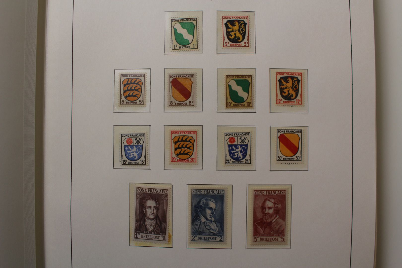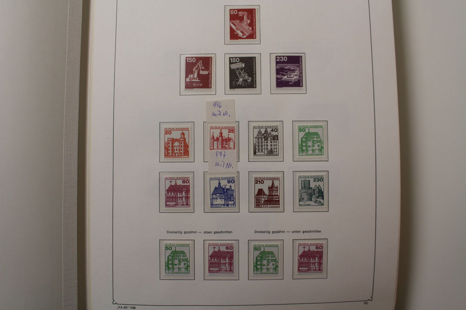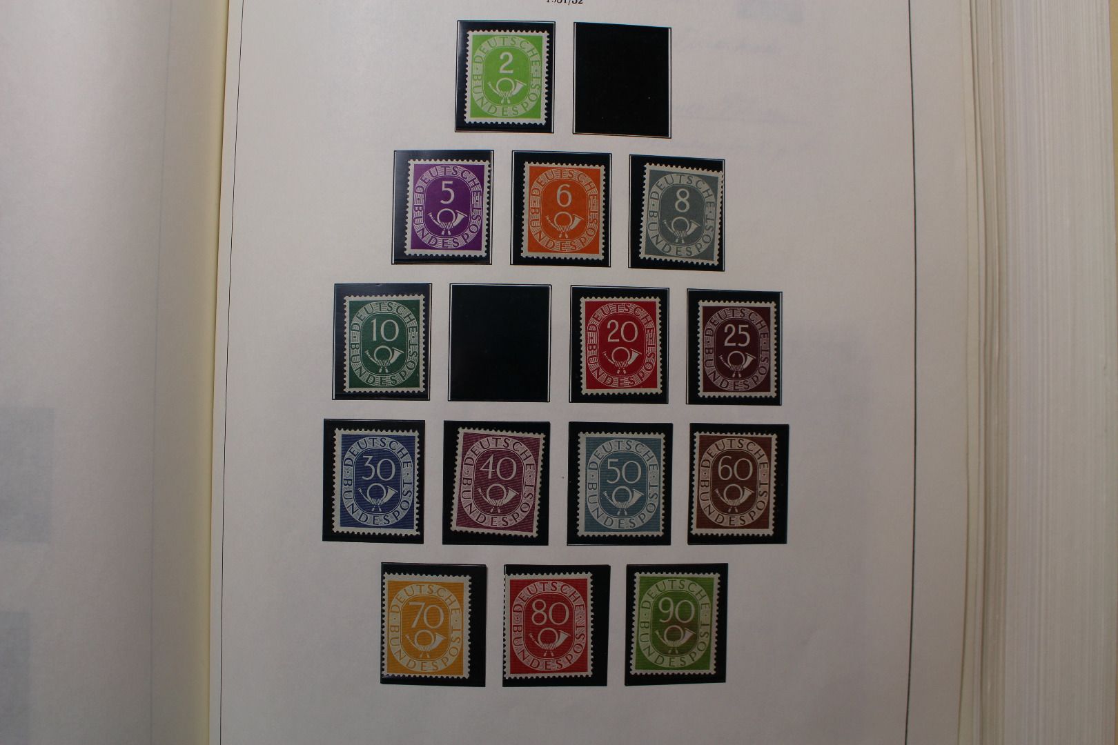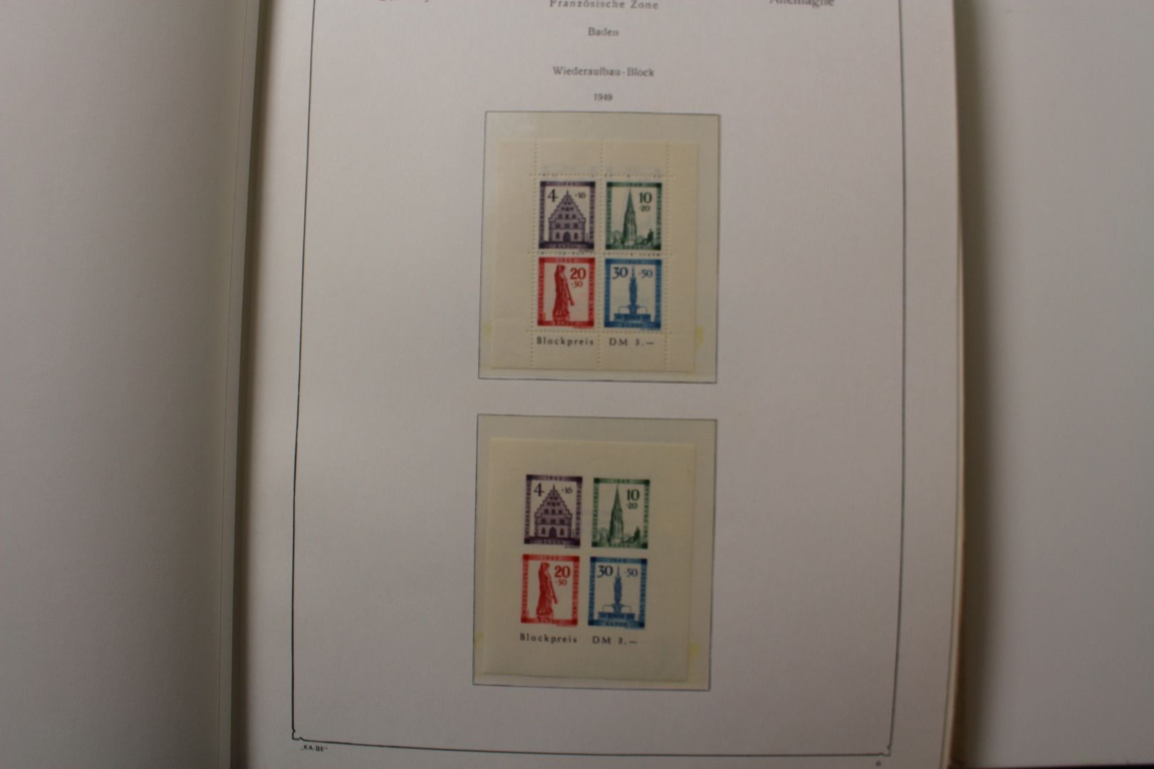 Gesammelt wurde Gem.-Ausgaben, Französische Zone (mit besseren Ausgaben), Bizone und die BRD ab 1949-2000 - ab Mitte der 1950er Jahre wohl alles postfrisch. In den 1950er Jahren auch ungebraucht, z.B. die Posthornmarken. Dazu gibts noch eine BRD gestempelte Teilsammlung ab 1981-2001. Untergebracht in 6 KABE Vordruckalben. Qualität ist unterschiedlich.