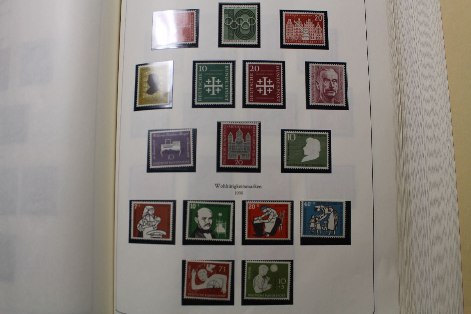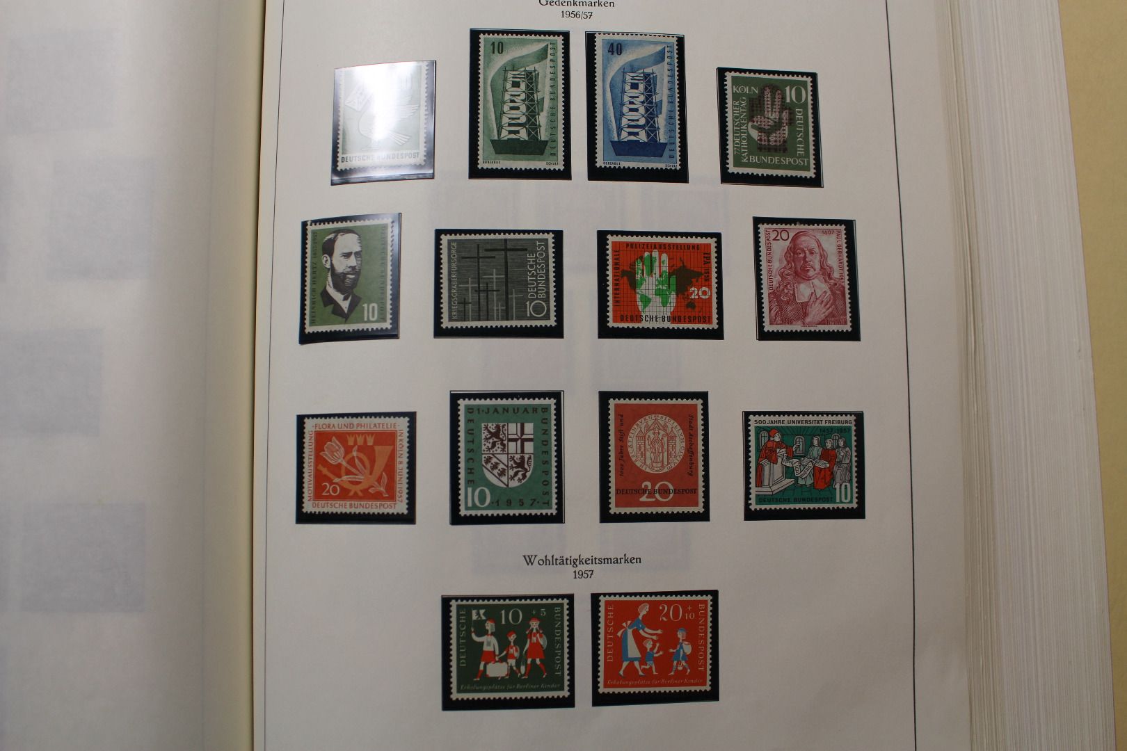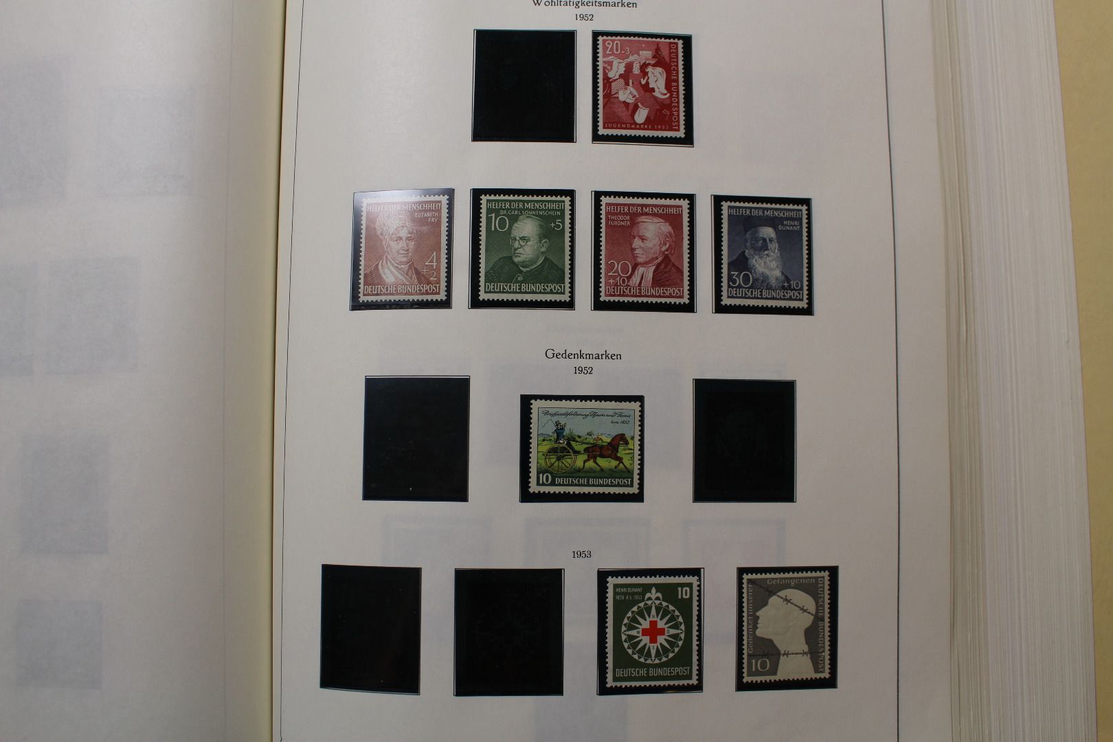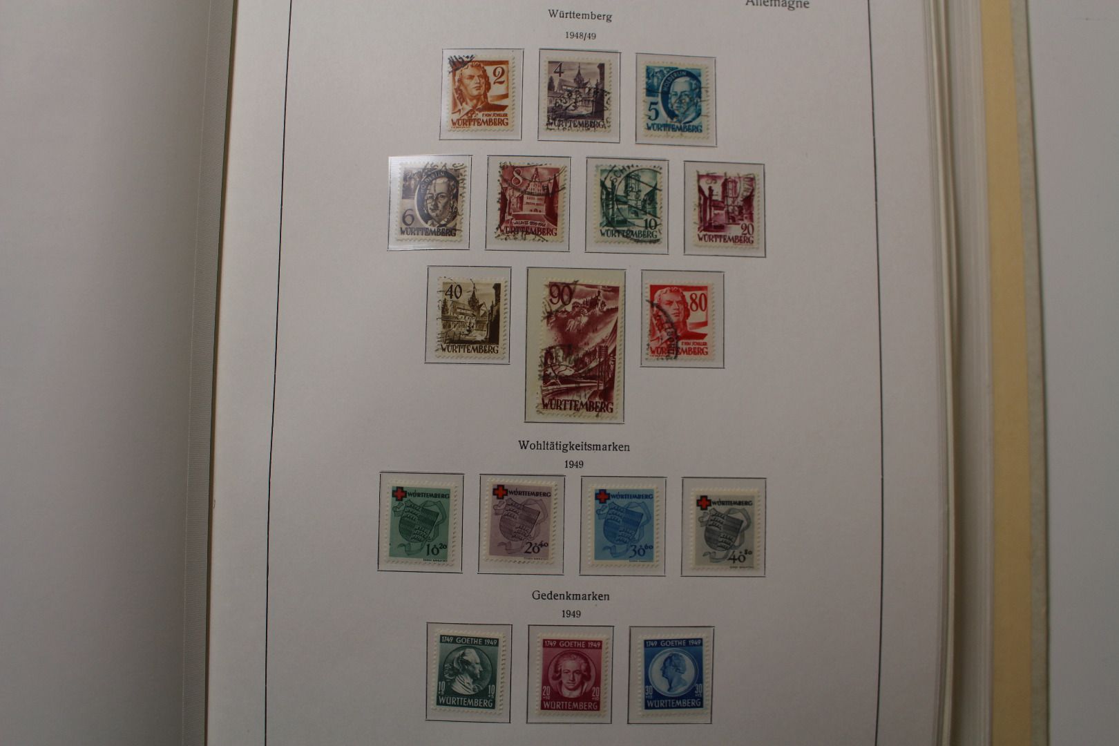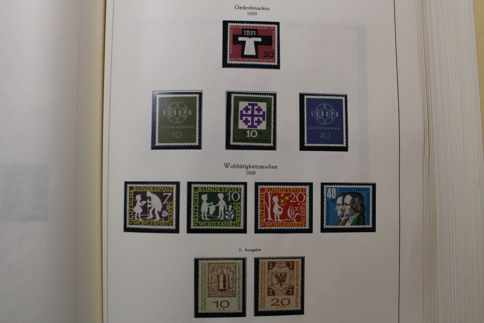 Gesammelt wurde Gem.-Ausgaben, Französische Zone (mit besseren Ausgaben), Bizone und die BRD ab 1949-2000 - ab Mitte der 1950er Jahre wohl alles postfrisch. In den 1950er Jahren auch ungebraucht, z.B. die Posthornmarken. Dazu gibts noch eine BRD gestempelte Teilsammlung ab 1981-2001. Untergebracht in 6 KABE Vordruckalben. Qualität ist unterschiedlich.