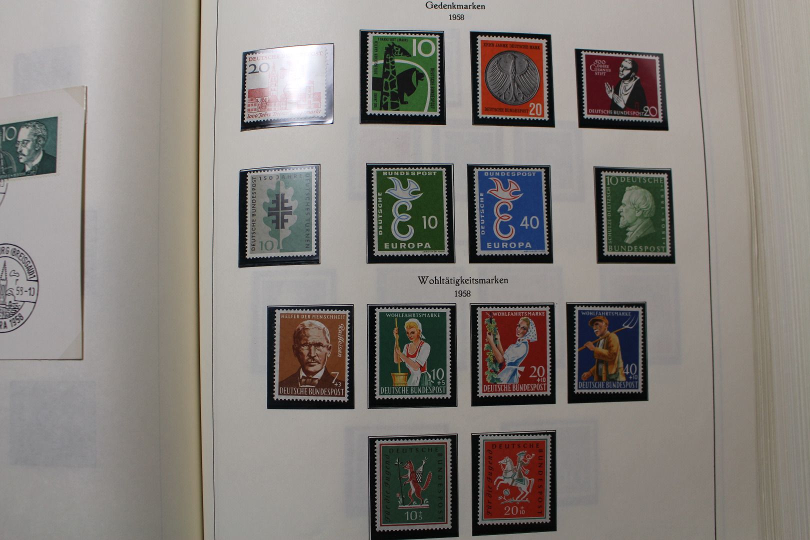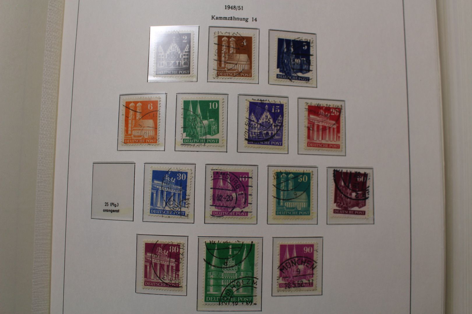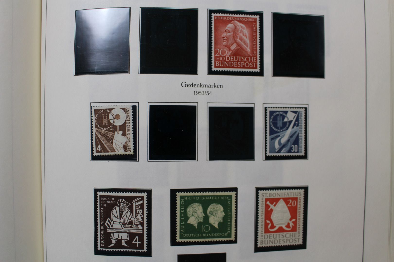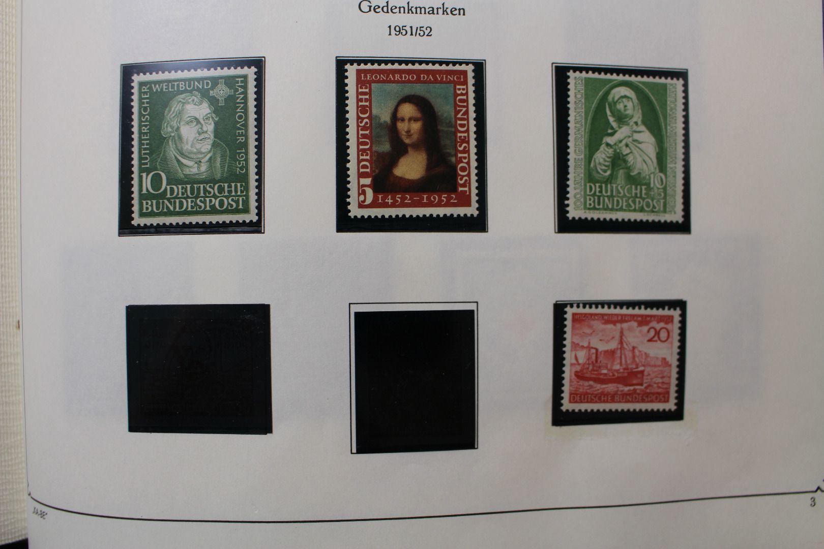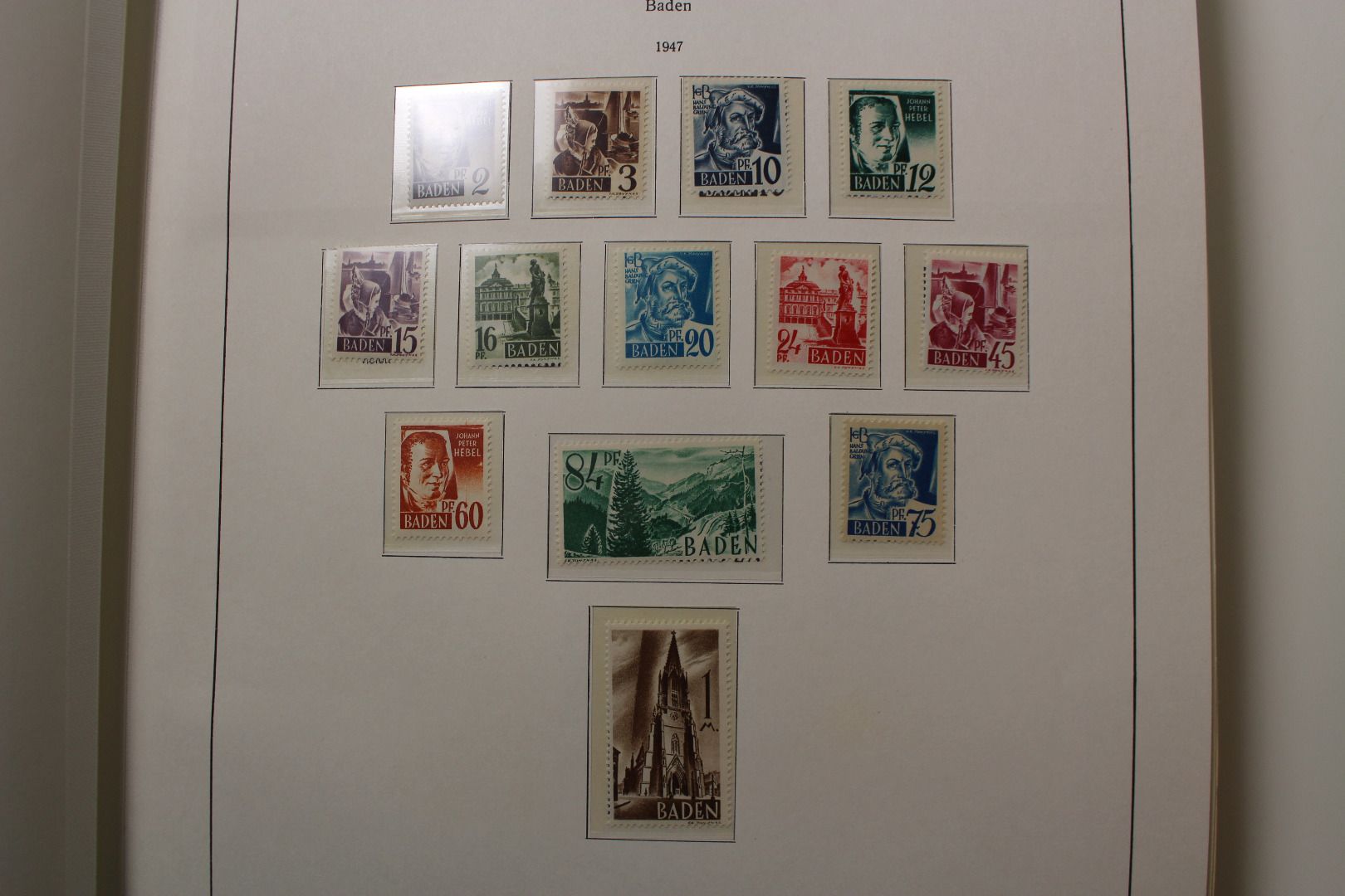 Gesammelt wurde Gem.-Ausgaben, Französische Zone (mit besseren Ausgaben), Bizone und die BRD ab 1949-2000 - ab Mitte der 1950er Jahre wohl alles postfrisch. In den 1950er Jahren auch ungebraucht, z.B. die Posthornmarken. Dazu gibts noch eine BRD gestempelte Teilsammlung ab 1981-2001. Untergebracht in 6 KABE Vordruckalben. Qualität ist unterschiedlich.