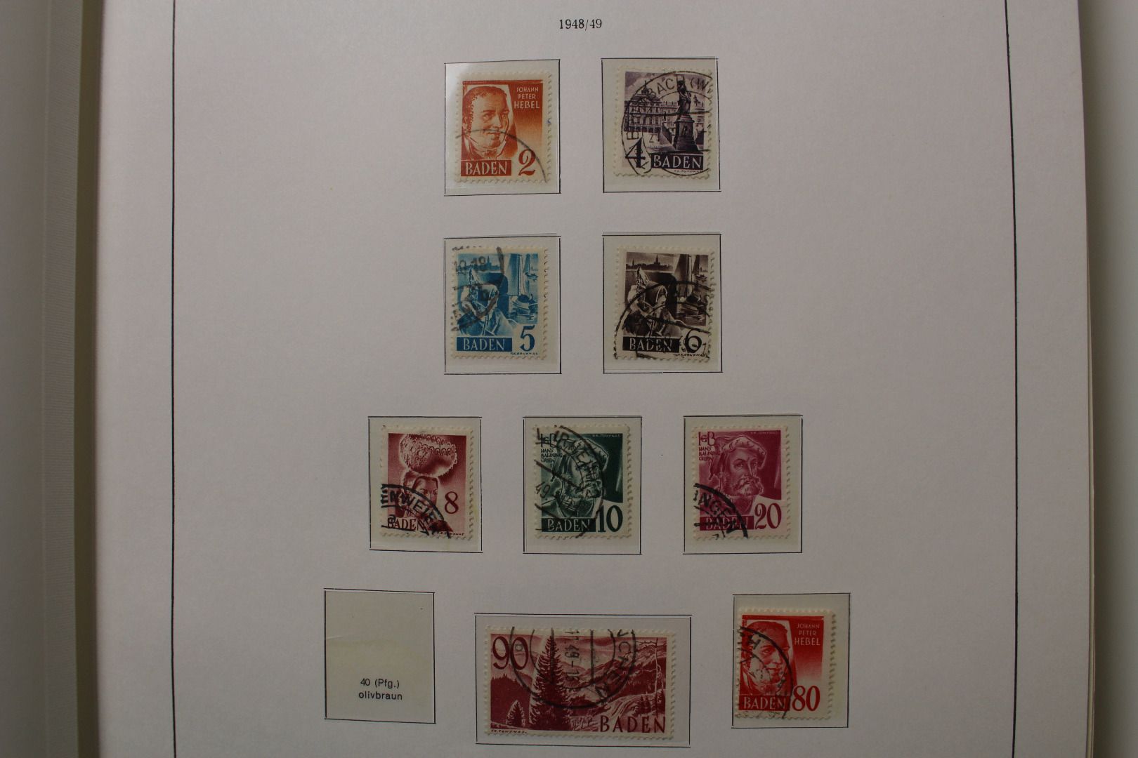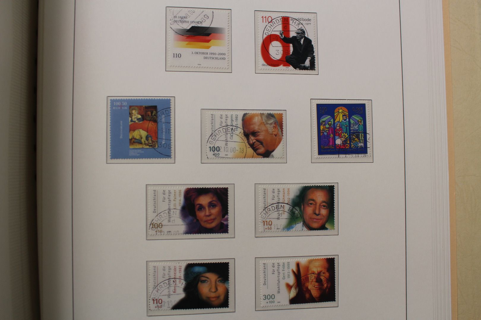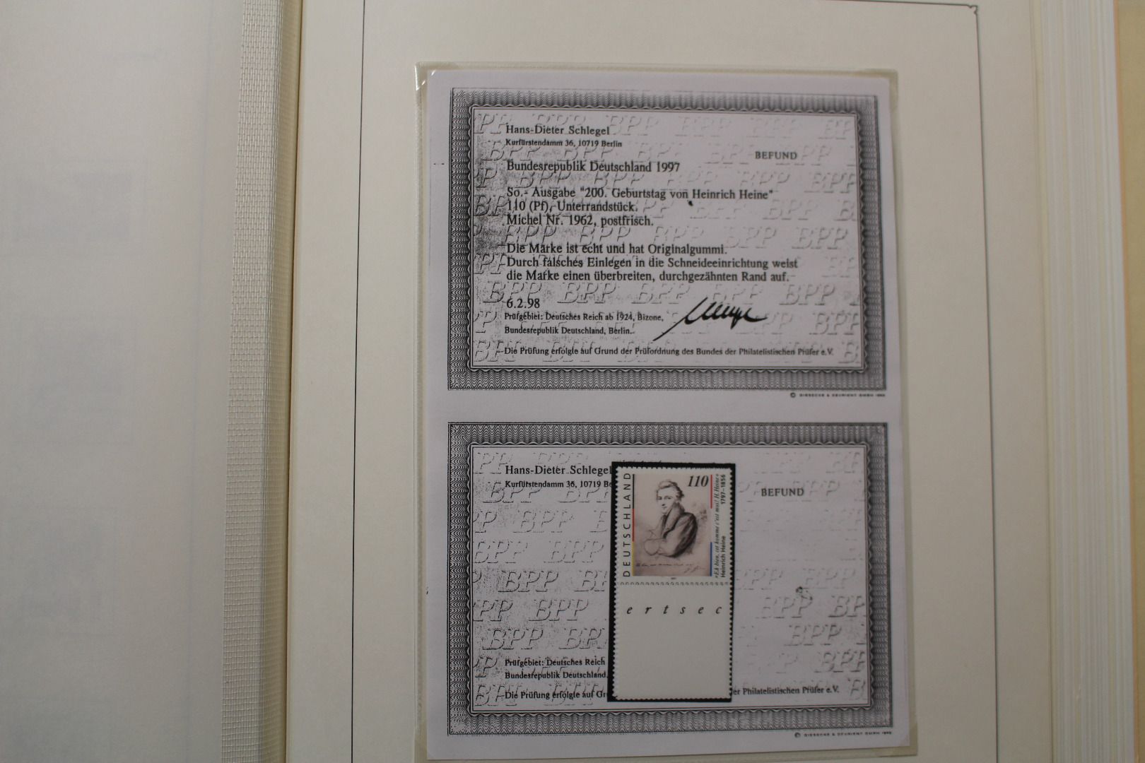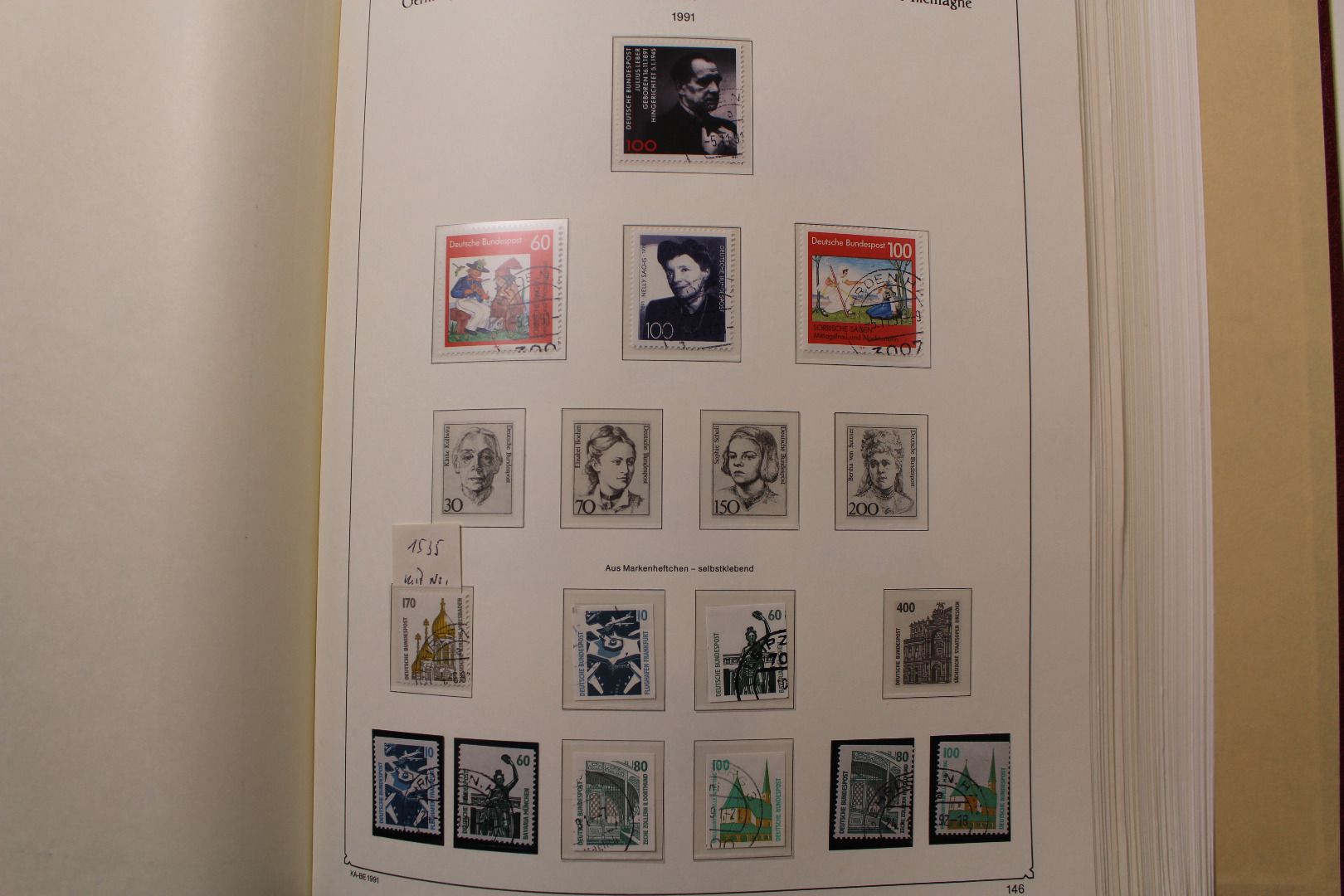 Gesammelt wurde Gem.-Ausgaben, Französische Zone (mit besseren Ausgaben), Bizone und die BRD ab 1949-2000 - ab Mitte der 1950er Jahre wohl alles postfrisch. In den 1950er Jahren auch ungebraucht, z.B. die Posthornmarken. Dazu gibts noch eine BRD gestempelte Teilsammlung ab 1981-2001. Untergebracht in 6 KABE Vordruckalben. Qualität ist unterschiedlich.