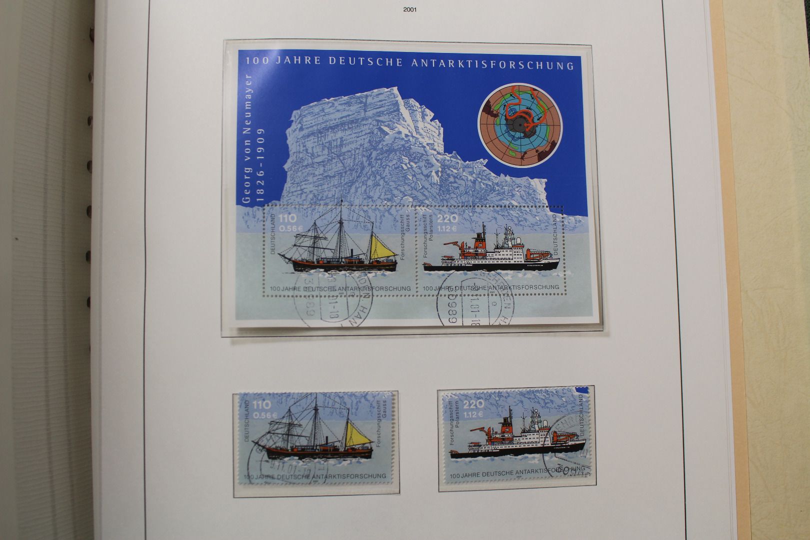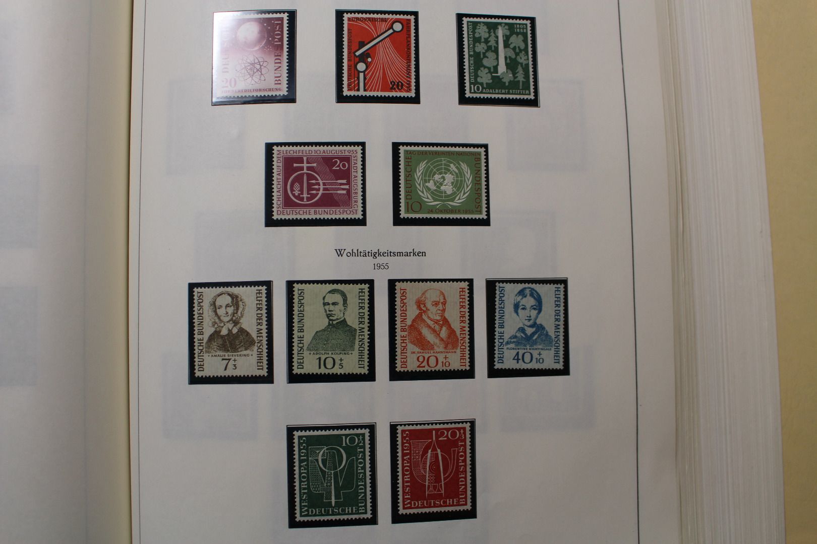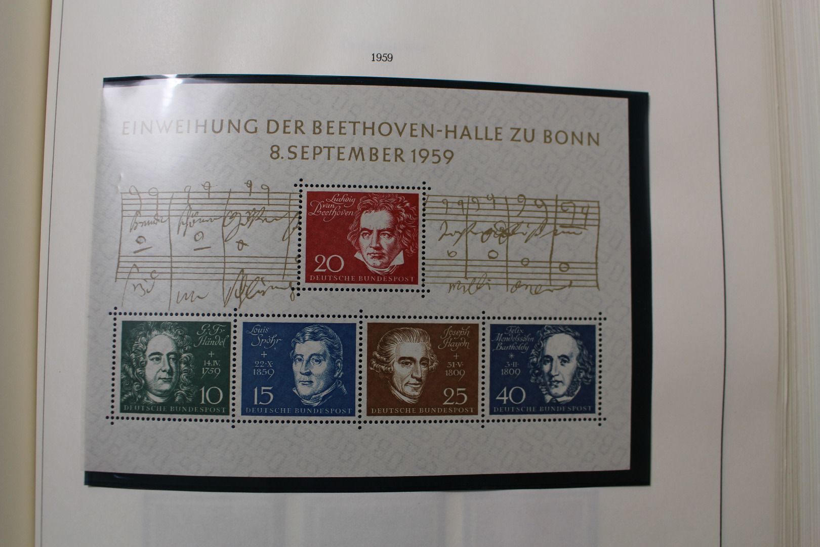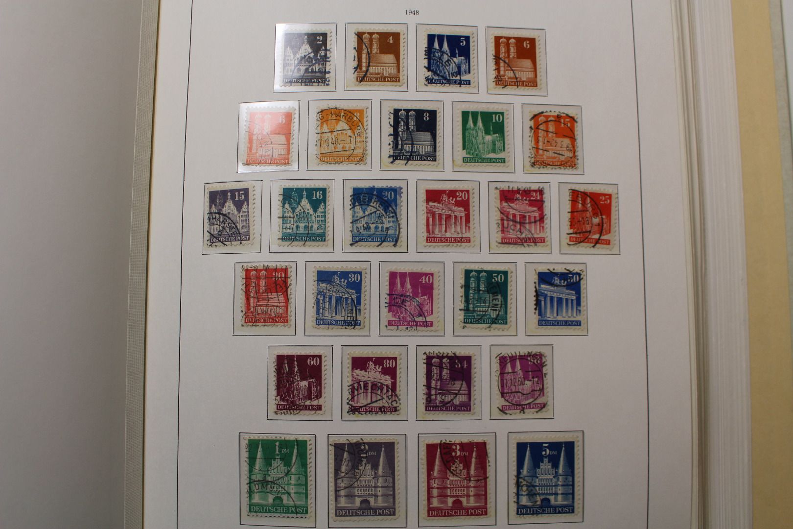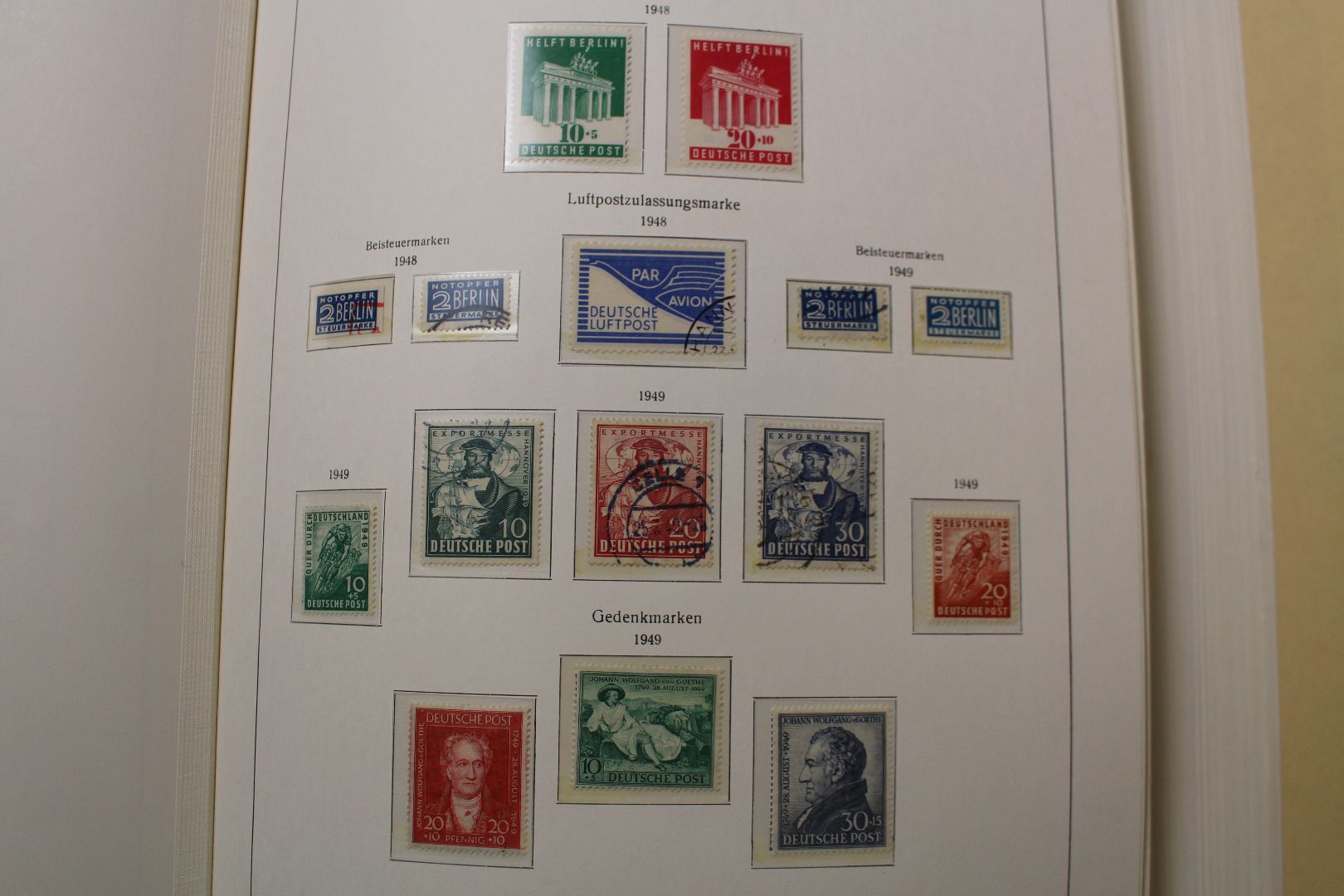 Gesammelt wurde Gem.-Ausgaben, Französische Zone (mit besseren Ausgaben), Bizone und die BRD ab 1949-2000 - ab Mitte der 1950er Jahre wohl alles postfrisch. In den 1950er Jahren auch ungebraucht, z.B. die Posthornmarken. Dazu gibts noch eine BRD gestempelte Teilsammlung ab 1981-2001. Untergebracht in 6 KABE Vordruckalben. Qualität ist unterschiedlich.