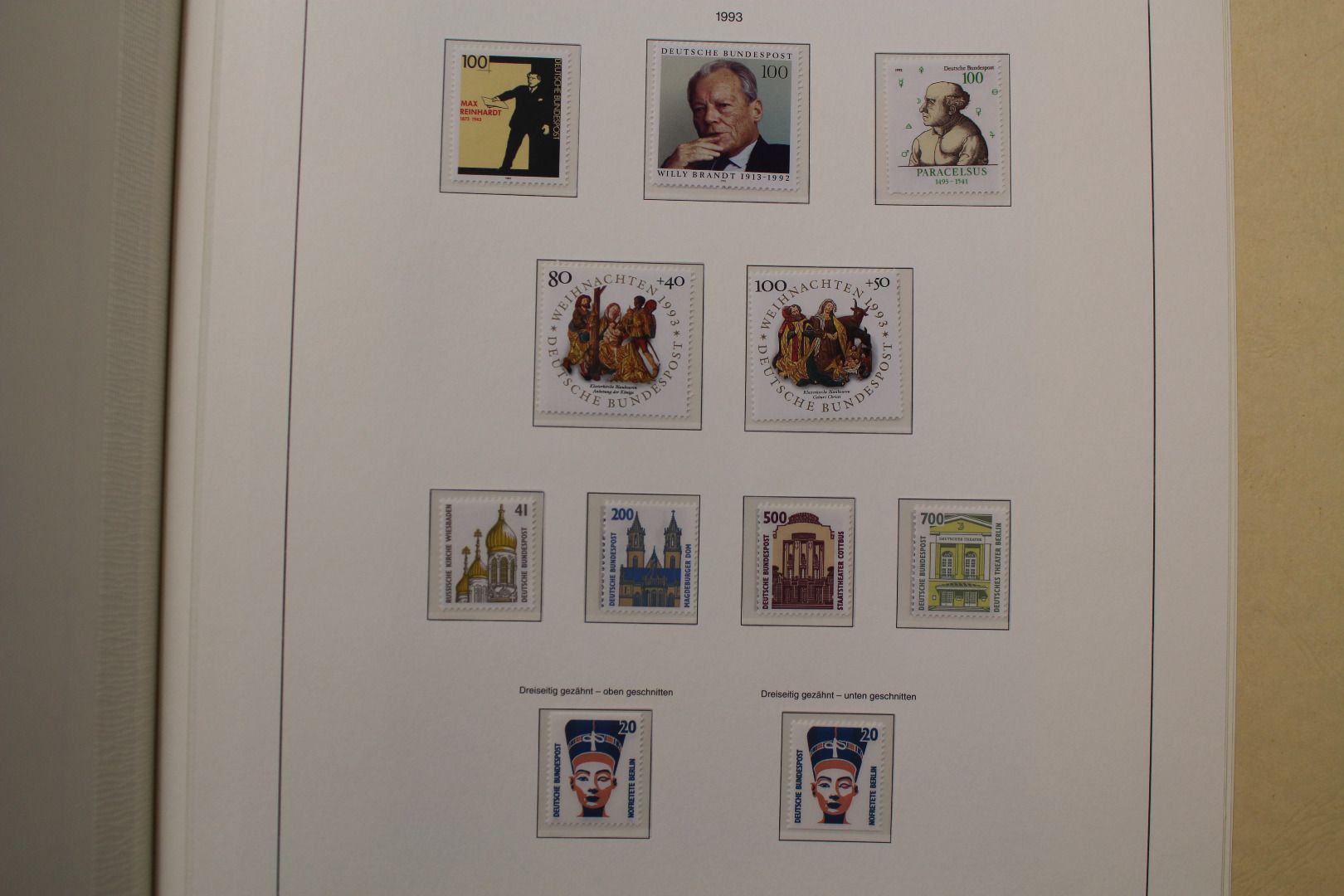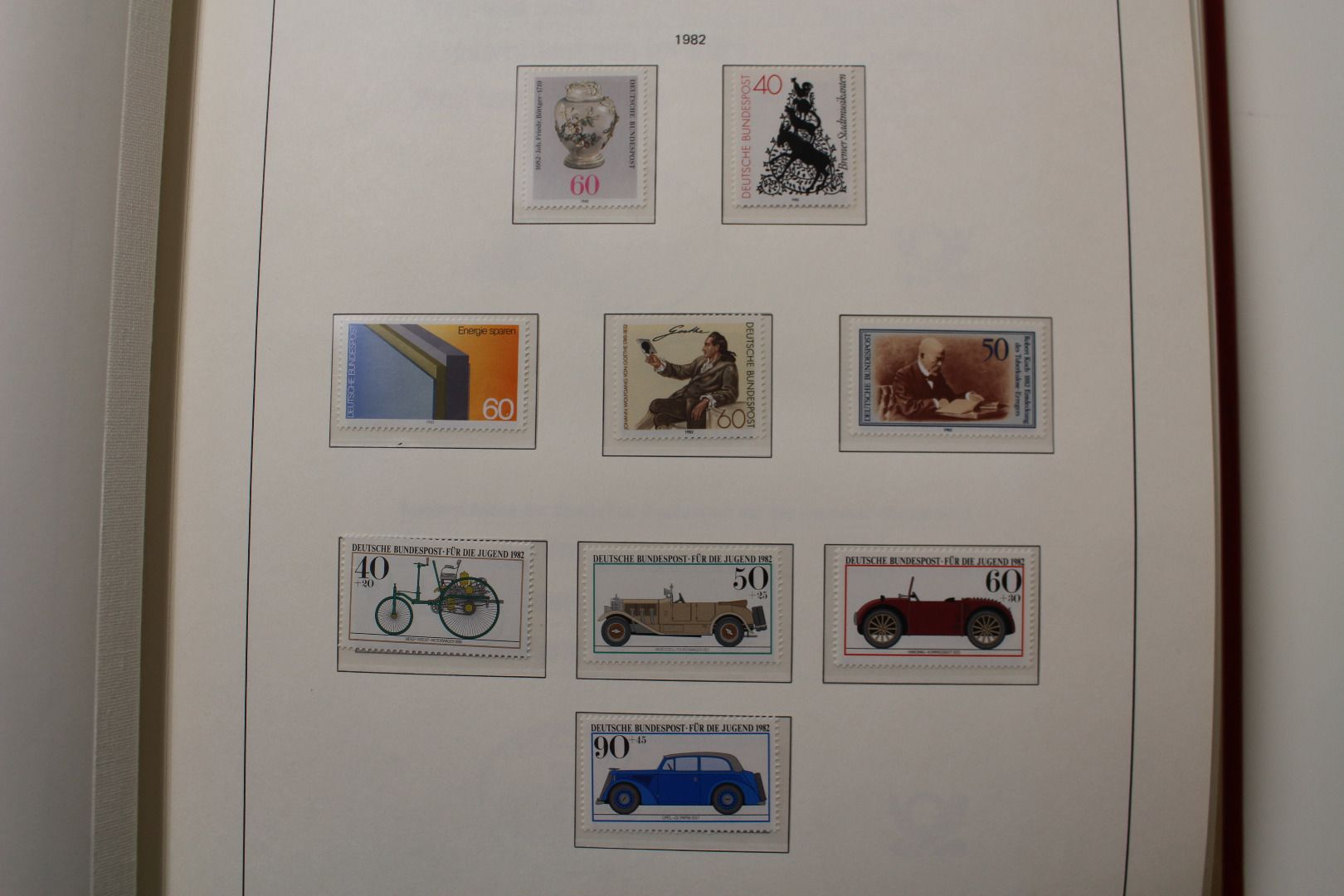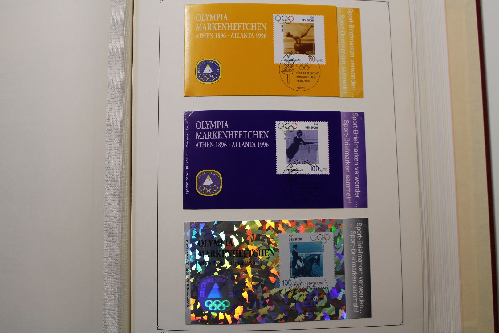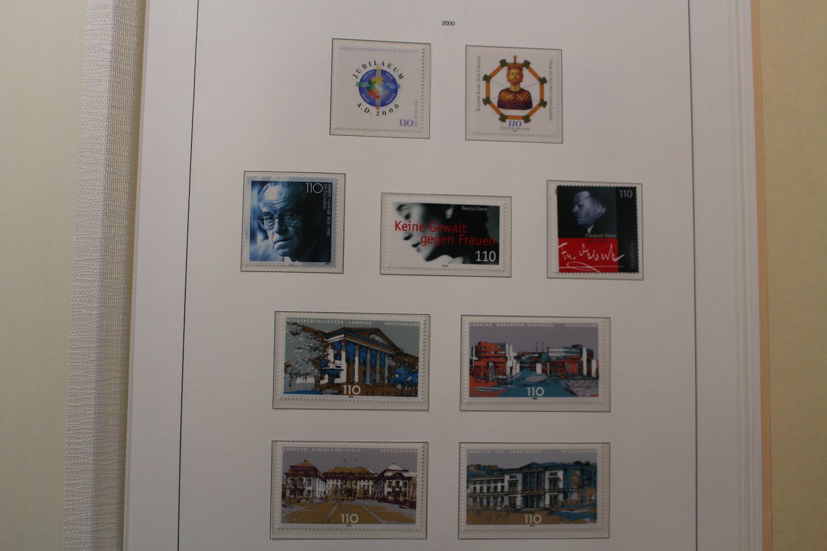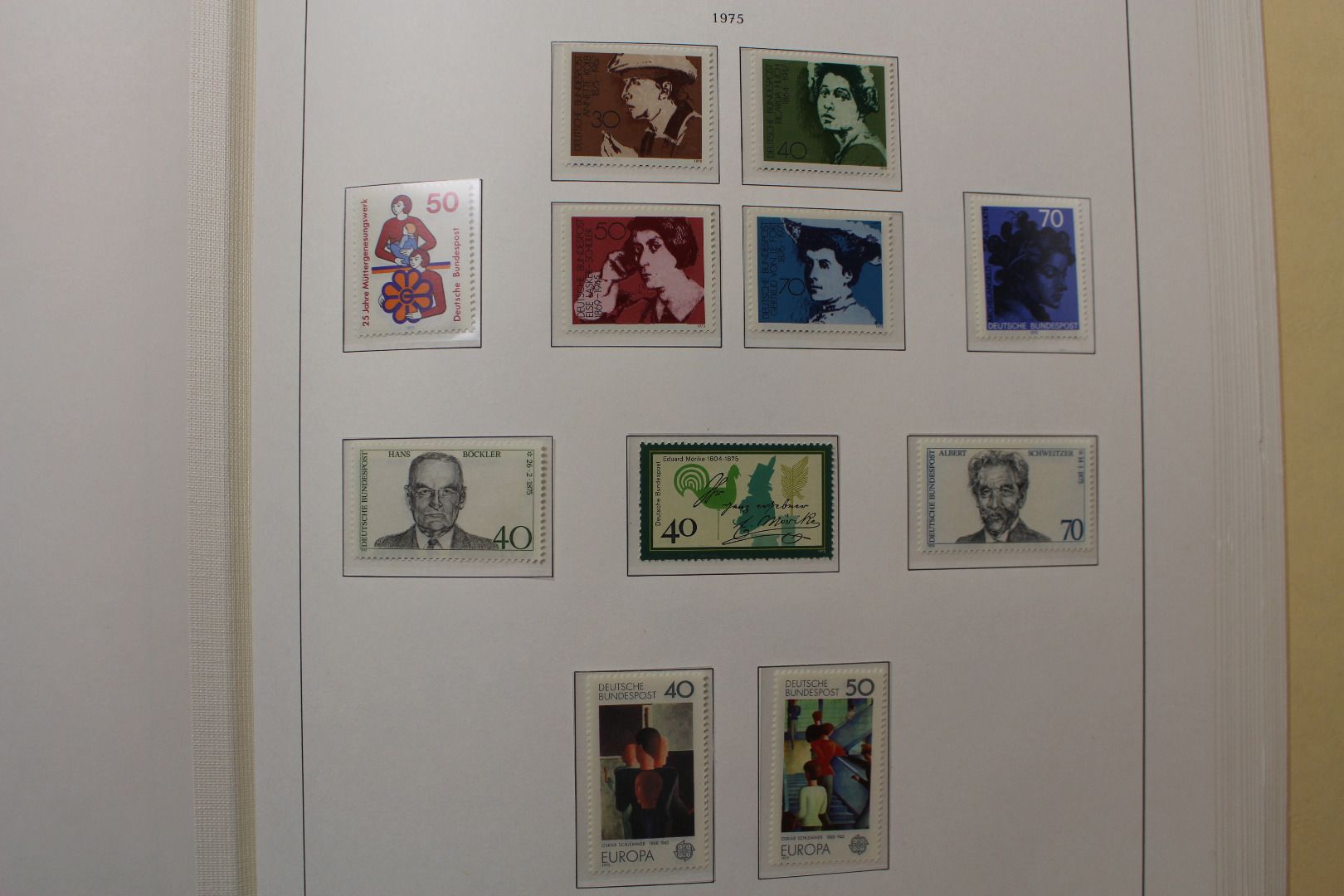 Gesammelt wurde Gem.-Ausgaben, Französische Zone (mit besseren Ausgaben), Bizone und die BRD ab 1949-2000 - ab Mitte der 1950er Jahre wohl alles postfrisch. In den 1950er Jahren auch ungebraucht, z.B. die Posthornmarken. Dazu gibts noch eine BRD gestempelte Teilsammlung ab 1981-2001. Untergebracht in 6 KABE Vordruckalben. Qualität ist unterschiedlich.