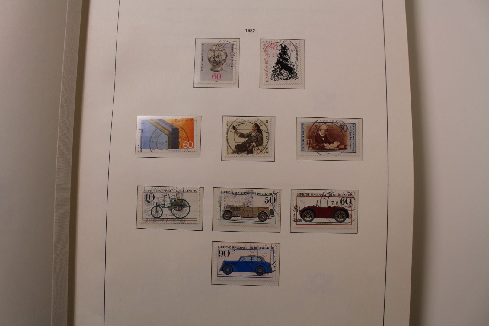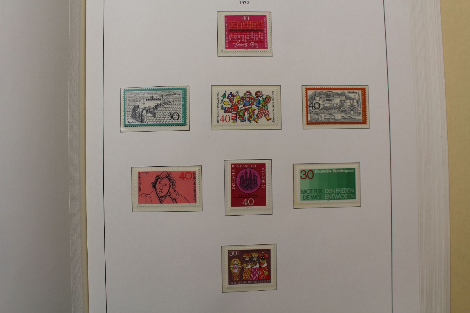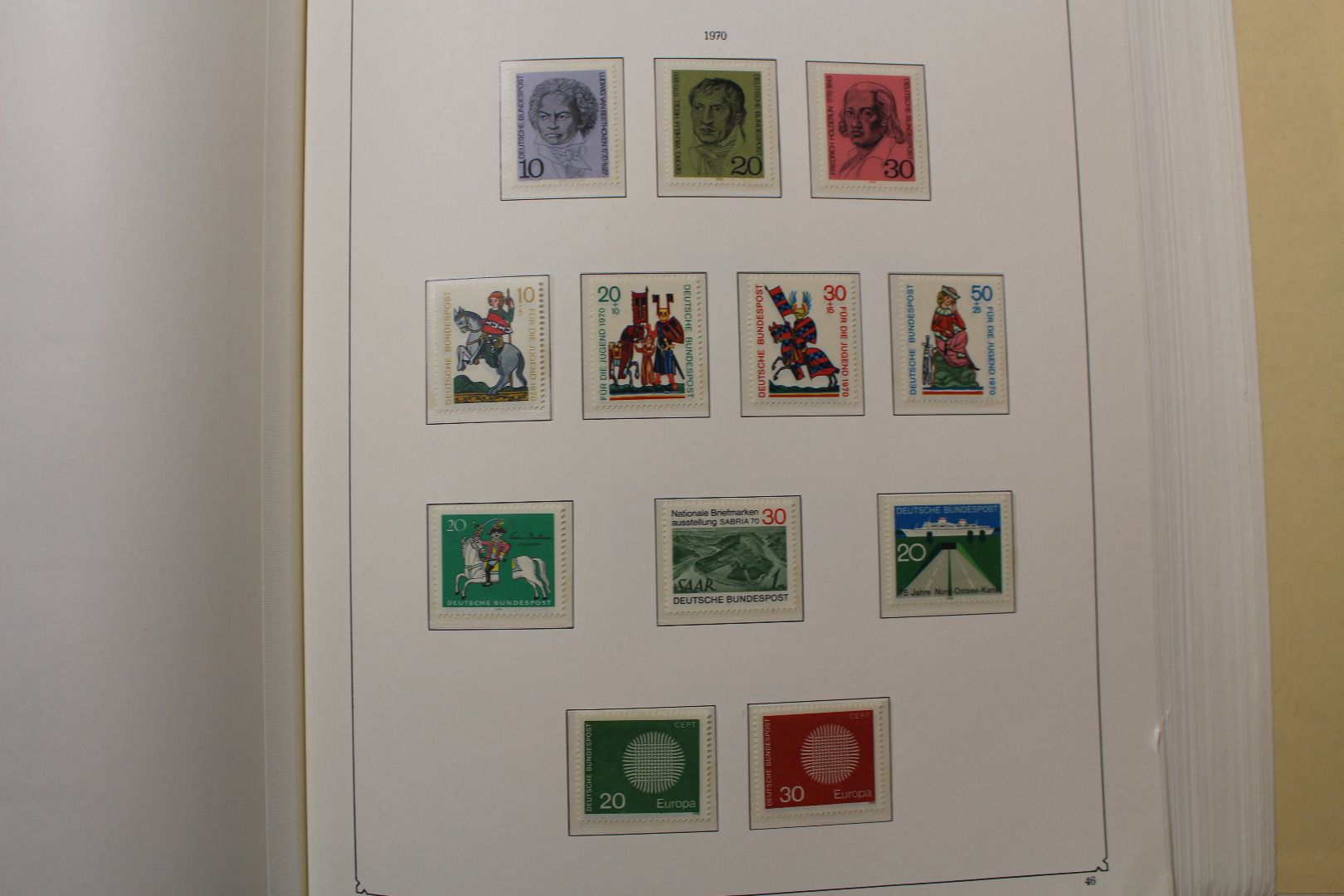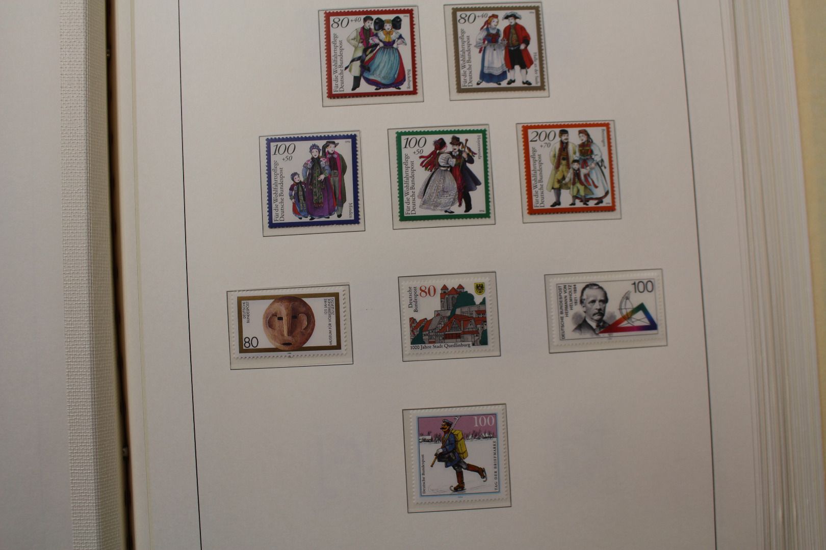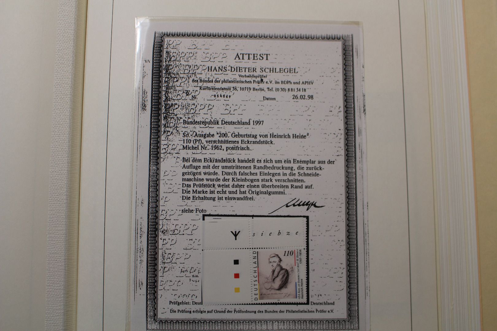 Gesammelt wurde Gem.-Ausgaben, Französische Zone (mit besseren Ausgaben), Bizone und die BRD ab 1949-2000 - ab Mitte der 1950er Jahre wohl alles postfrisch. In den 1950er Jahren auch ungebraucht, z.B. die Posthornmarken. Dazu gibts noch eine BRD gestempelte Teilsammlung ab 1981-2001. Untergebracht in 6 KABE Vordruckalben. Qualität ist unterschiedlich.