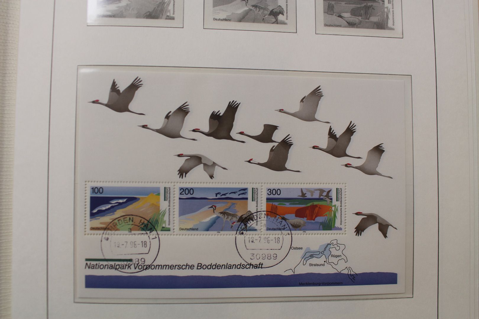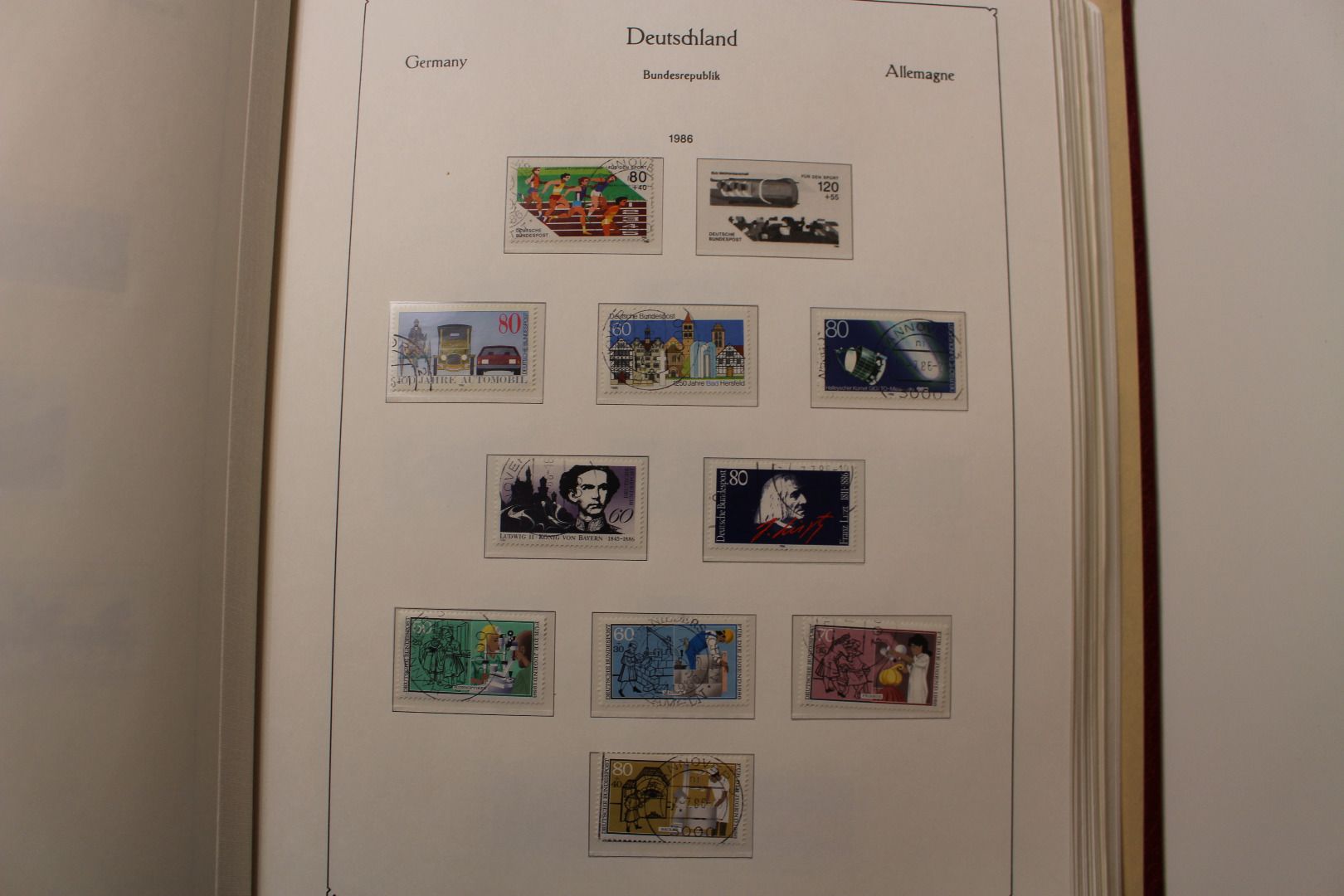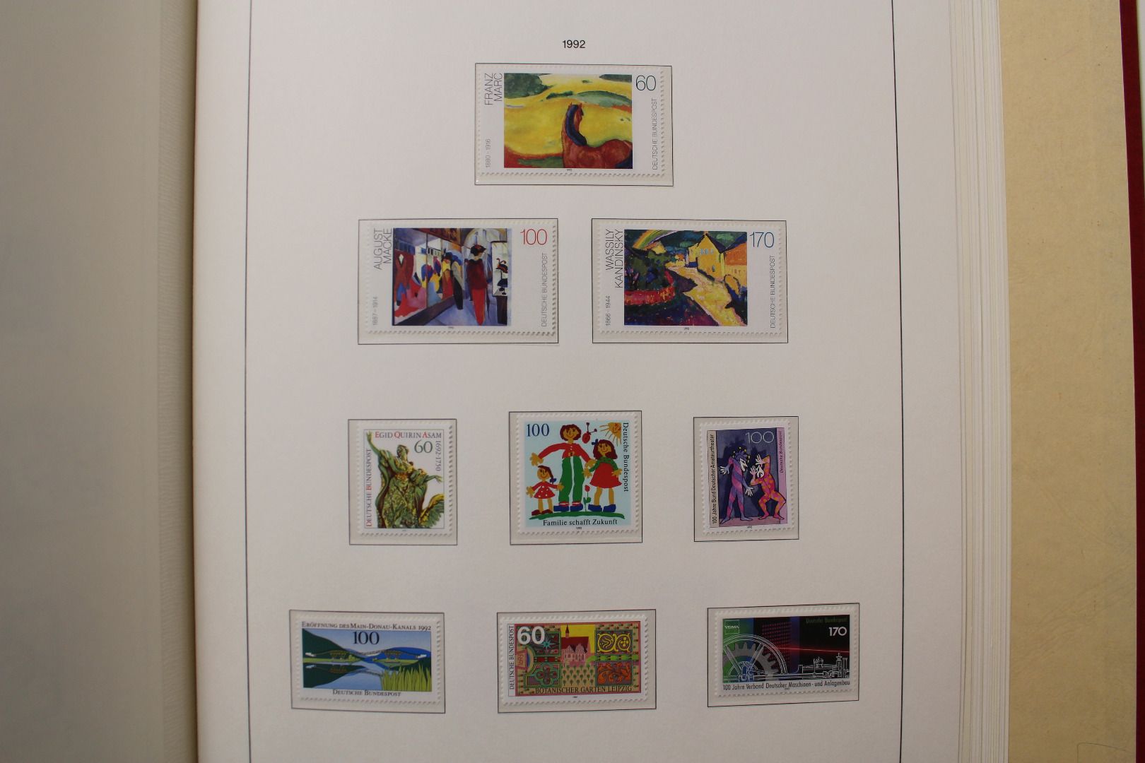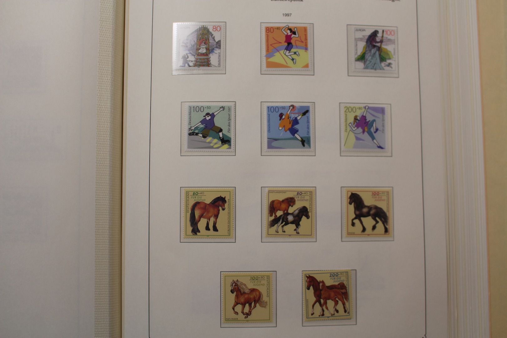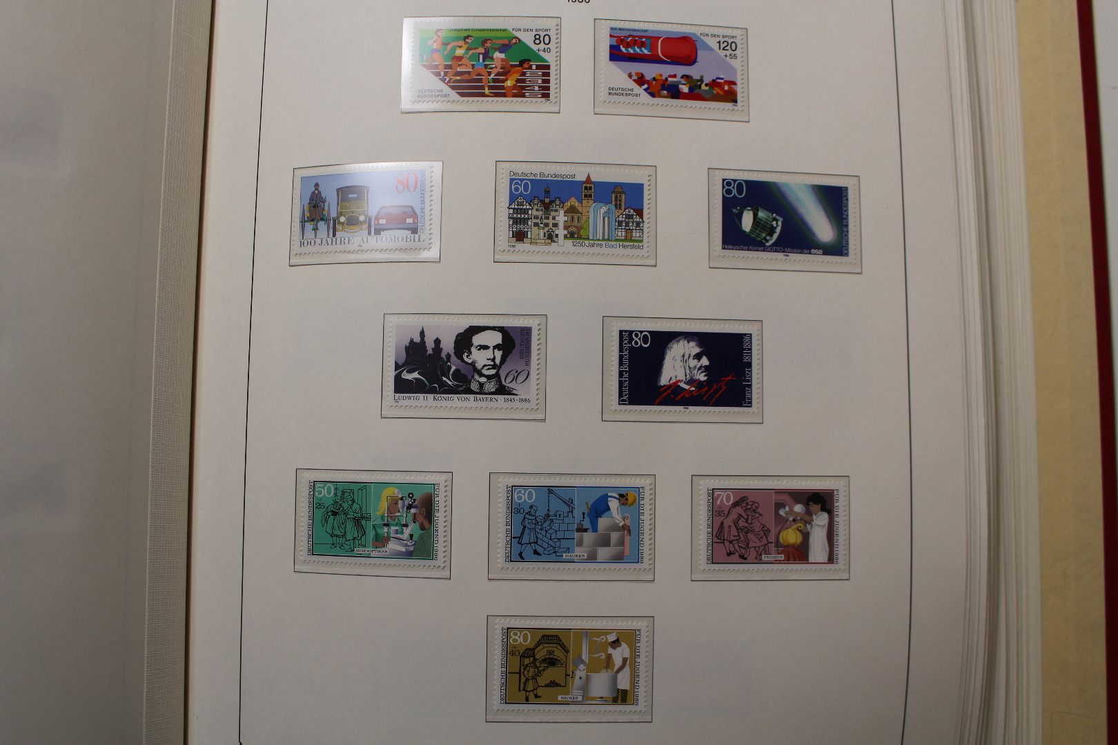 Gesammelt wurde Gem.-Ausgaben, Französische Zone (mit besseren Ausgaben), Bizone und die BRD ab 1949-2000 - ab Mitte der 1950er Jahre wohl alles postfrisch. In den 1950er Jahren auch ungebraucht, z.B. die Posthornmarken. Dazu gibts noch eine BRD gestempelte Teilsammlung ab 1981-2001. Untergebracht in 6 KABE Vordruckalben. Qualität ist unterschiedlich.