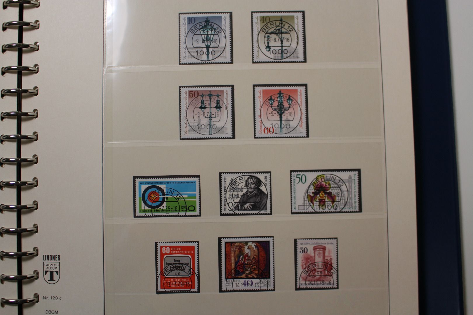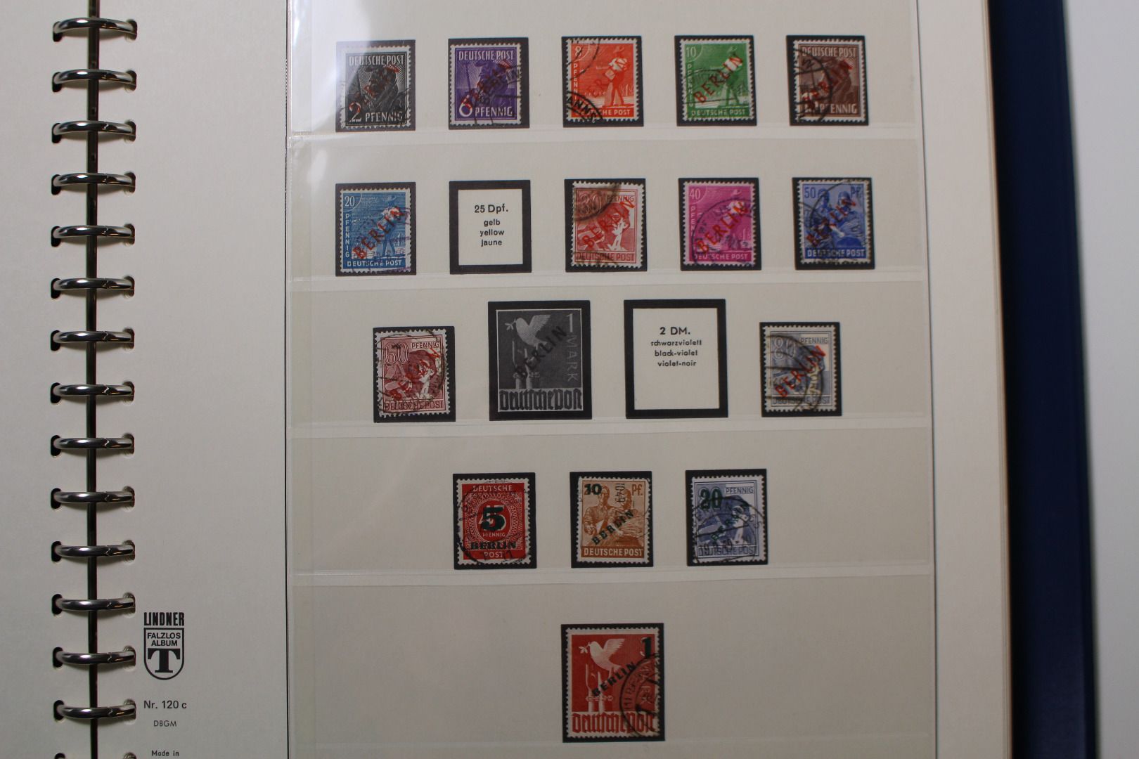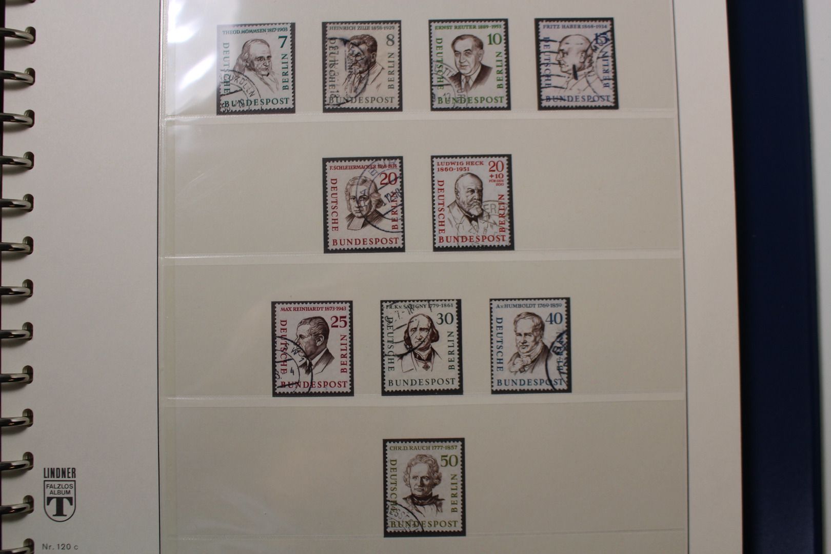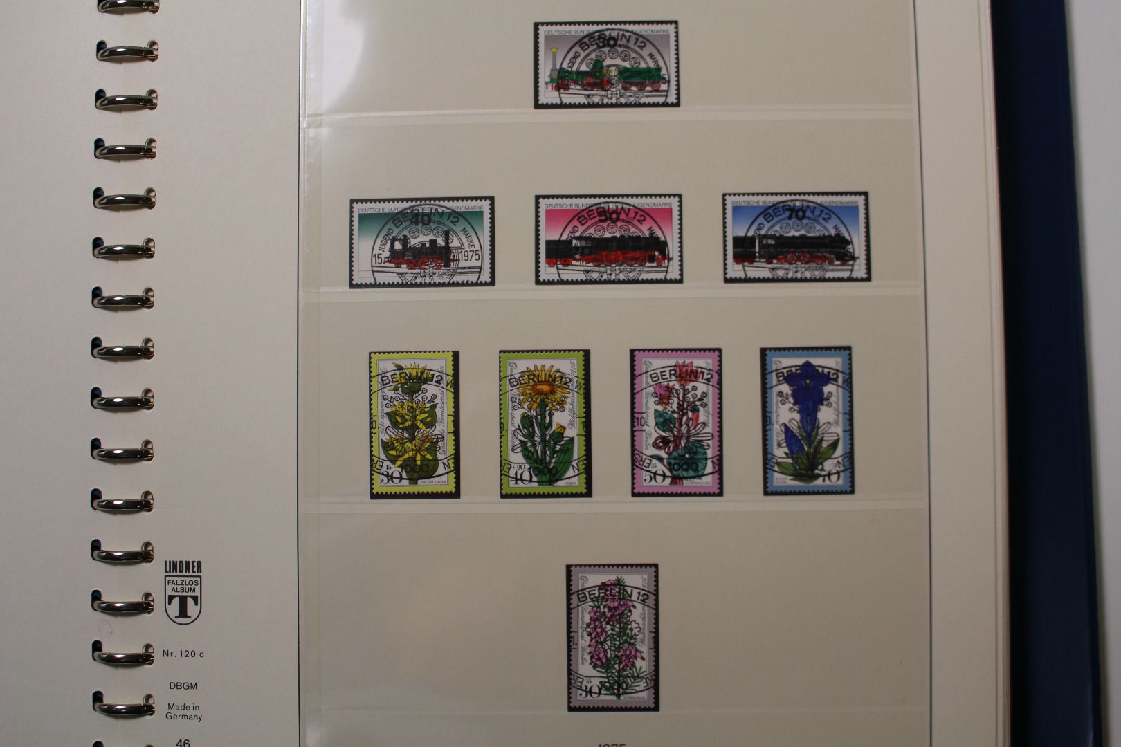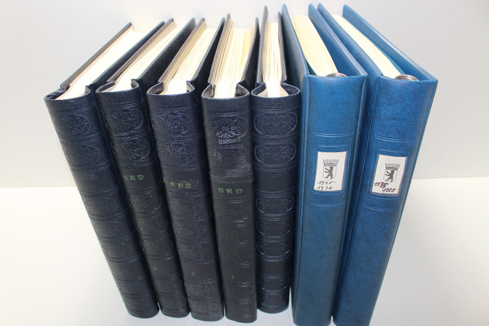 Die Berlin Sammlung in 2 Lindner T Vordruckalben mit einigen besseren Anfangsausgaben, sonst ab Ende der 1950er bis Mitte der 1980er Jahre ganz gut besetzt. Die BRD in 5 Borek Vordruckalben bis zum Jahr 2000. Ab Mitte der 1950er Jahre meist postfrisch umfangreich. Einige Jahre der Borek Vordrucke mit schwarzen Klemmtaschen. Die Qualität ist unterschiedlich.